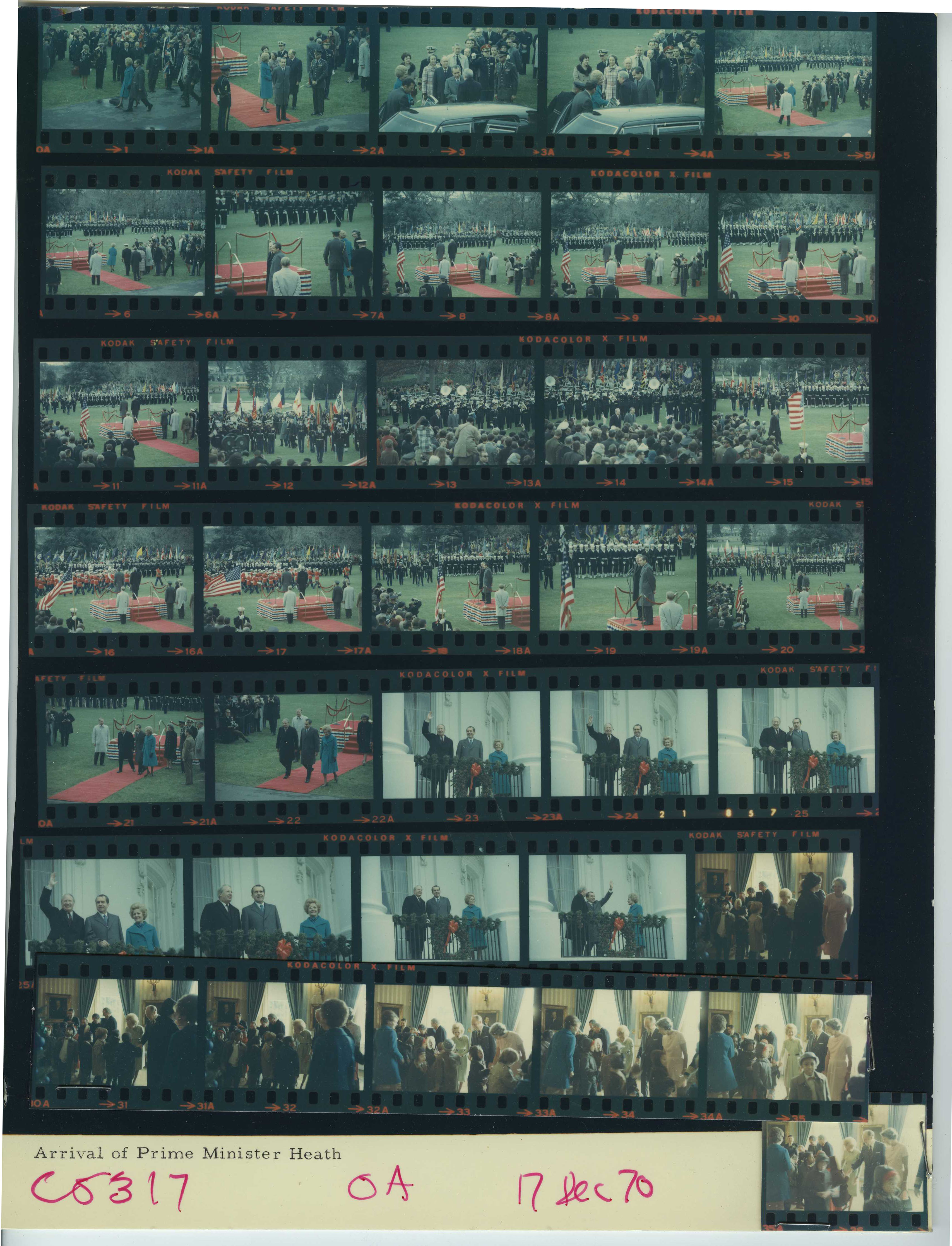 - Frame(s): WHPO-5313-02-10, Arrival of British Prime Minister Edward Heath. 12/17/1970, Washington, D.C. White House exterior. President Nixon, Edward Heath, British marching band, honor guards, guests and attendees.