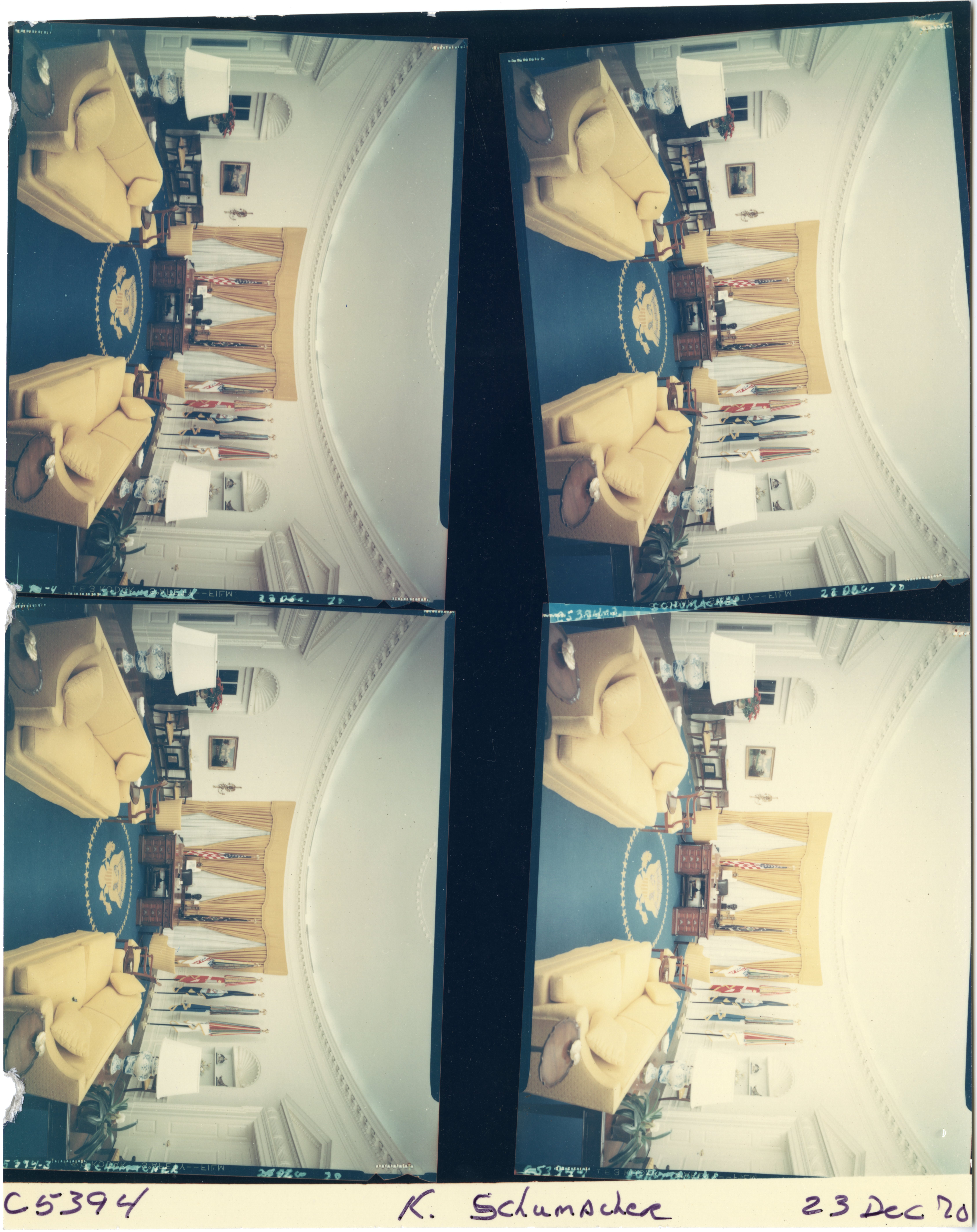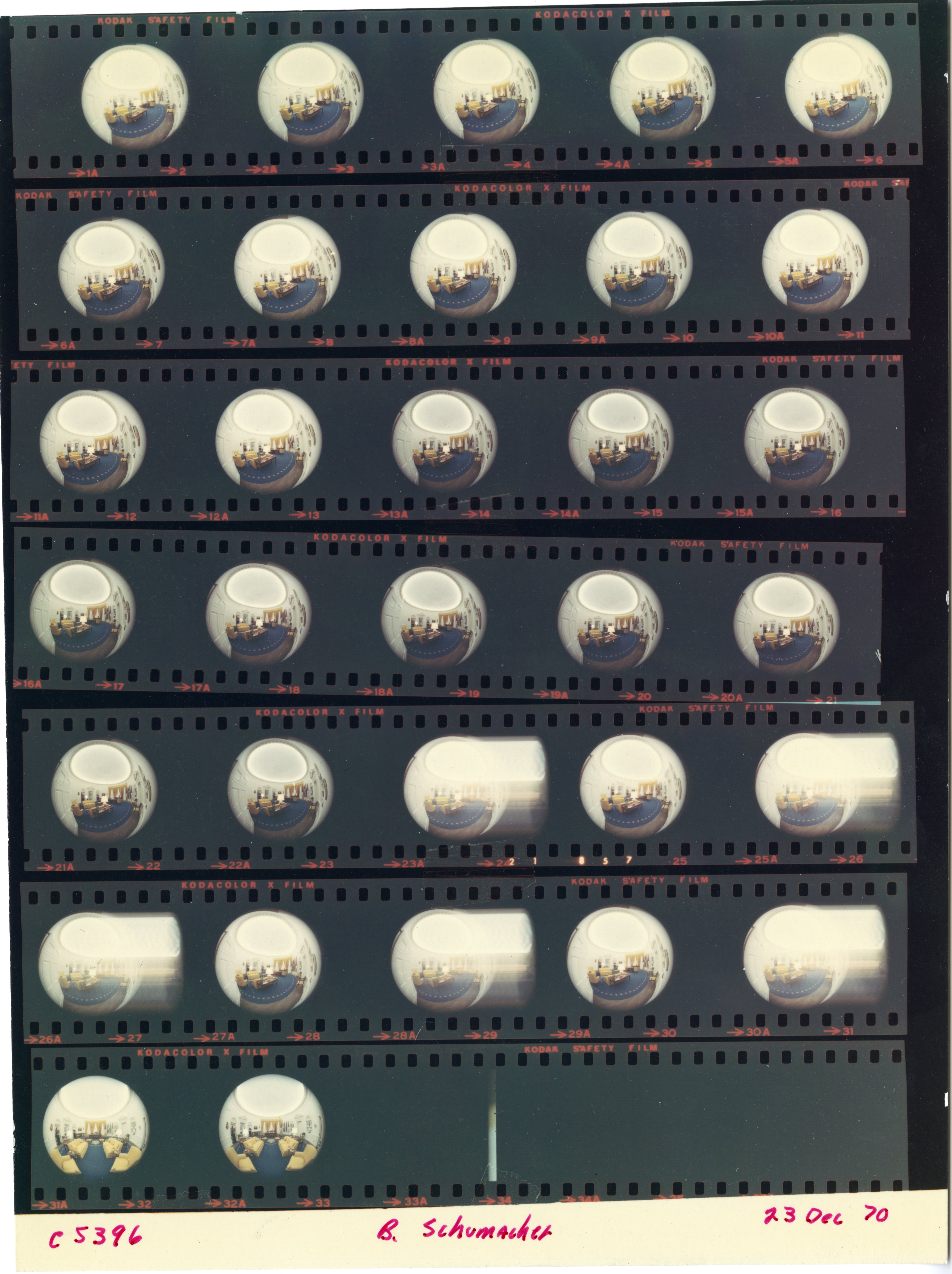 - Frame(s): WHPO-5396-01A-32A, Fish eye lens distortion of Oval Office. 12/23/1970, Washington, D.C. White House, Oval Office.
