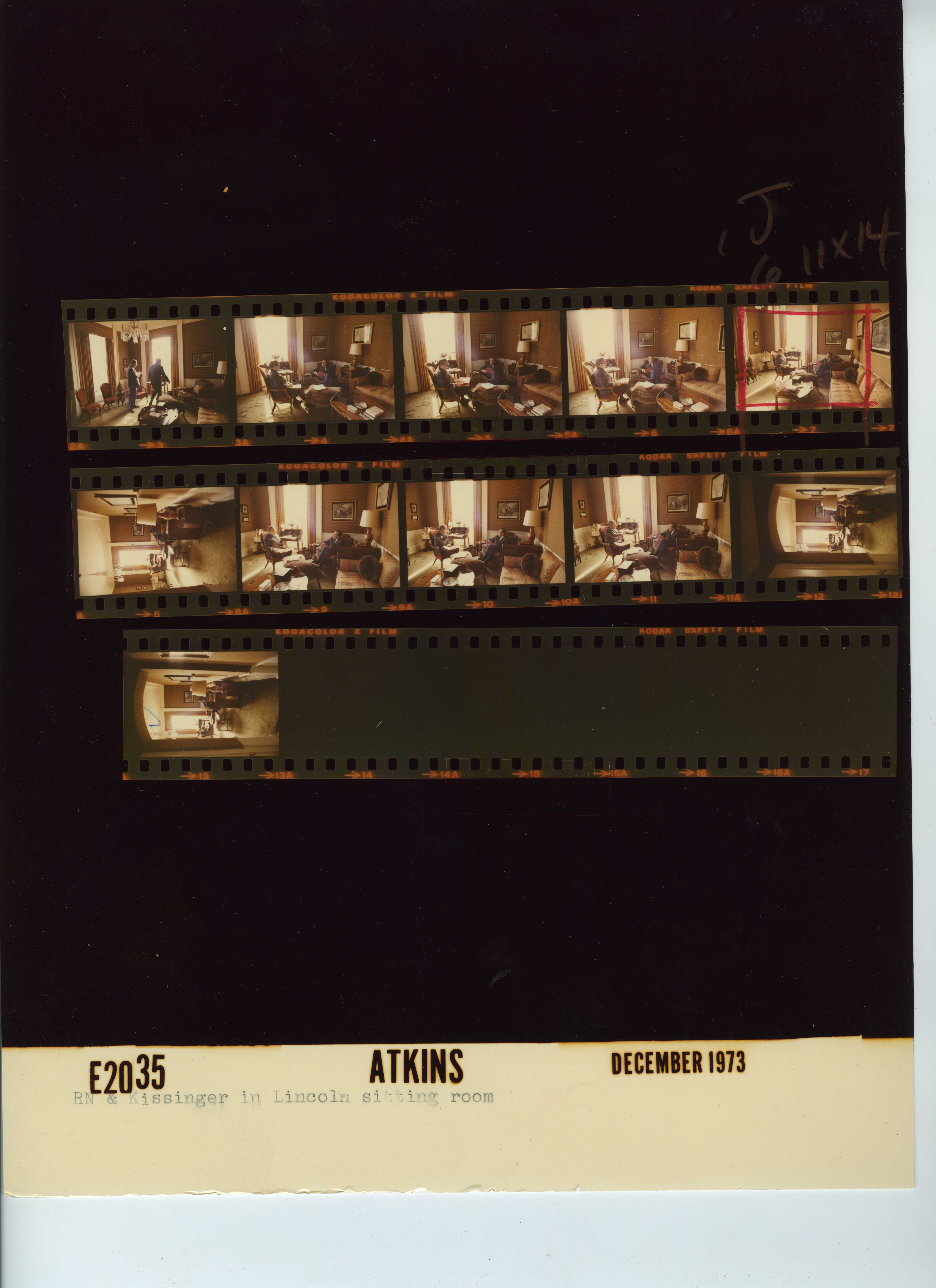 • Frame(s): WHPO-E2035-03-13, President Nixon seated informally in a Lincoln Sitting room easy chair during a meeting with Henry Kissinger. A small decorated Christmas tree sits on a side table. See also E2033 & E2034. 12/24/1973, Washington, D.C. White House, Lincoln Sitting Room. President Nixon, Henry A. Kissinger.