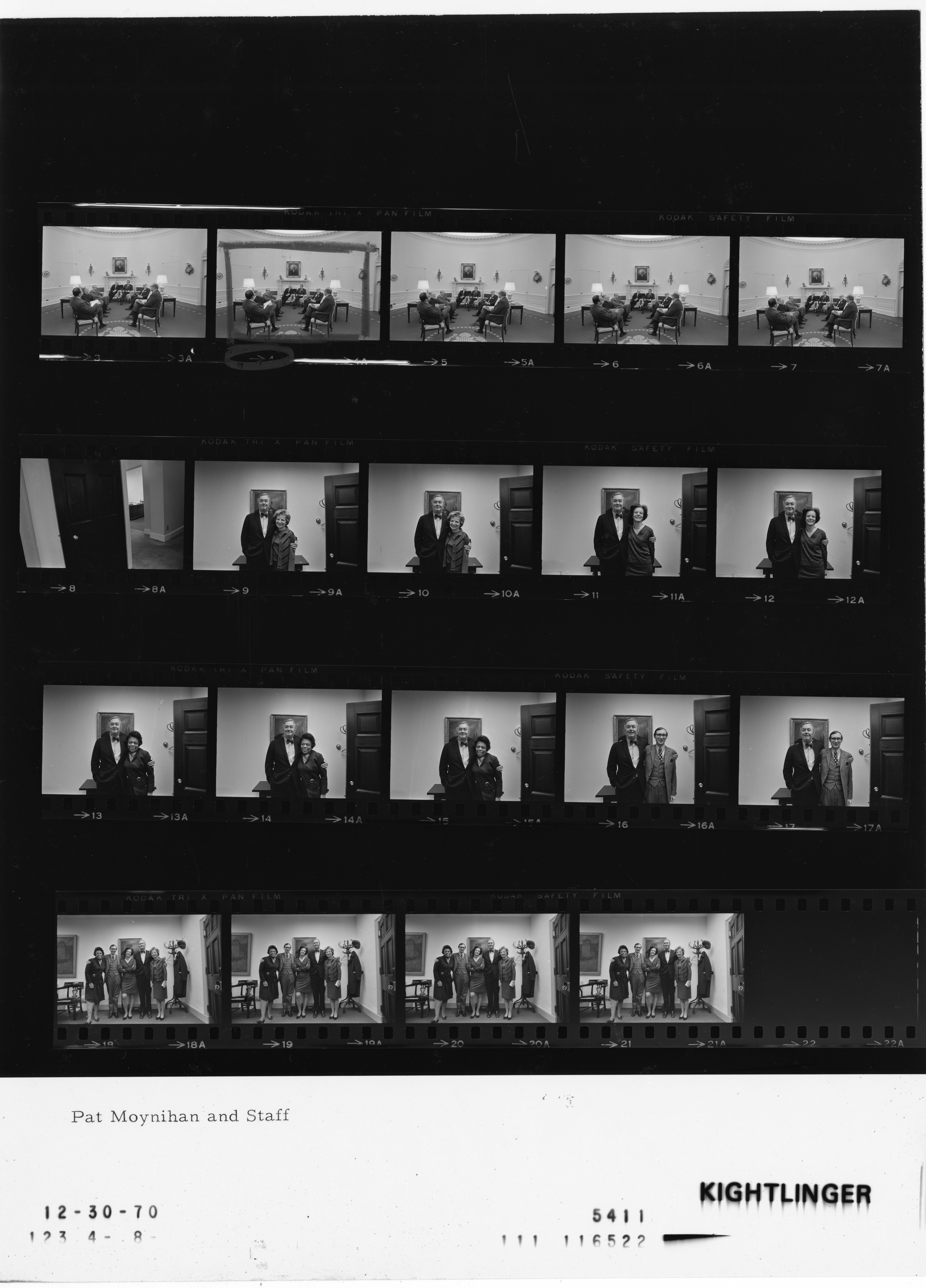 - Frame(s): WHPO-5411-09-17, Daniel Patrick Moynihan posing individually with four different staff members. 12/30/1970, Washington, D.C. unknown. Daniel Patrick Moynihan, unidentified staff members.