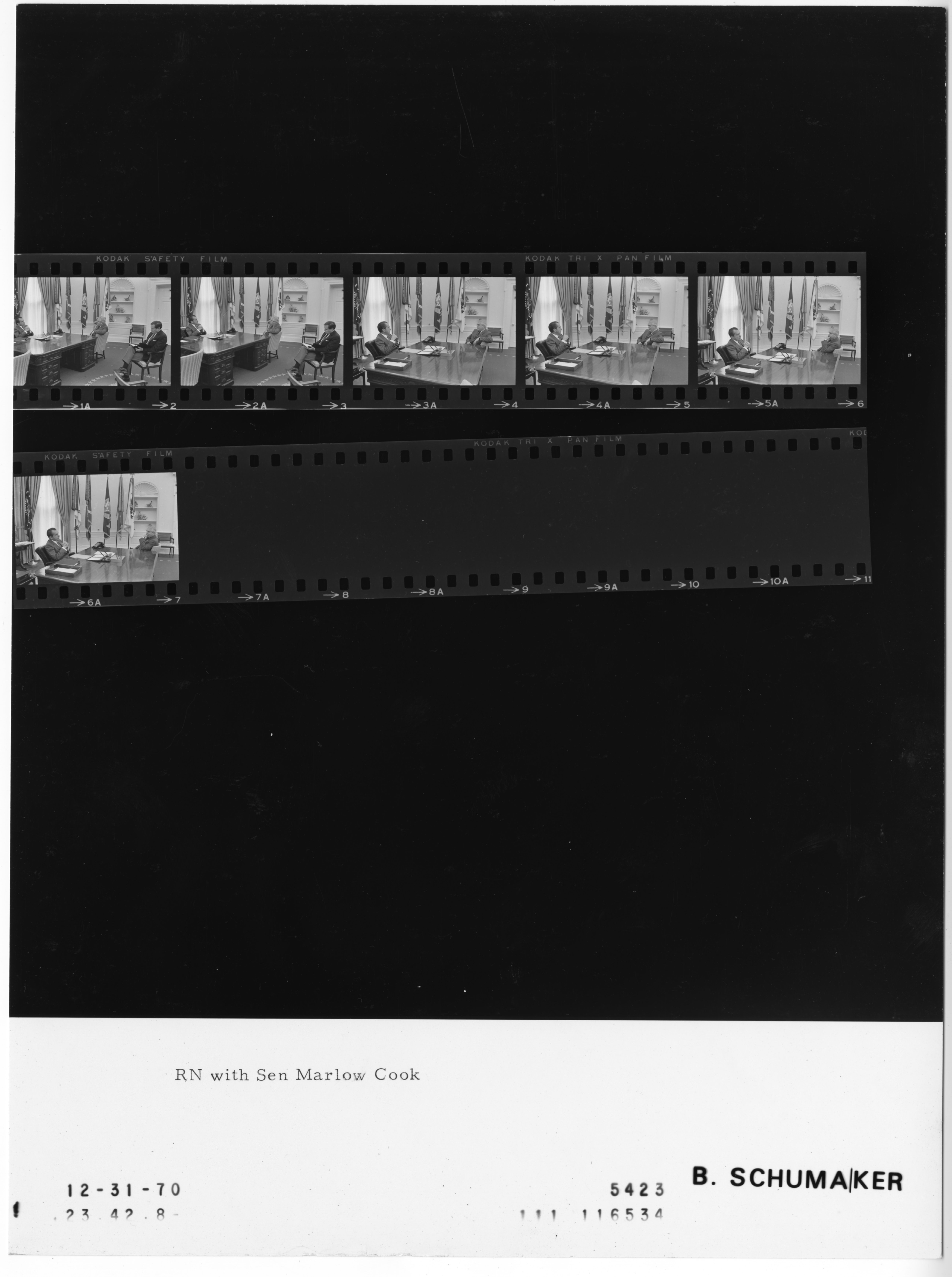 - Frame(s): WHPO-5423-01A-06A, President Nixon seated at his Oval Office desk during a meeting with Kentucky Senator Marlow Cook. 12/31/1970, Washington, D.C. White House, Oval Office. President Nixon, Marlow Cook.
