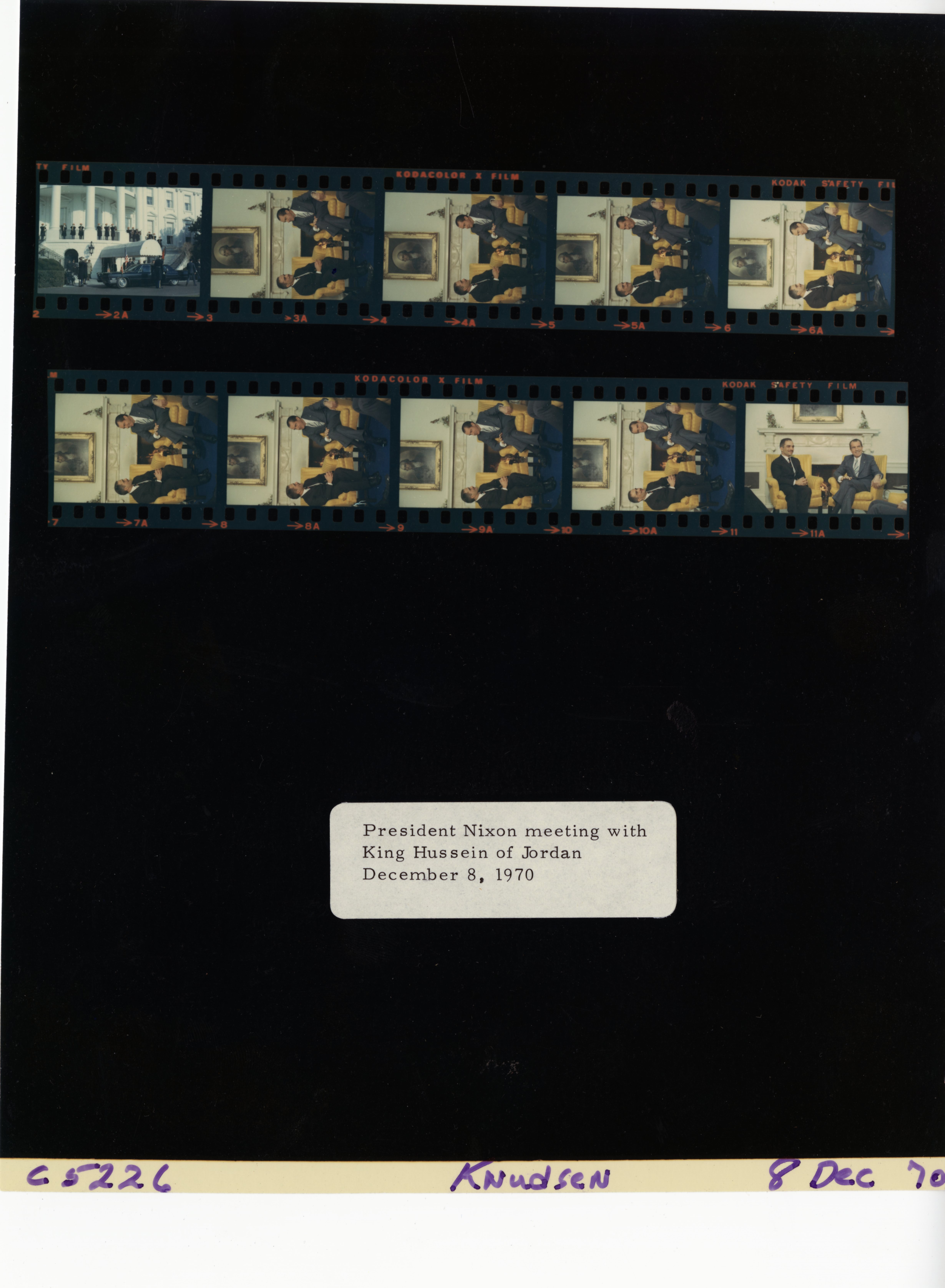 - Frame(s): WHPO-5226-06A, President Nixon seated informally during an Oval Office meeting with King Hussein of Jordan. 12/8/1970, Washington, D.C. White House, Oval Office. President Nixon, King Hussein.