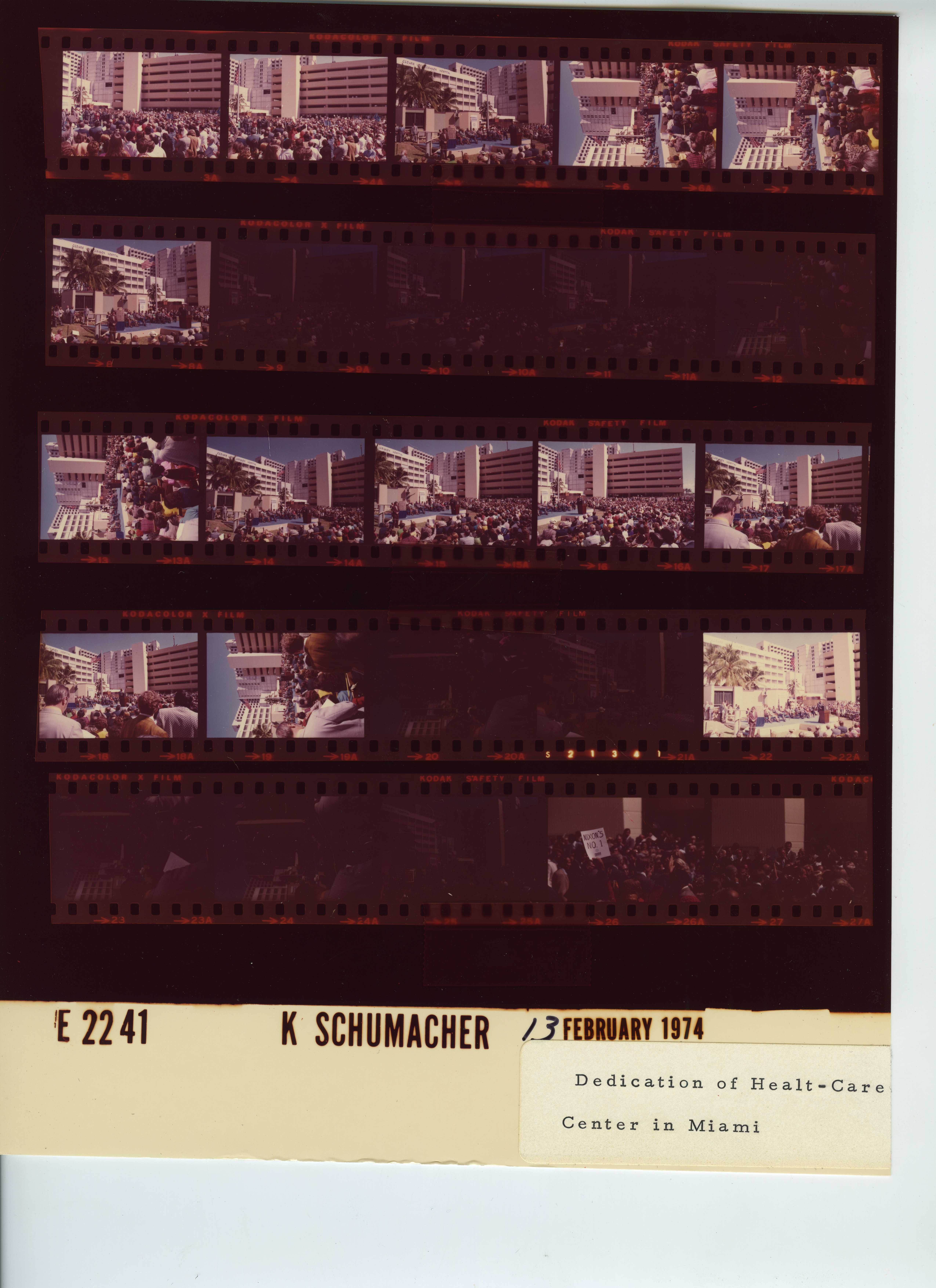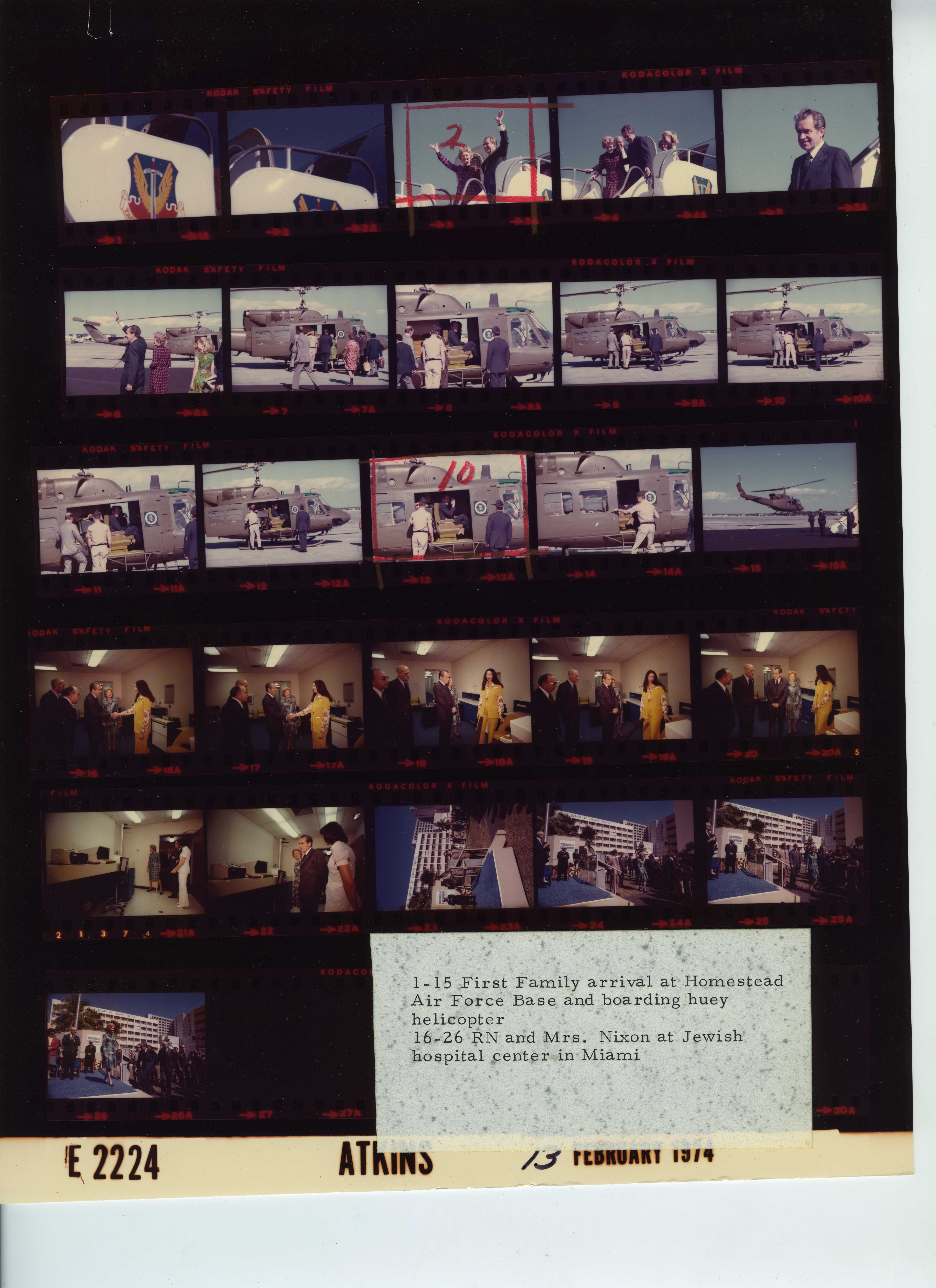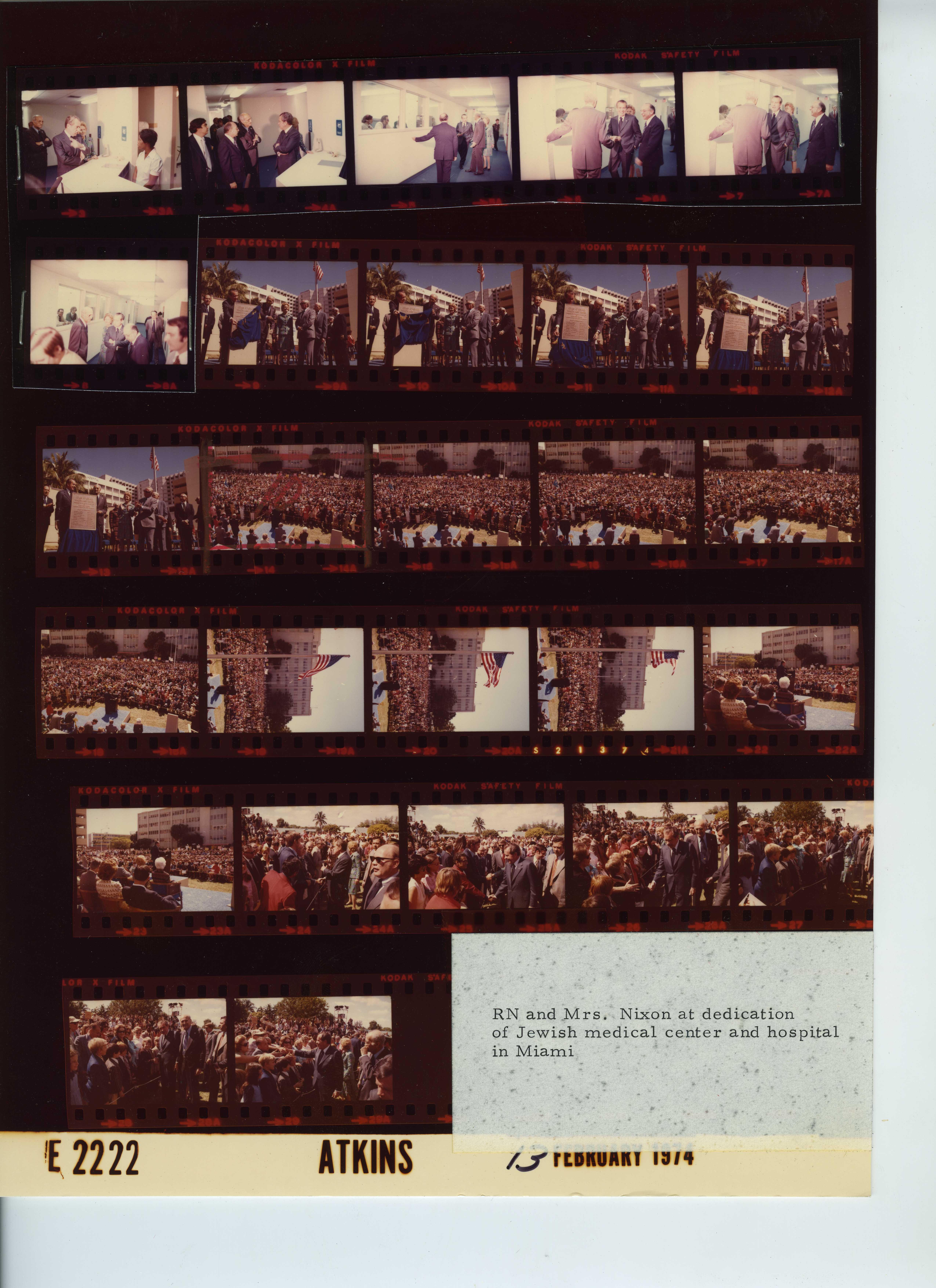 - Frame(s): WHPO-E2223-01-22, President Nixon, Pat Nixon greet doctors, nurses and staff after taking part in the dedication ceremony at Cedars of Lebanon Jewish Health Care Medical Center and Hospital in Miami, Florida. 2/13/1974, Miami, Florida Miami, Florida. President Nixon, Sanford K. Bronstein, Harry Hochstadt.