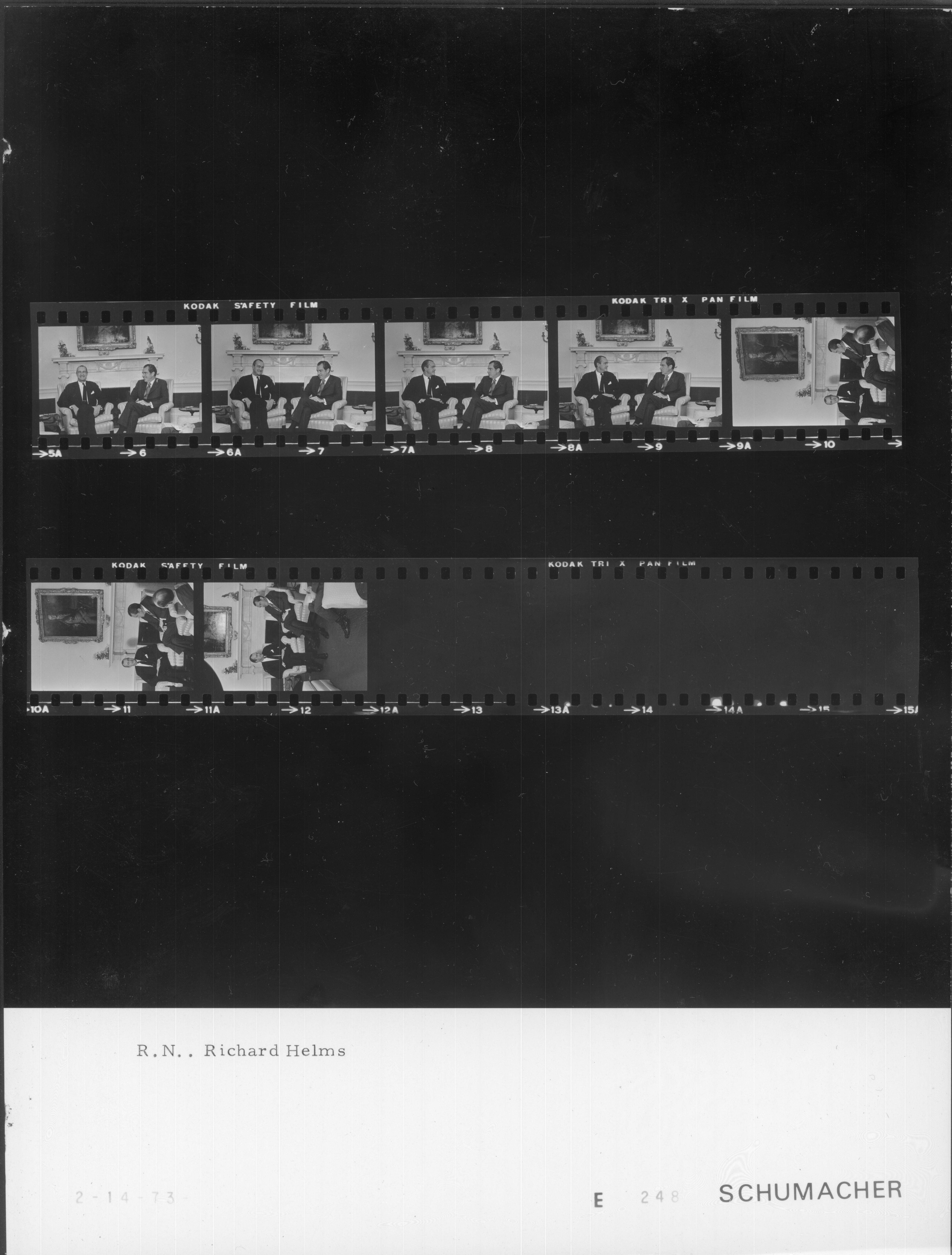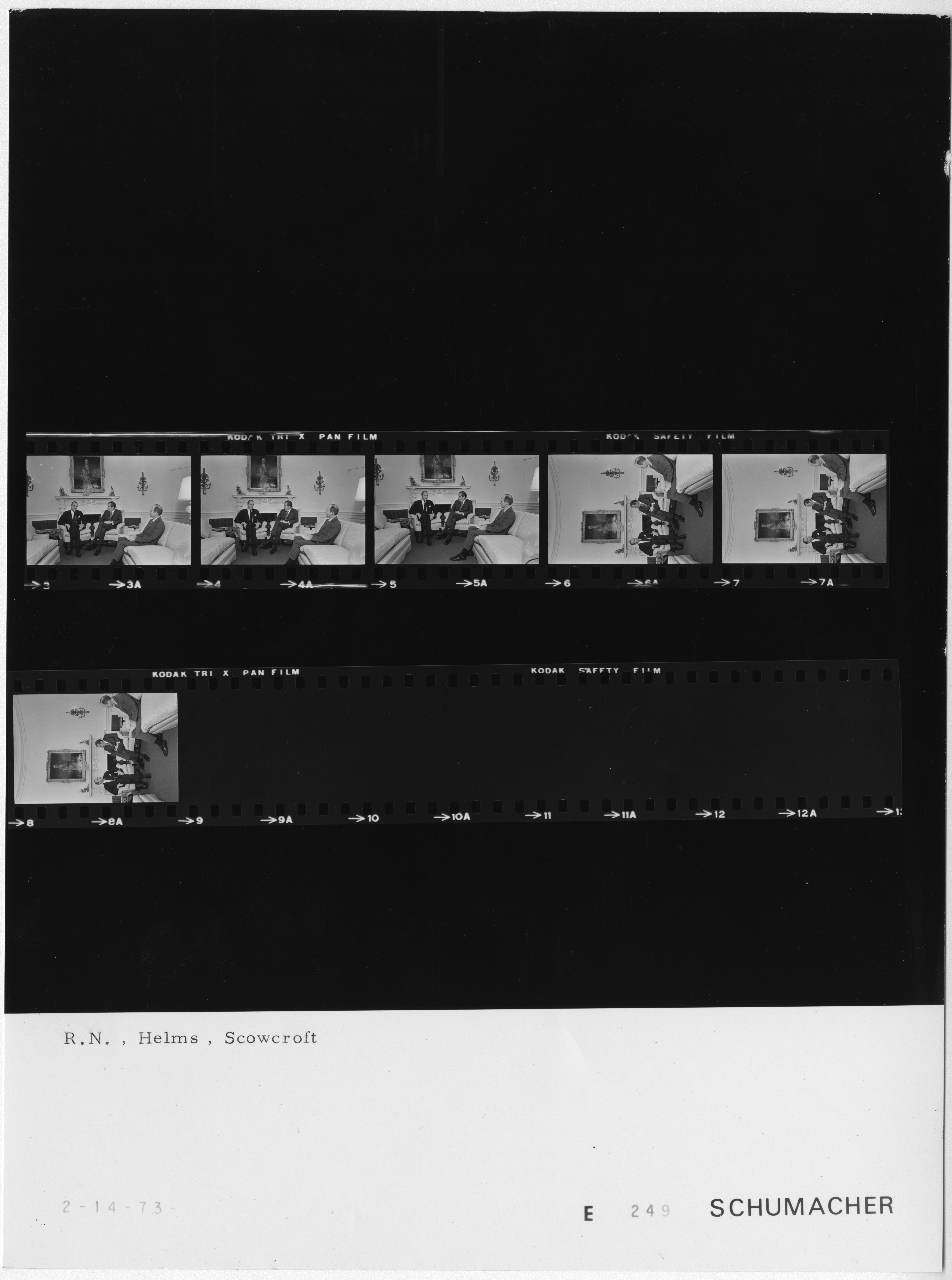- Frame(s): WHPO-E0249-05A, President Nixon seated informally in the Oval Office during a meeting with Director of the Central Intelligence Agency Richard Helms (CIA) and Brigadier General Brent Scowcroft. 2/14/1973, Washington, D.C. White House, Oval Office. President Nixon, Brig. Gen Brent Scowcroft, Richard Helms.