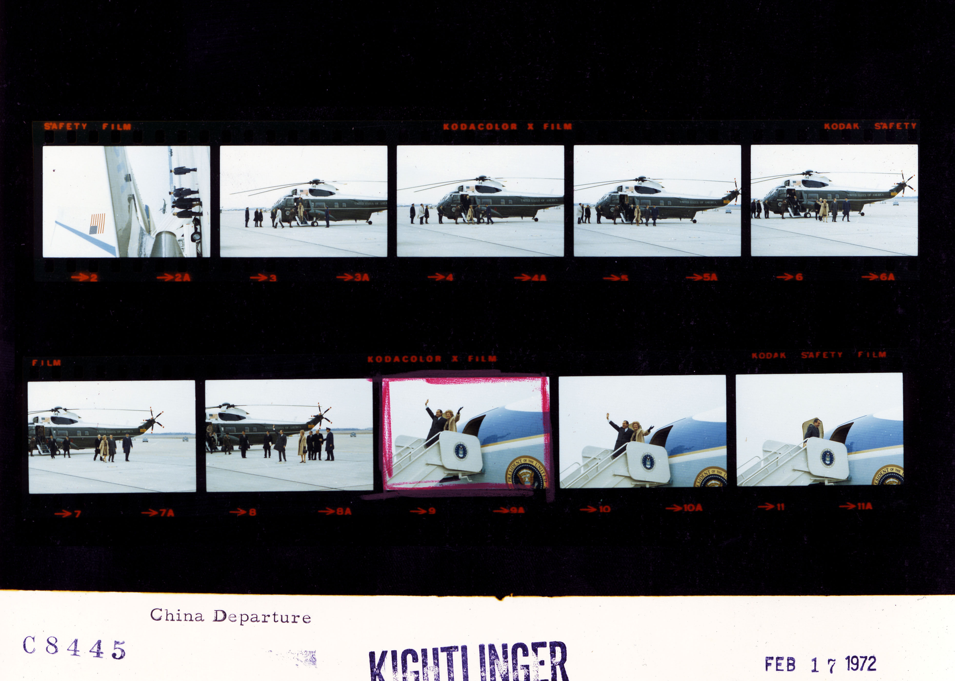 6. Mudd/Kalb: President Nixon leaves for China, departing White House lawn via helicopter for Andrews AFB. Time Code Start: 15:18. Keywords: Presidents, travel, trips, Nixon trips, international, People's Republic of China. Network: CBS.