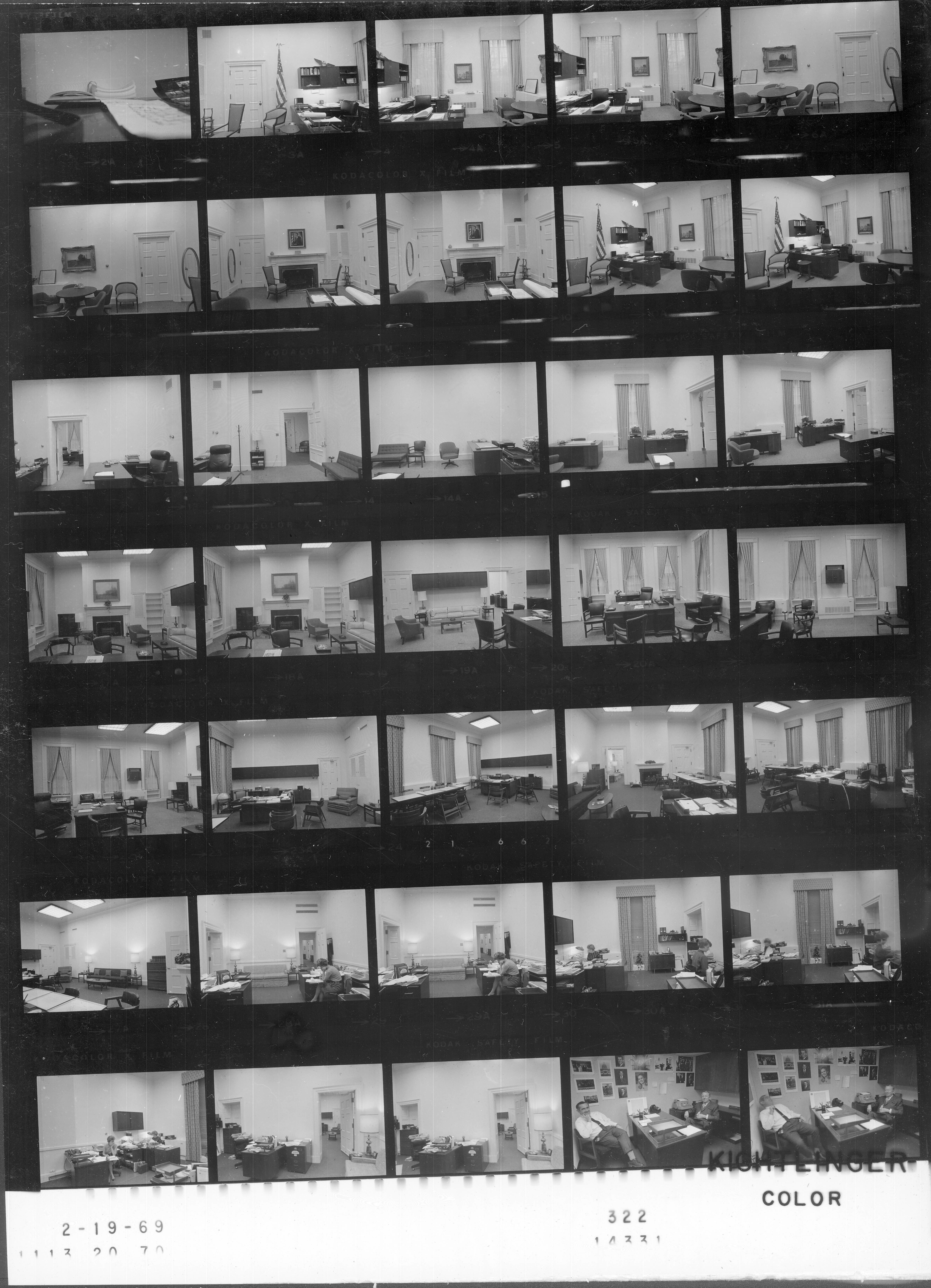 - Frame(s): WHPO-0321-21, 25-36, Various offices with unidentified staff members. 2/19/1969, Washington, D.C. White House, West Wing. unidentified staff members.