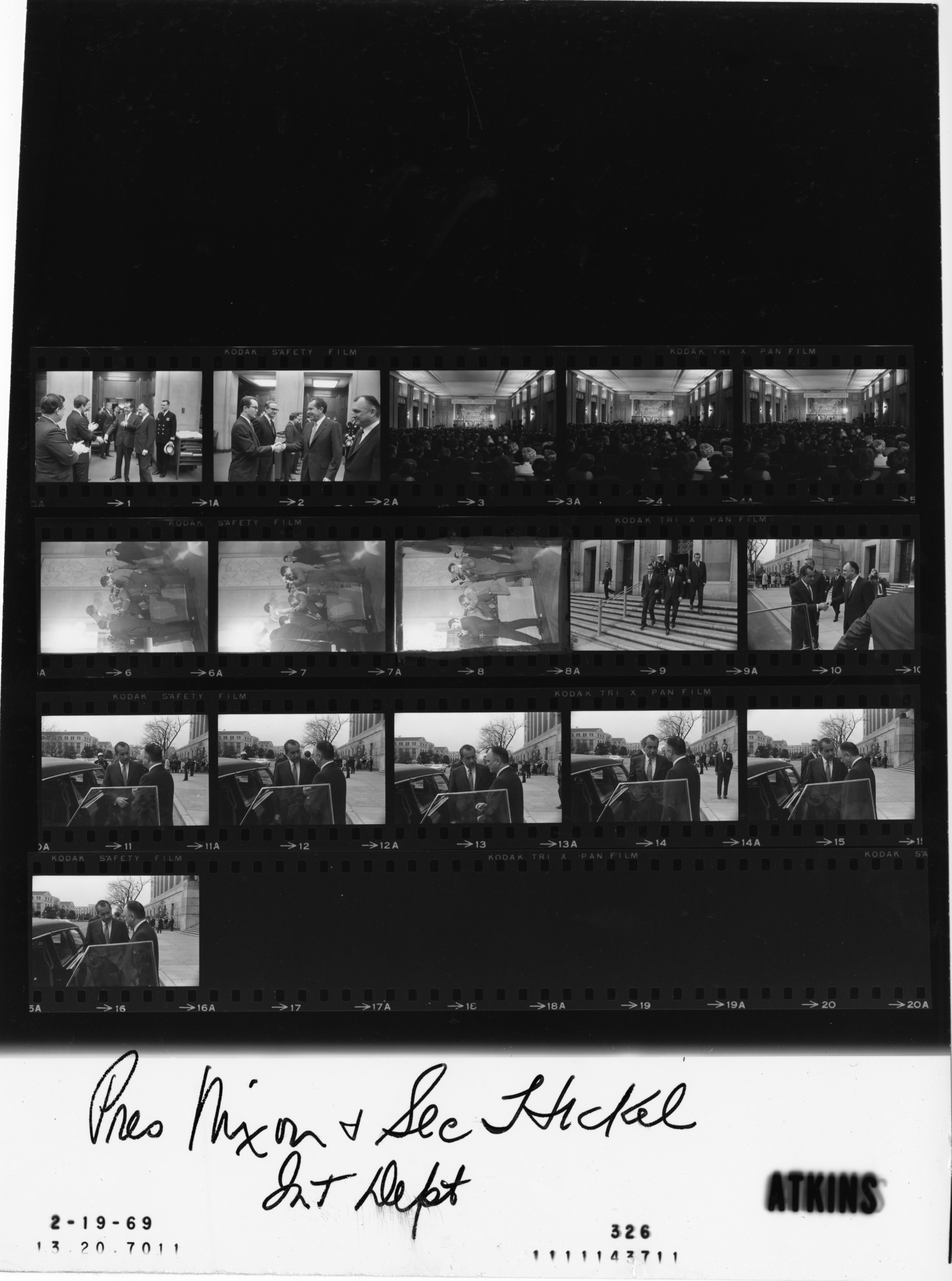 - Frame(s): WHPO-0326-09-16, Secretary of the Interior Walter Hickel escorts President Nixon away from the Department of the Interior building. 2/19/1969, Washington, D.C. Department of the Interior. President Nixon, Walter Hickel.