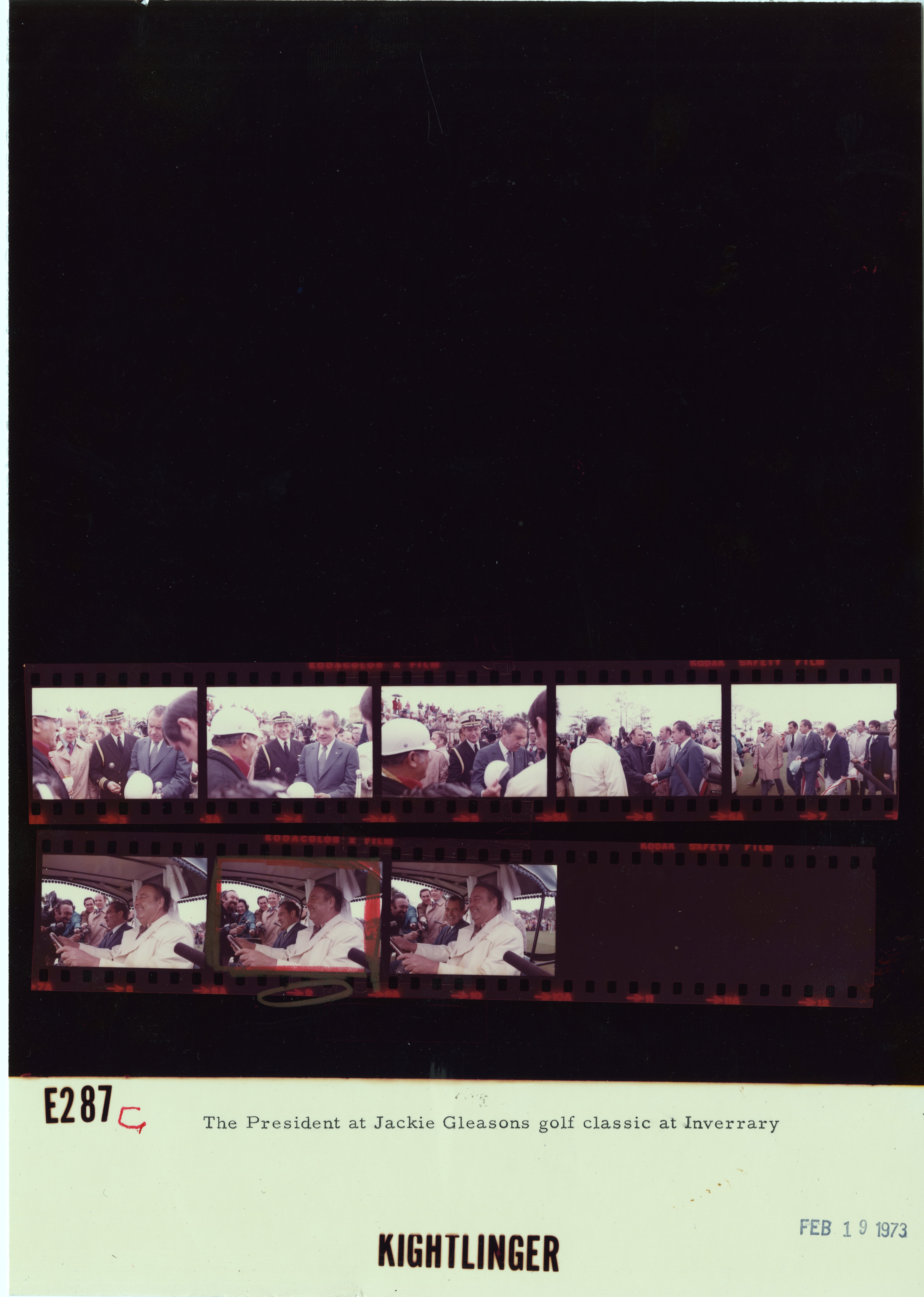 - Frame(s): WHPO-E0287-, President Nixon greeting people in the crowd, and sitting next to comedian Jackie Gleason in a golf cart during the 1973 Jackie Gleason Inverrary National Airlines Golf Classic. 2/19/1973, Lauderhill, Florida 18th green, Inverrary Golf and Country Club. President Nixon, Jackie Gleason, golfers, aides.