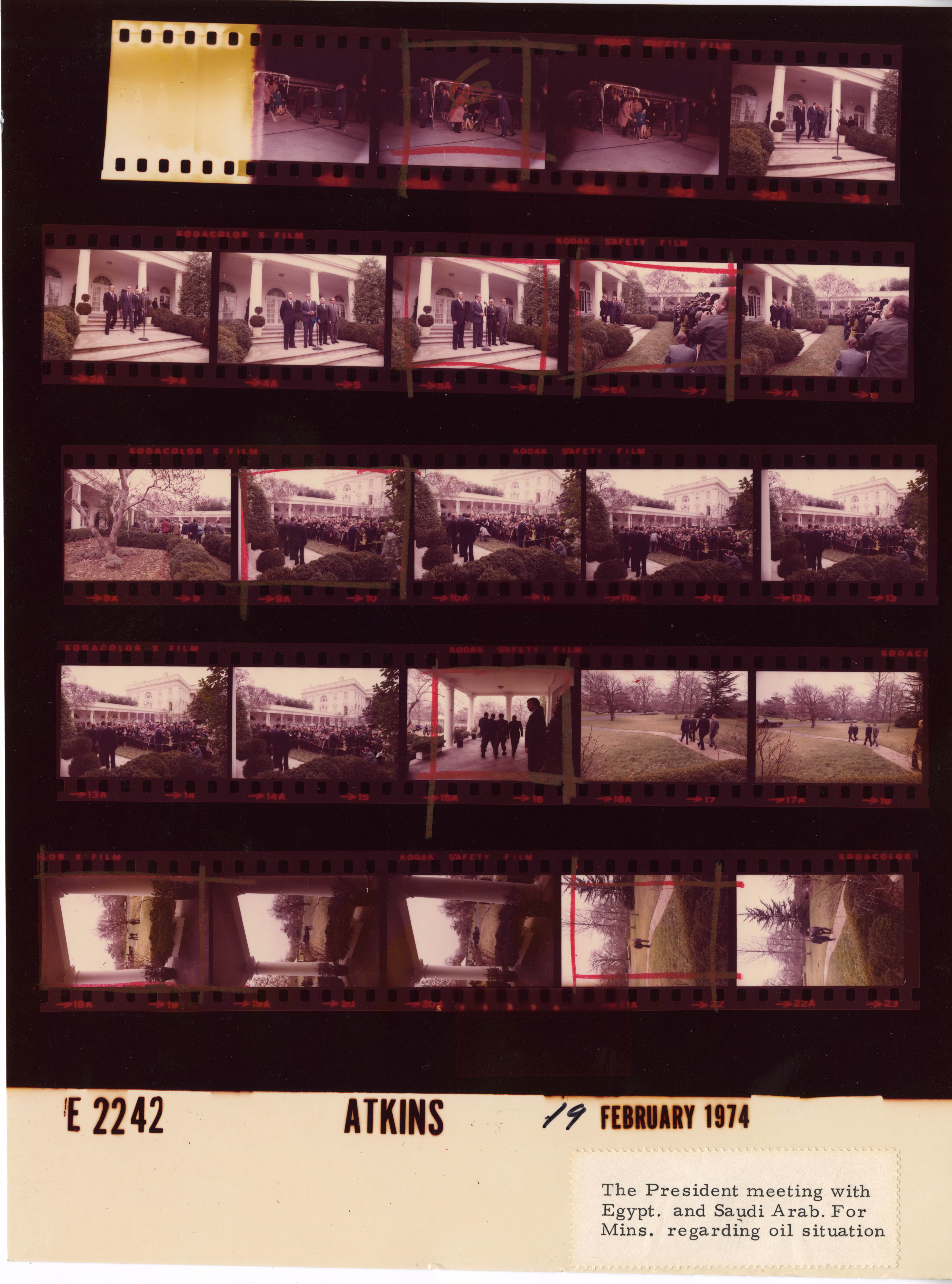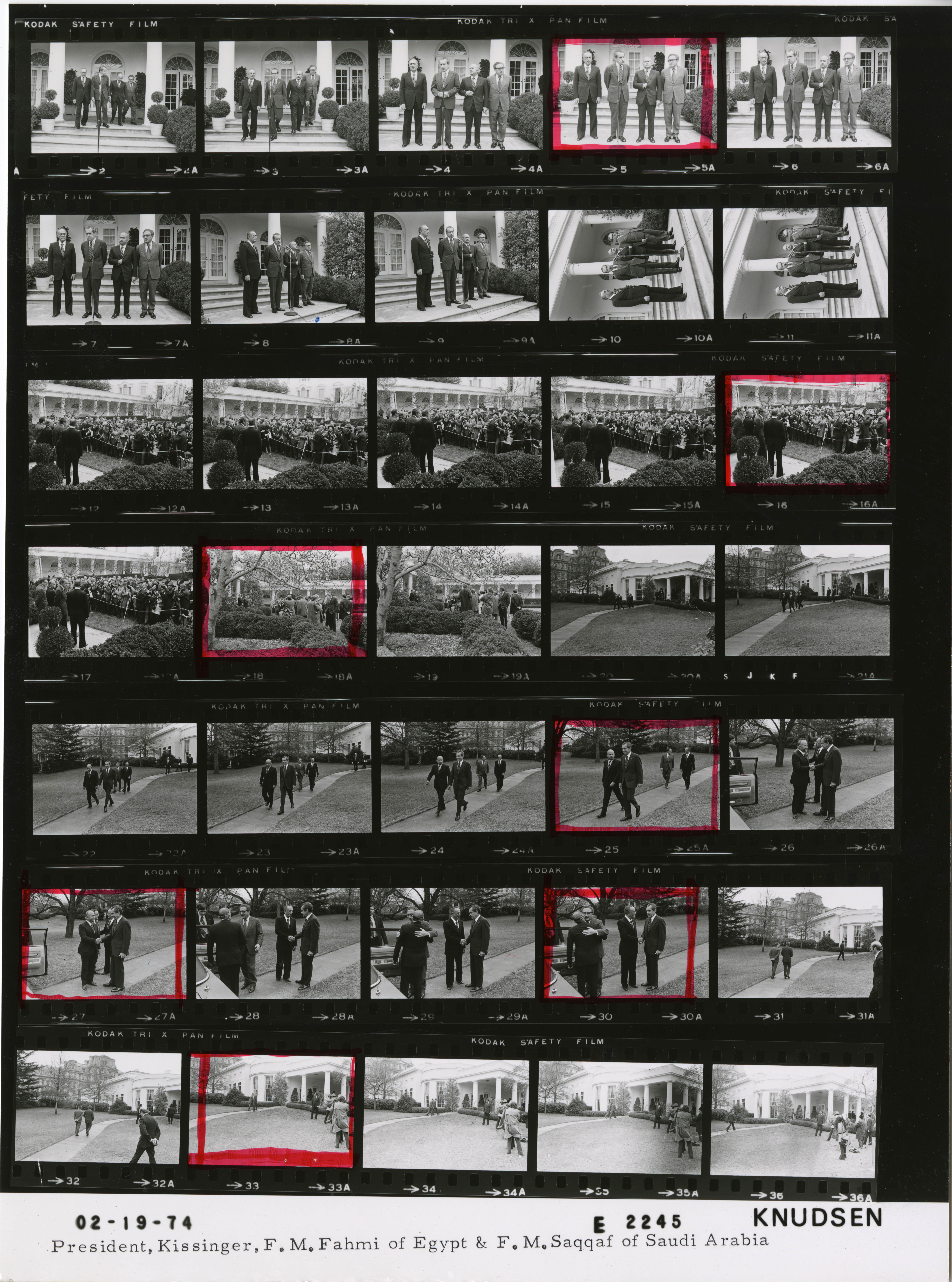 - Frame(s): WHPO-E2245-18, President Nixon during a Rose Garden press conference regarding oil resources with Ismail Fahmi, Foreign Affairs Minister of the Arab Republic of Egypt and Omar Saqqaf, Foreign Affairs Minister of Saudi Arabia, Secretary of State Henry Kissinger. Reporters and photographers stand in a group before the leaders. 2/19/1974, Washington, D.C. White House, Rose Garden. President Nixon, Ismail Fahmi, Omar Saqqaf, Henry Kissinger, press corps members.