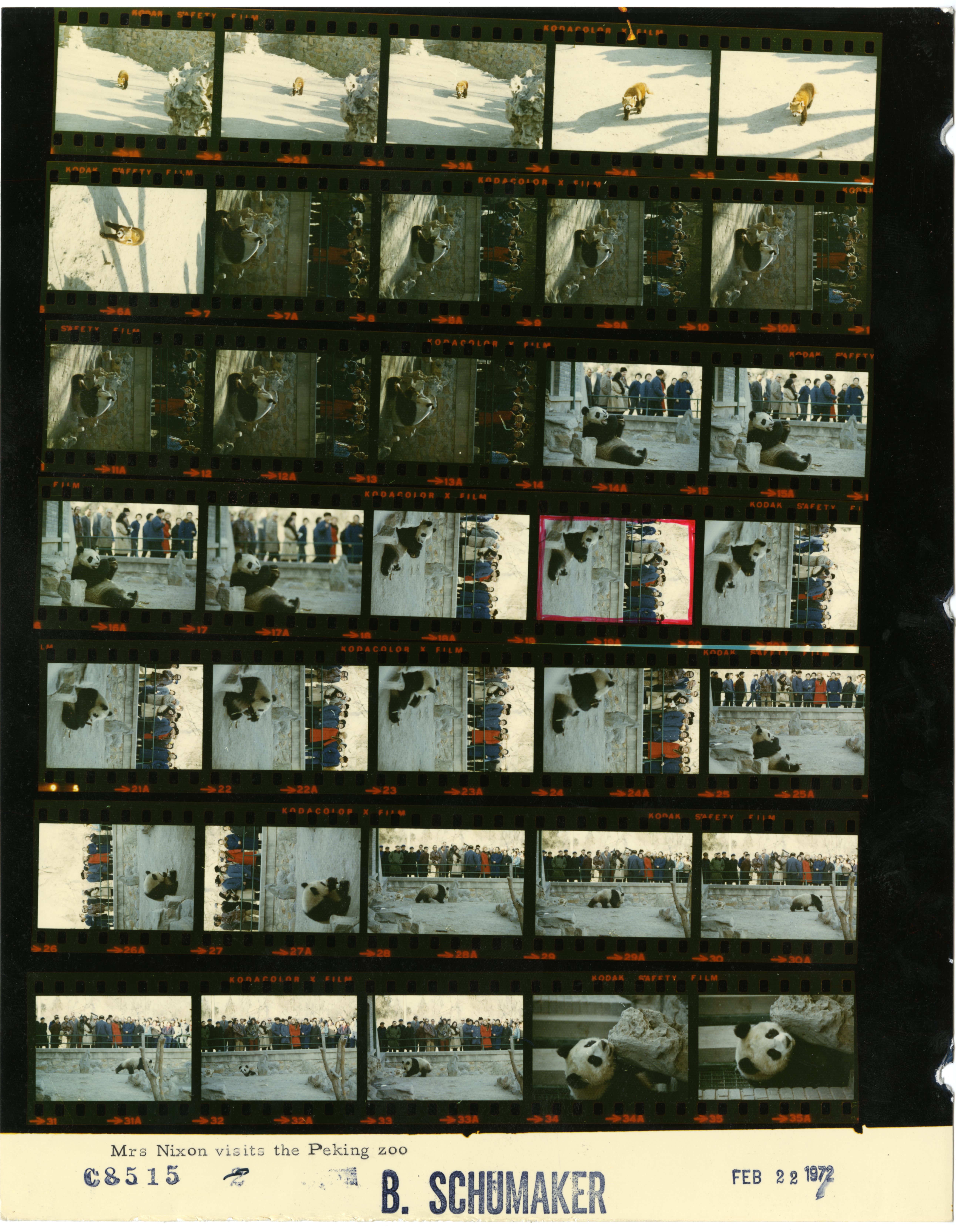 - Frame(s): WHPO-8514-24-27, Pat Nixon and others stand in front of a zoo enclosure at the Peking Zoo. 2/22/1972, Peking, China zoo cage enclosure. Pat Nixon, Chinese officials, citizens.