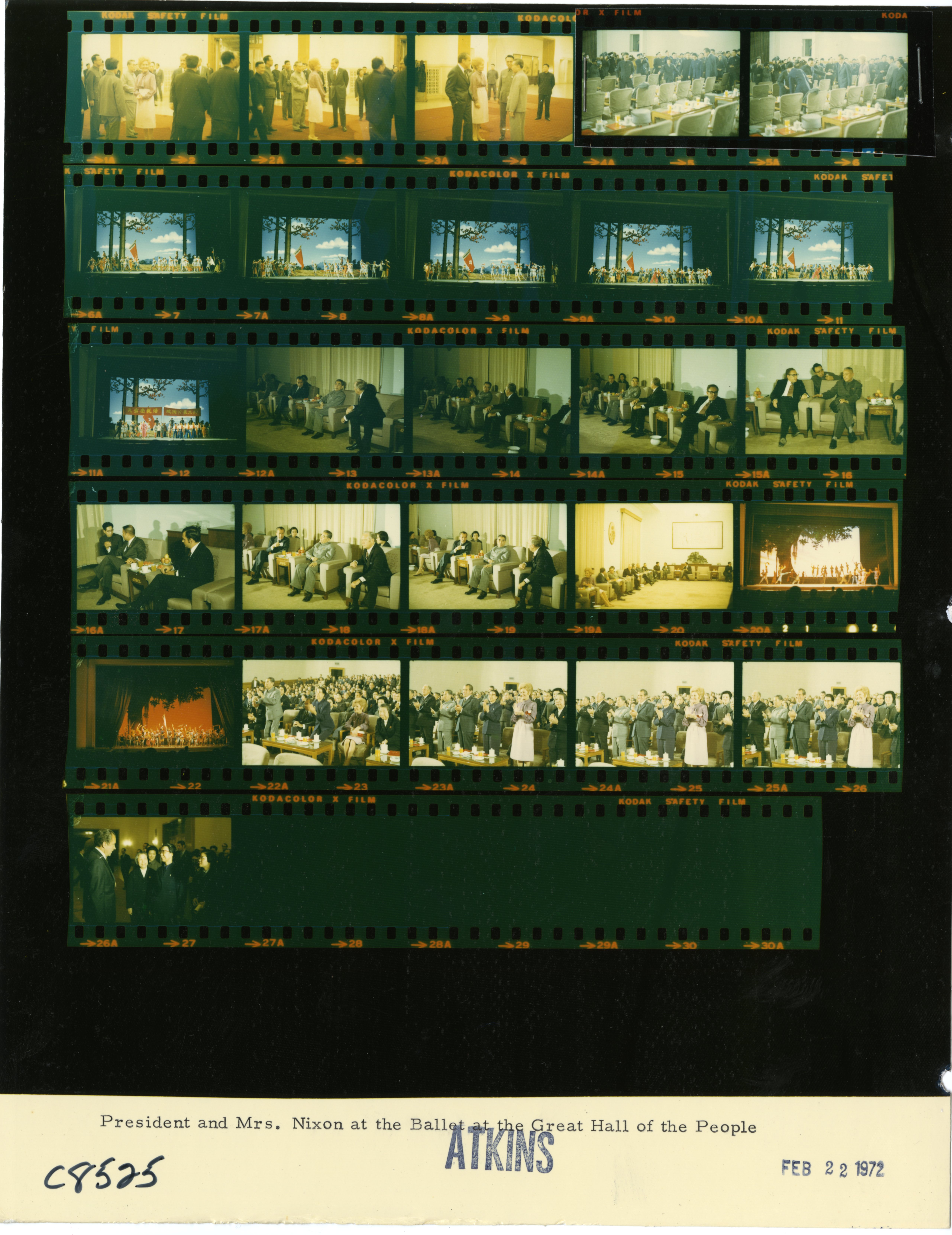 - Frame(s): WHPO-8525-01A-03A, President Nixon and Pat Nixon with others prior to a revolutionary opera performance. 2/22/1972, Peking, China Great Hall of the People. President Nixon, Pat Nixon, William Rogers, Chou En-Lai, Chinese officials, audience.