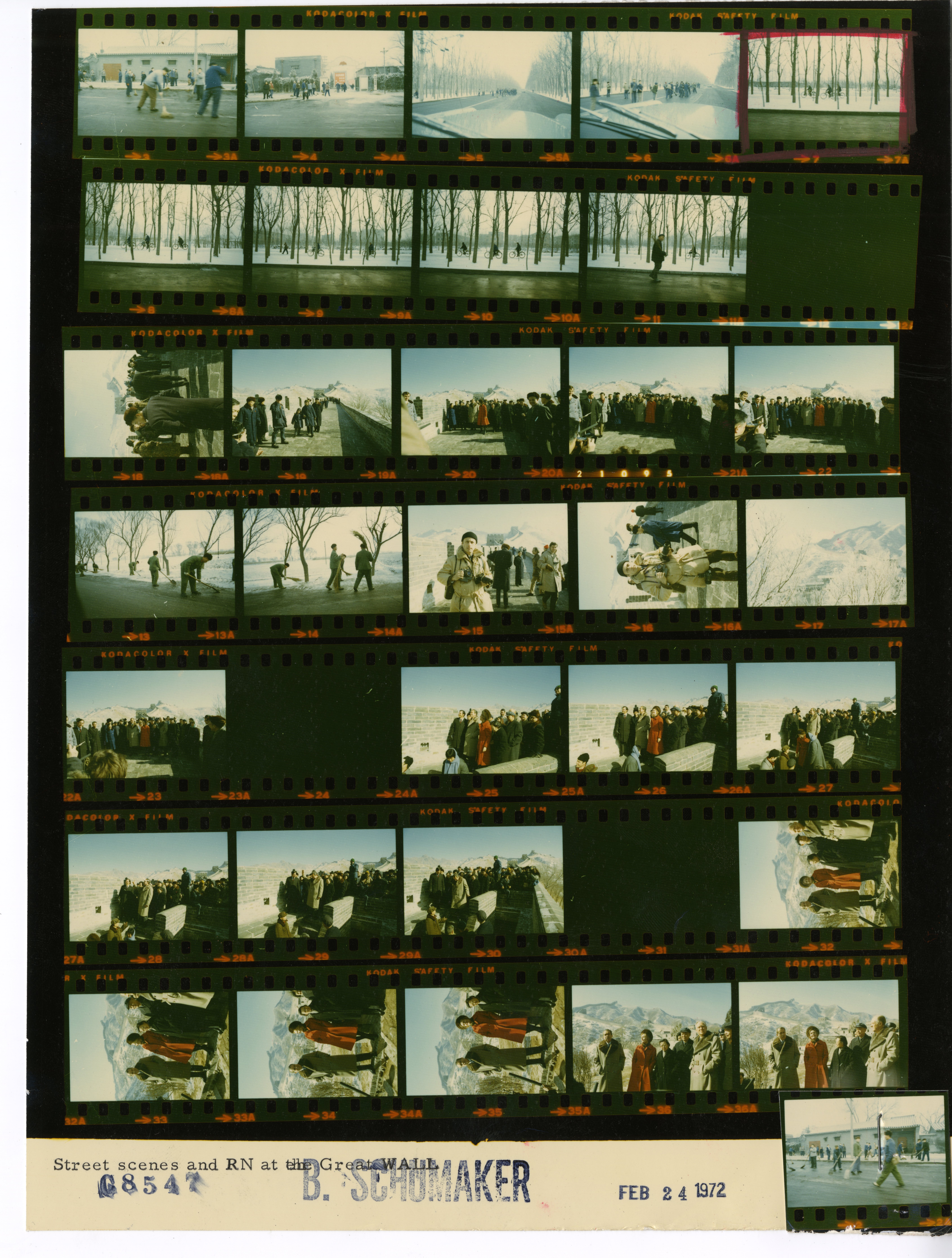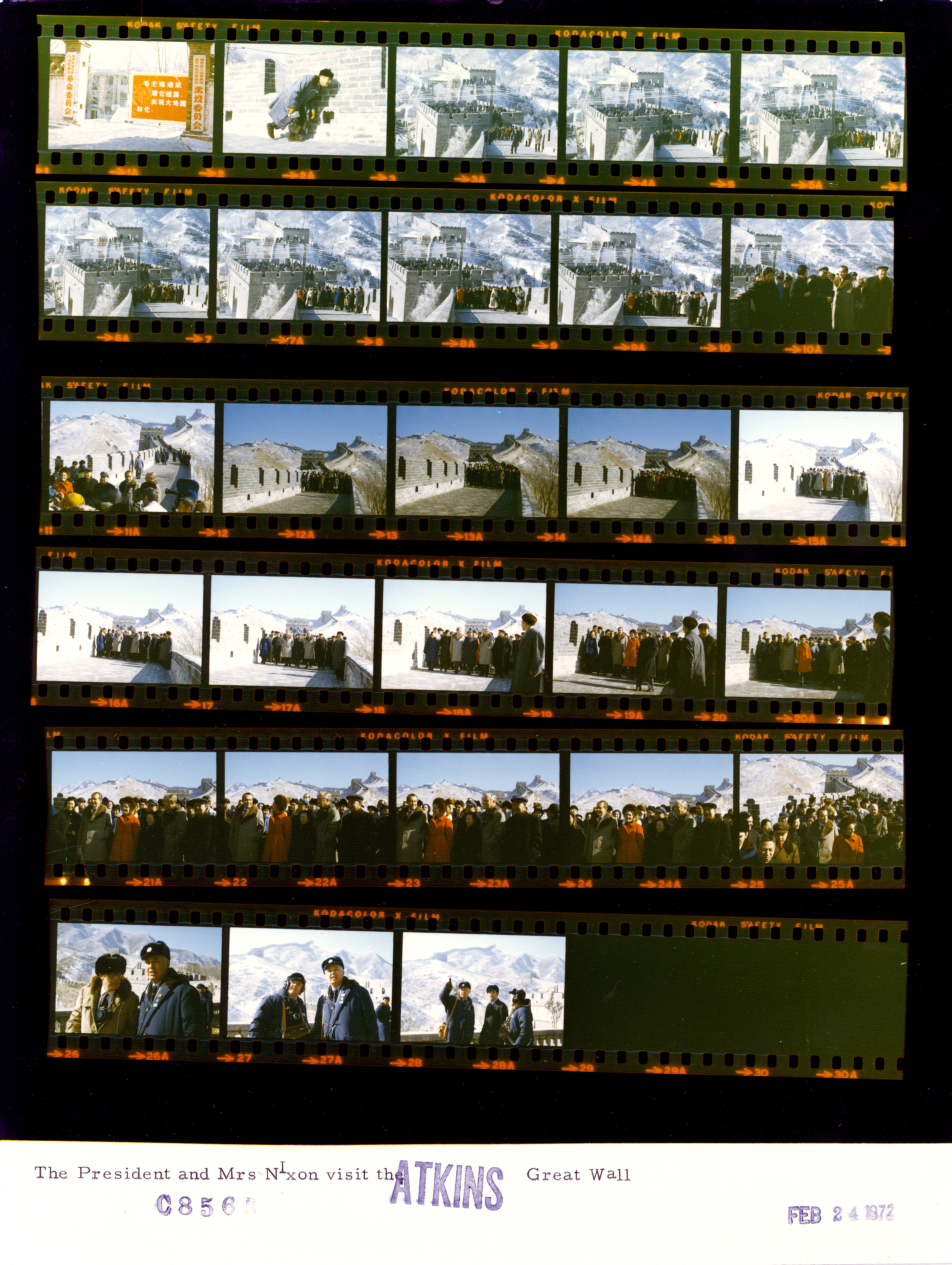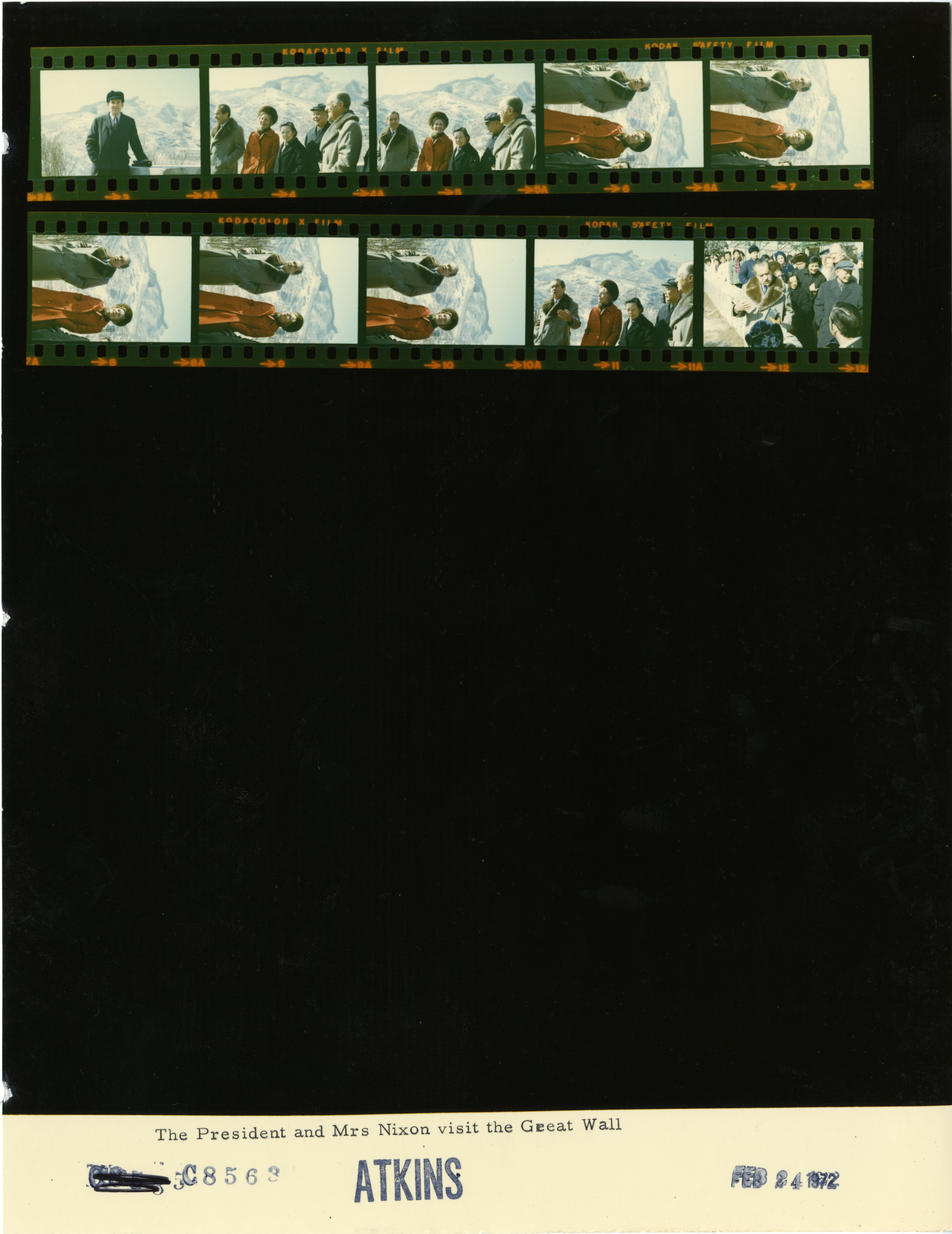 - Frame(s): WHPO-8564-02A-03A, President Nixon leaving the Great Wall. 2/24/1972, Peking, China Ba Da Ling portion, Great Wall of China. President Nixon, Pat Nixon, William Rogers, Chinese officials and interpreters, Pat Buchanan, Oliver Atkins, Ron Walker, reporters and photographer members of the Press Corps.