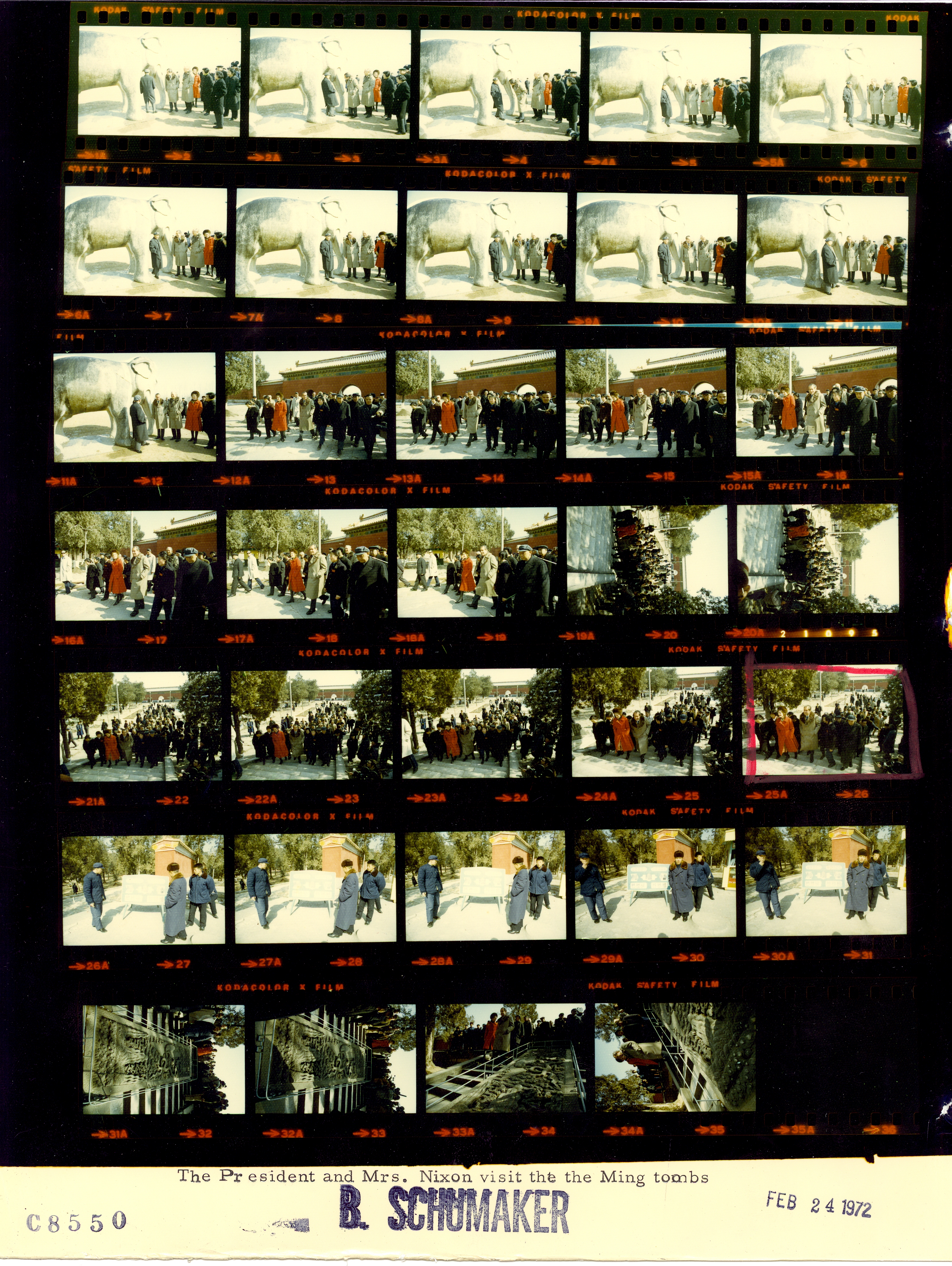 - Frame(s): WHPO-8564-10A-18A, President Nixon and Pat Nixon leaving the Ming Tombs area. 2/24/1972, Peking, China Ming Tombs. President Nixon, Pat Nixon, William Rogers, Chinese officials, entourage.