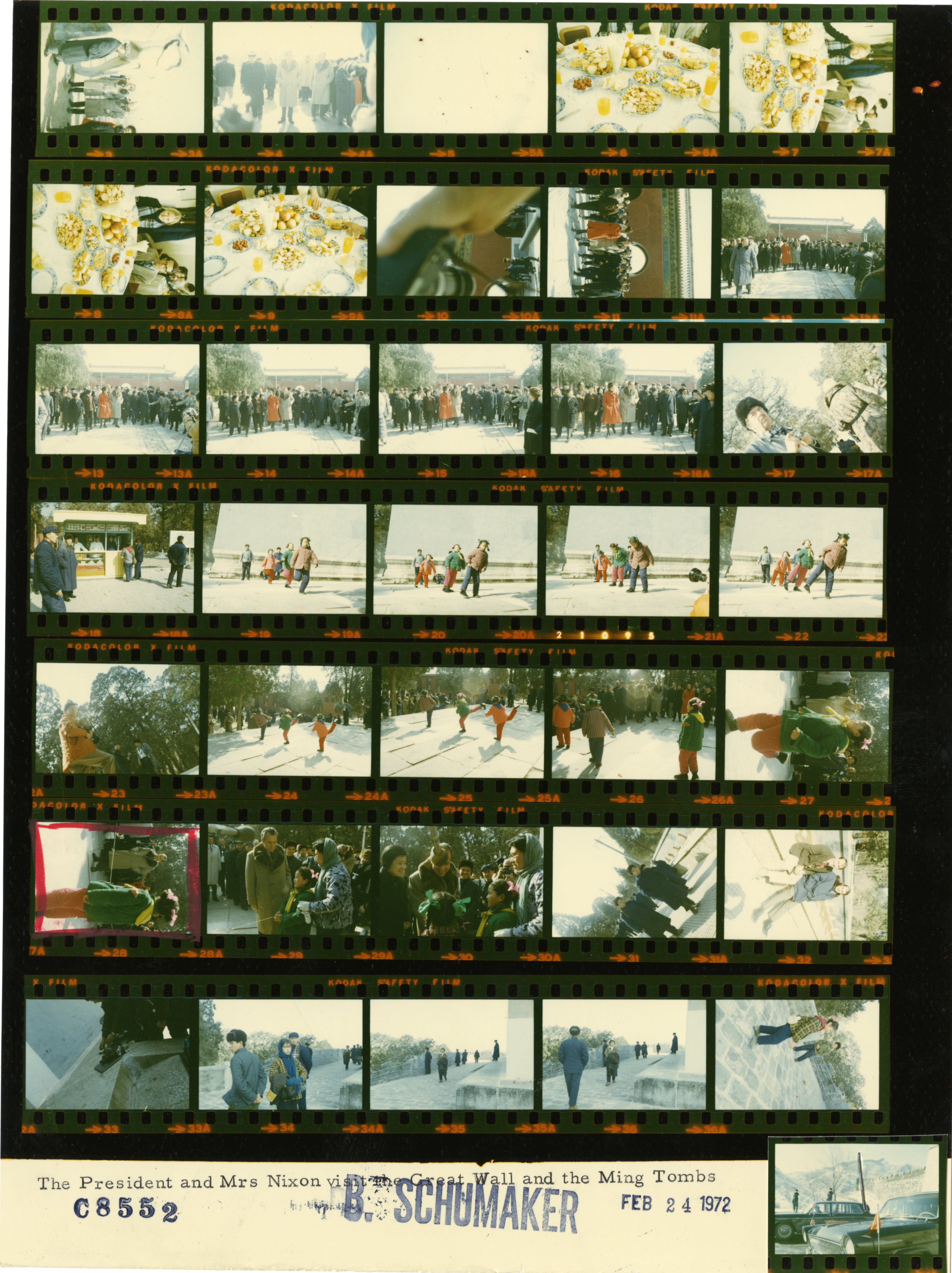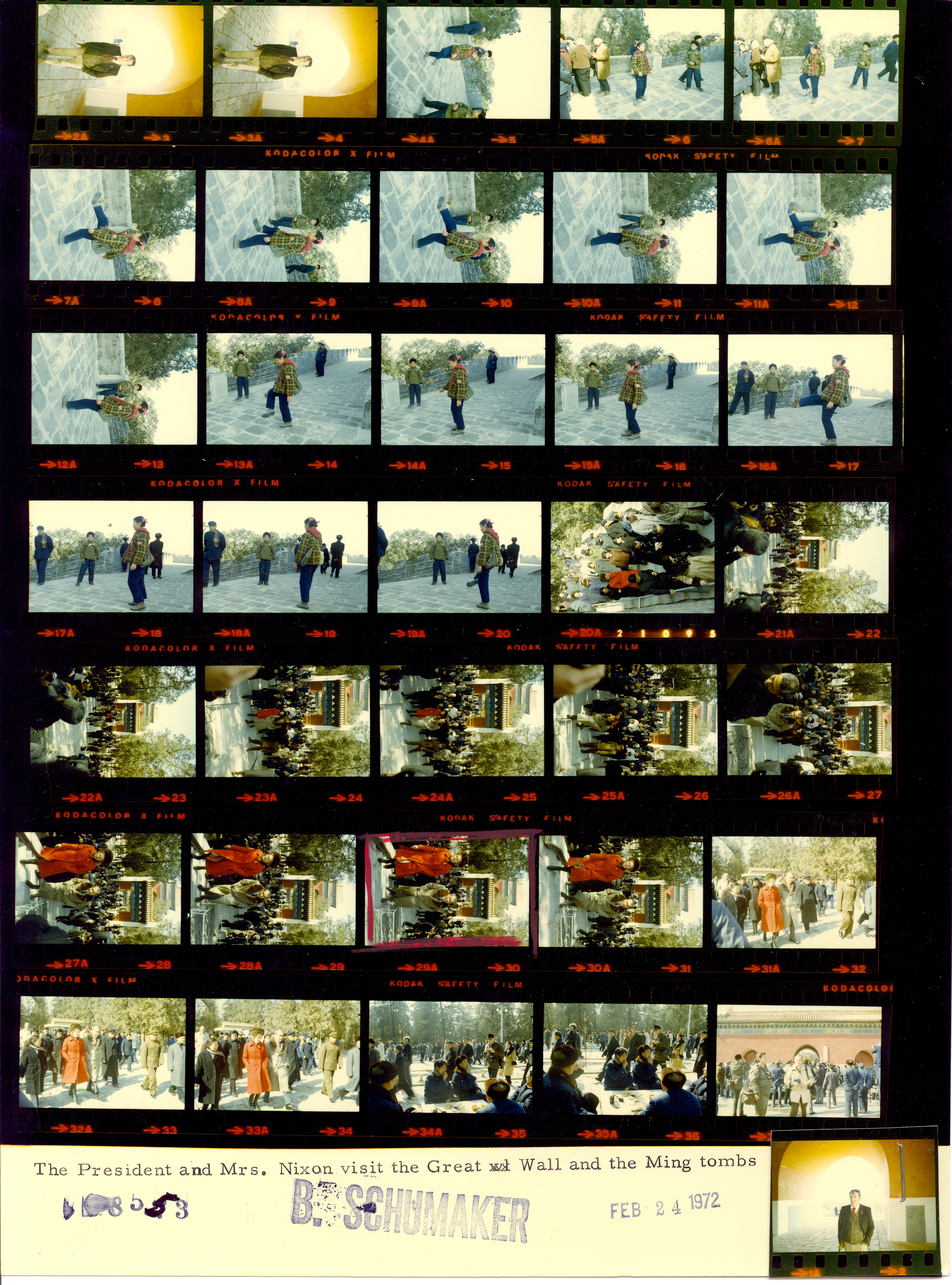 - Frame(s): WHPO-8549-04-05, An unidentified American photographer (possibly Byron Schumacker taken by Oliver Atkins) at the Great Wall. 2/24/1972, Peking, China Ba Da Ling portion, Great Wall of China. President Nixon, Pat Nixon, William Rogers, Chinese officials, American officials, unidentified photographer.