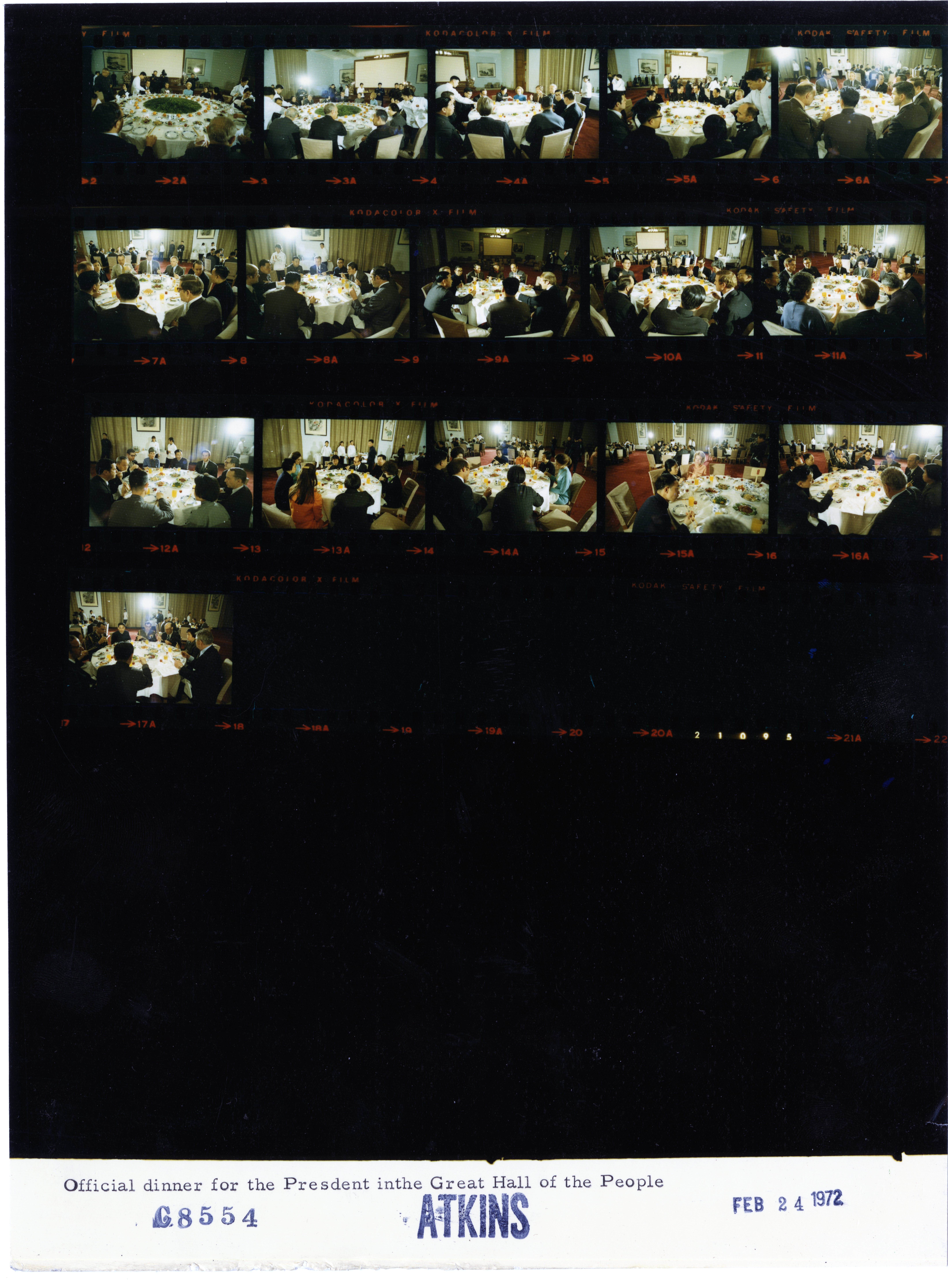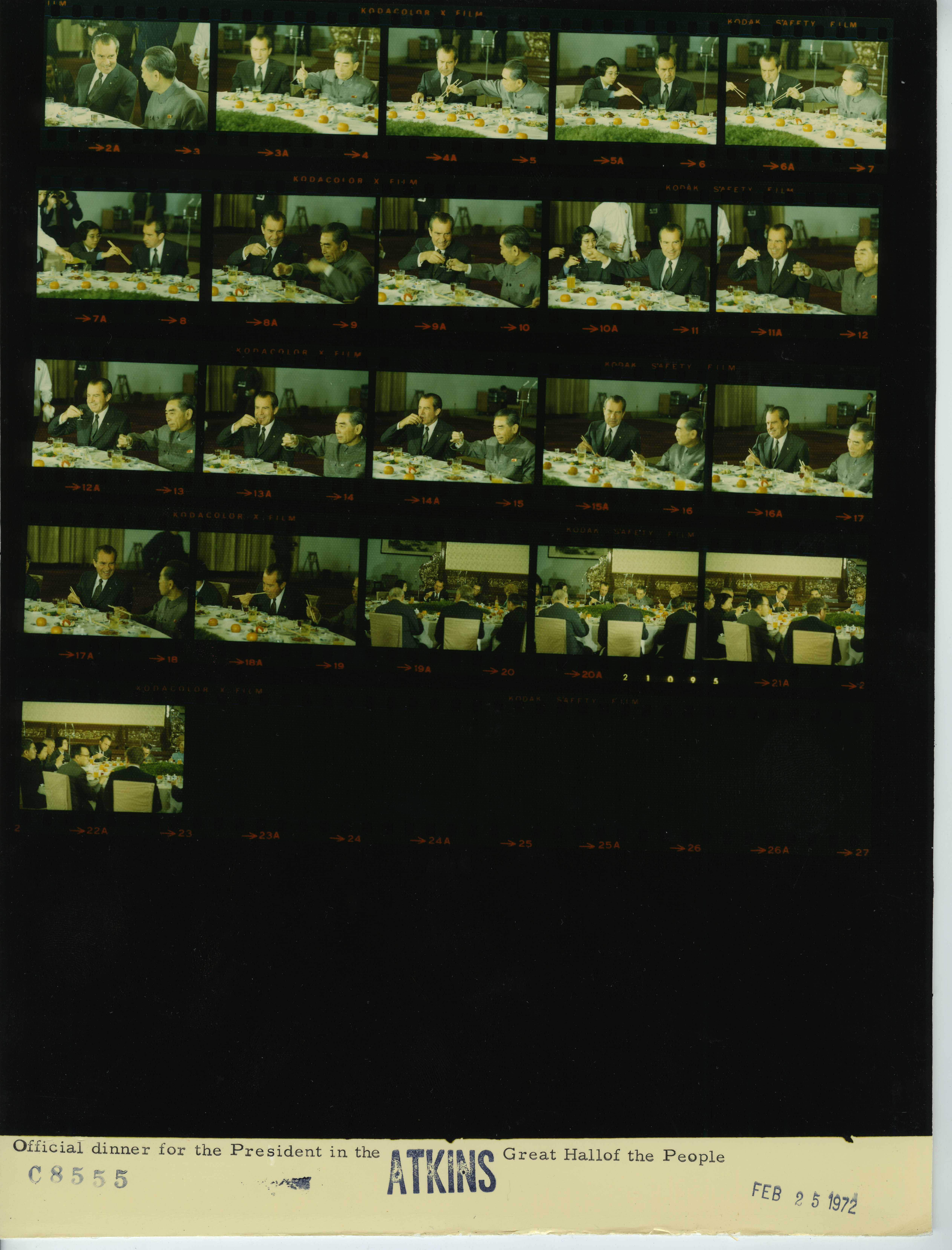 - Frame(s): WHPO-8555-02A-22A, President Nixon and Chou En-Lai eating and making a toast during a Peking duck dinner state dinner banquet. 2/24/1972, Peking, China Unidentified room, Great Hall of the People. President Nixon, Pat Nixon, Chou En-Lai, American officials and staff, Chinese officials.