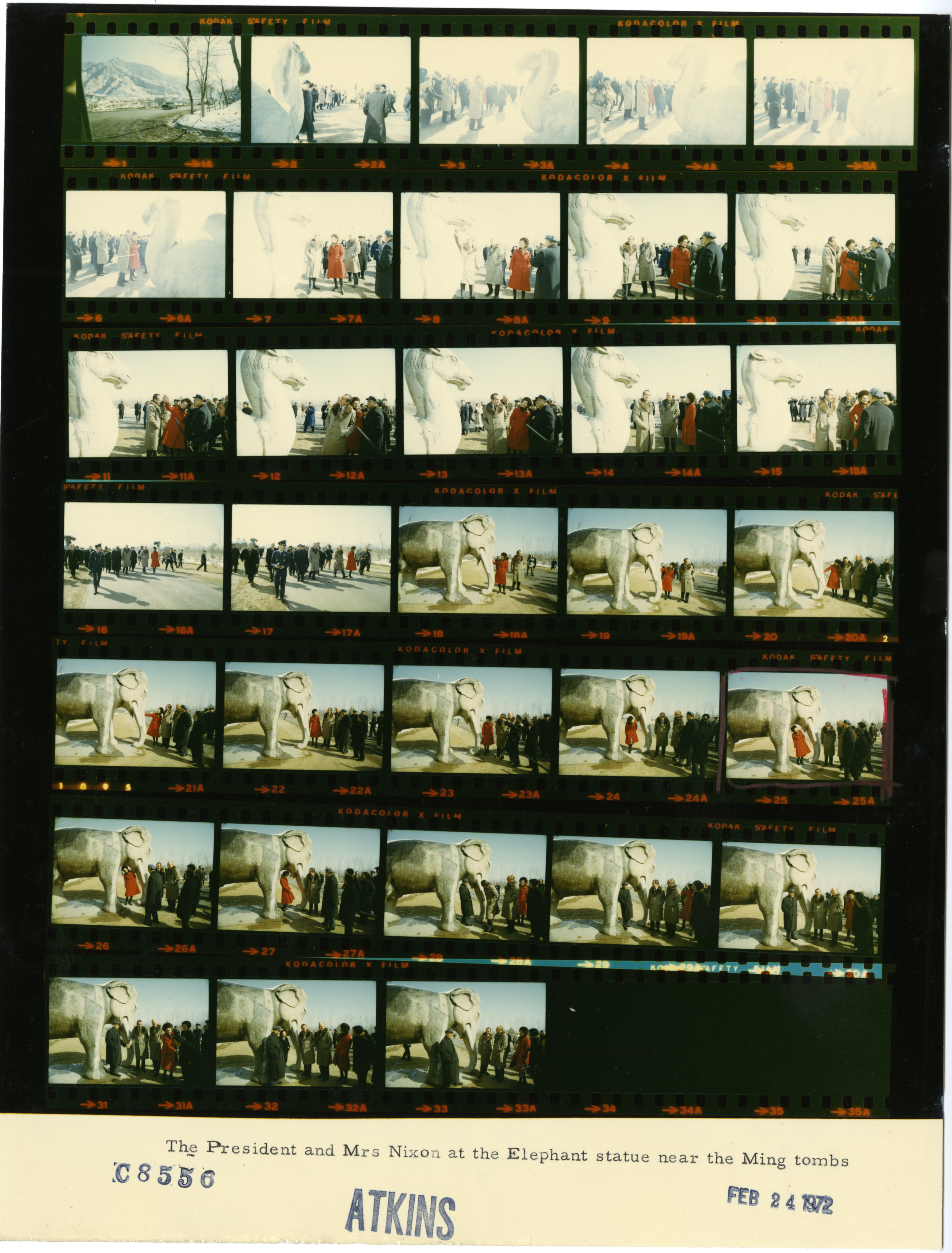 - Frame(s): WHPO-8552-03-04, President Nixon standing in front of a stone elephant sculpture. 2/24/1972, Peking, China Ming Tombs area. President Nixon, Pat Nixon, officials, children, adults, unidentified staff members.
