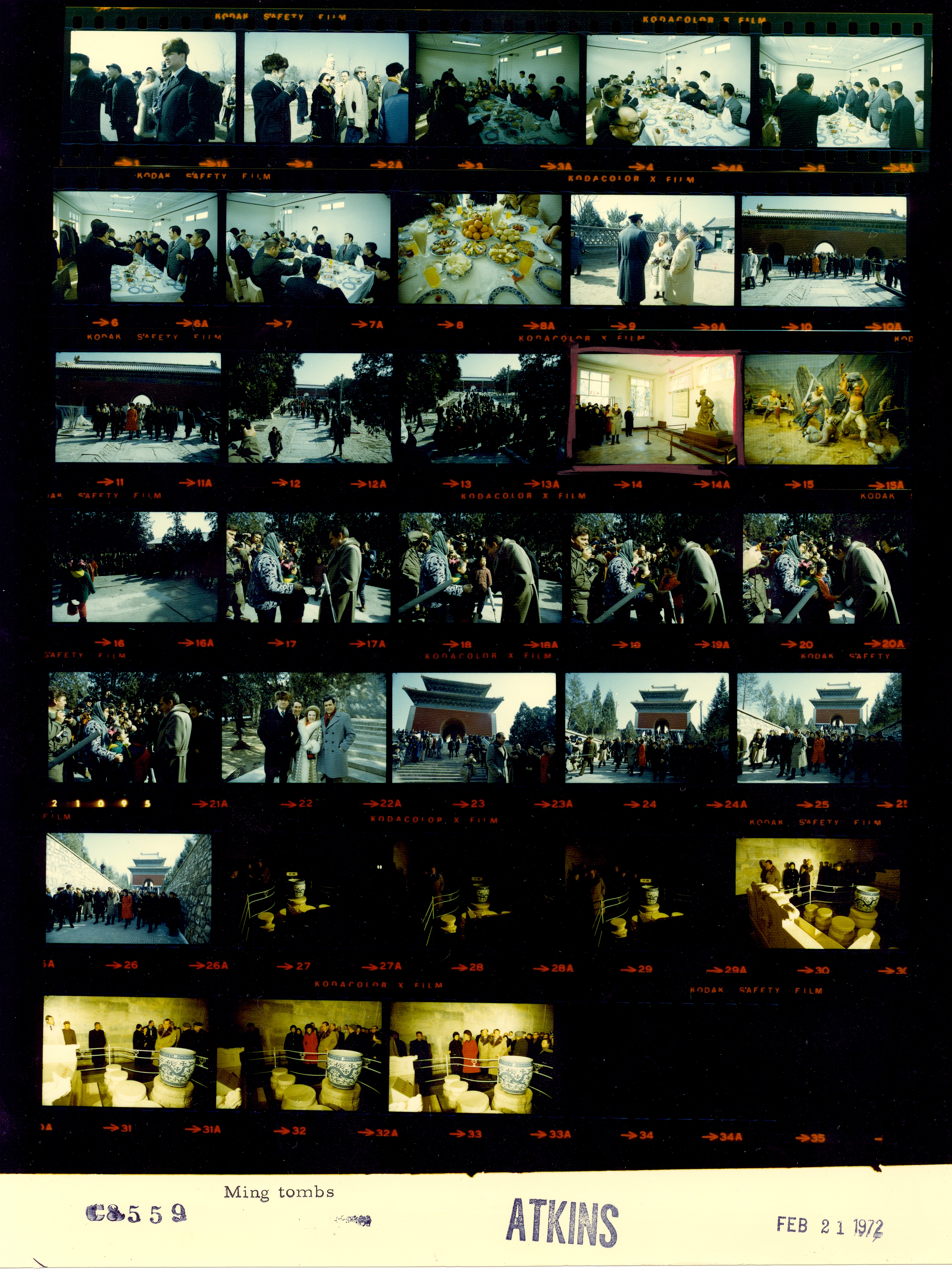 - Frame(s): WHPO-8572-05A-06A, 14A-18A, 24-26, Nixon, Pat Nixon, and entourage touring the Ming Tombs complex. 2/24/1972, Peking, China Ming Tombs. President Nixon, Pat Nixon, William Rogers, Chinese officials, entourage, school children.