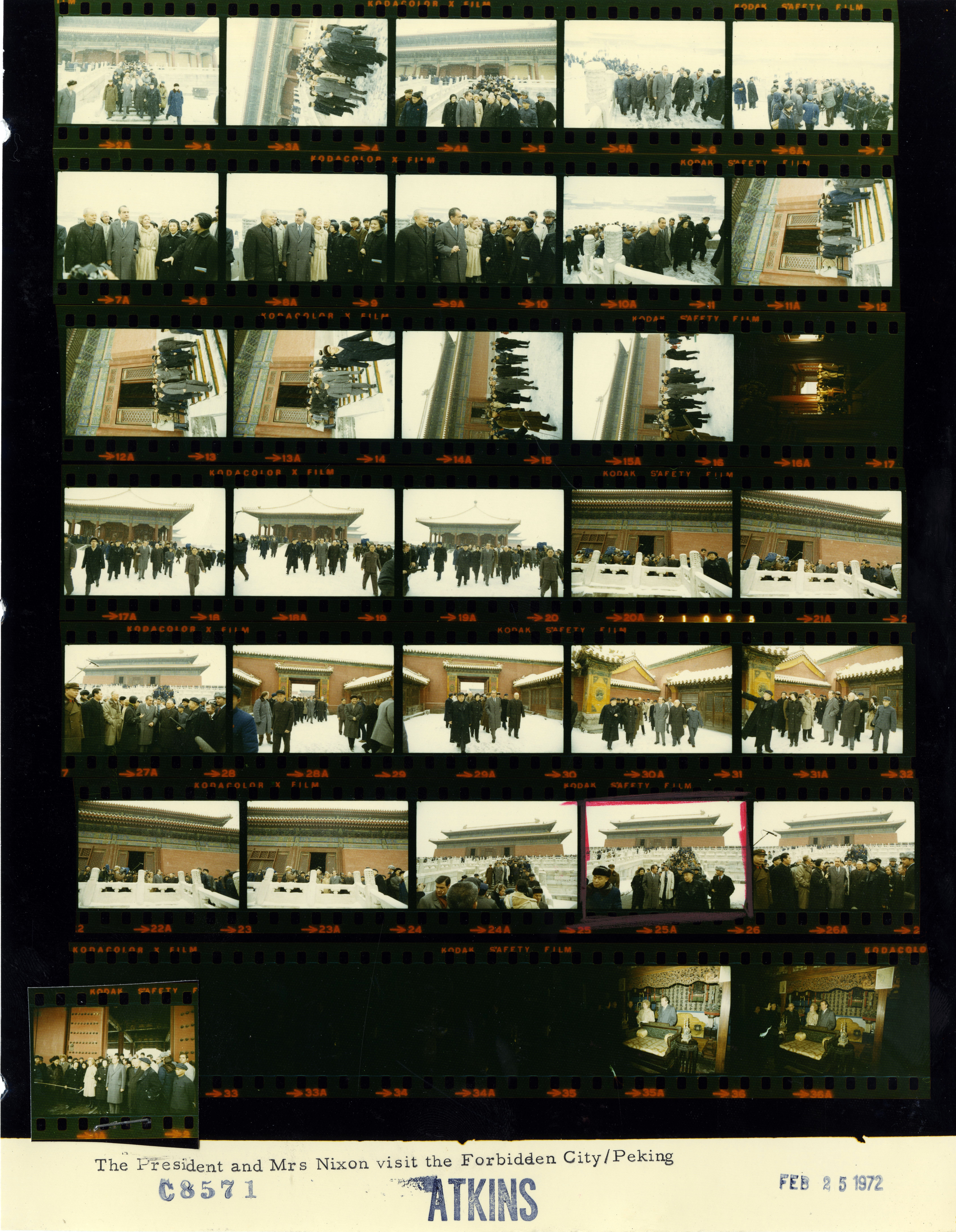 - Frame(s): WHPO-8567-27A-36A, President Nixon and his party touring the Forbidden City grounds. 2/25/1972, Peking, China Forbidden City. President Nixon, Pat Nixon, staff members, Chinese officials.