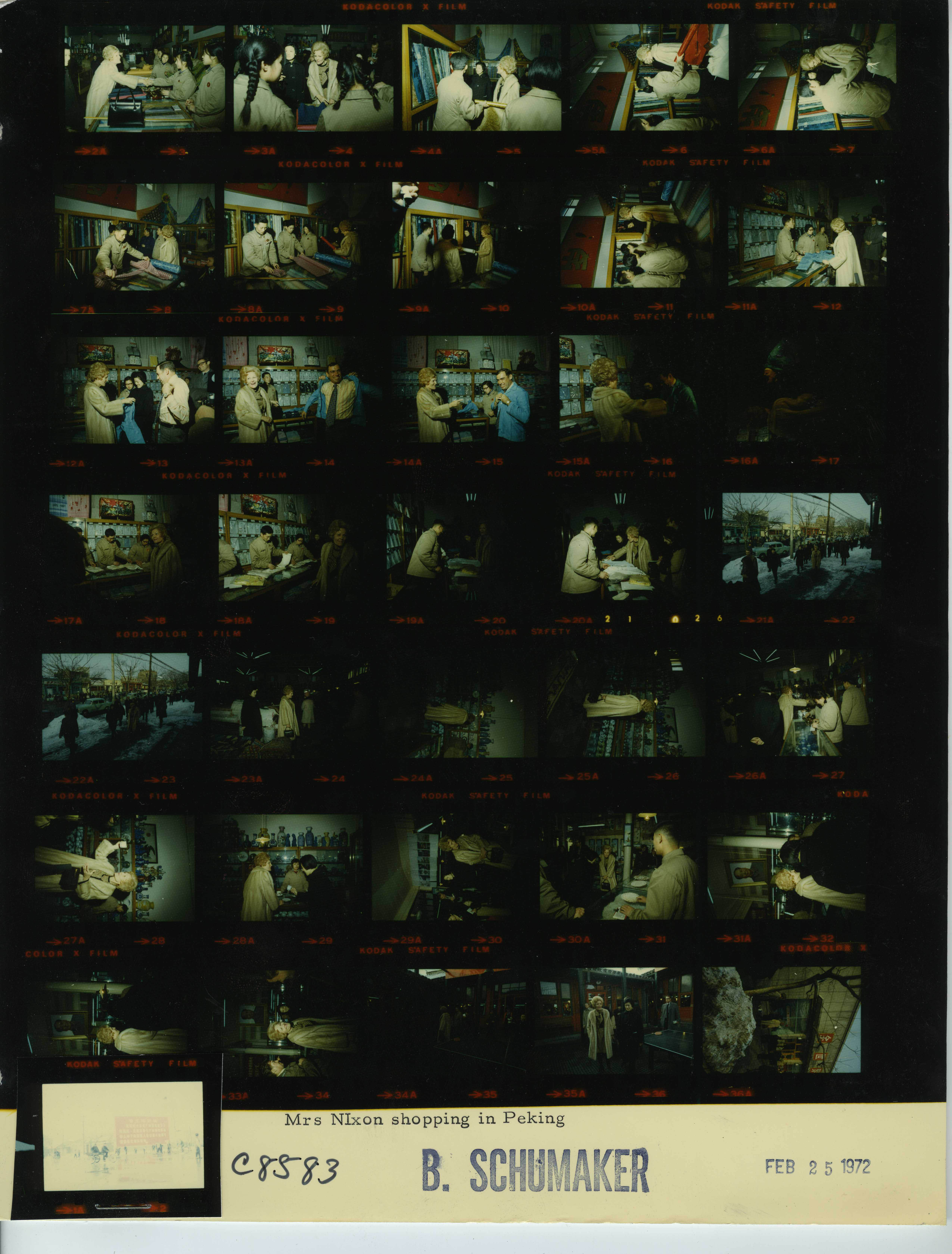 - Frame(s): WHPO-8583-11A-12A, 17A-20A, Pat Nixon shopping for clothing in a Peking store. 2/25/1972, Peking, China clothing store. Pat Nixon, staff, merchants, unidentified persons.