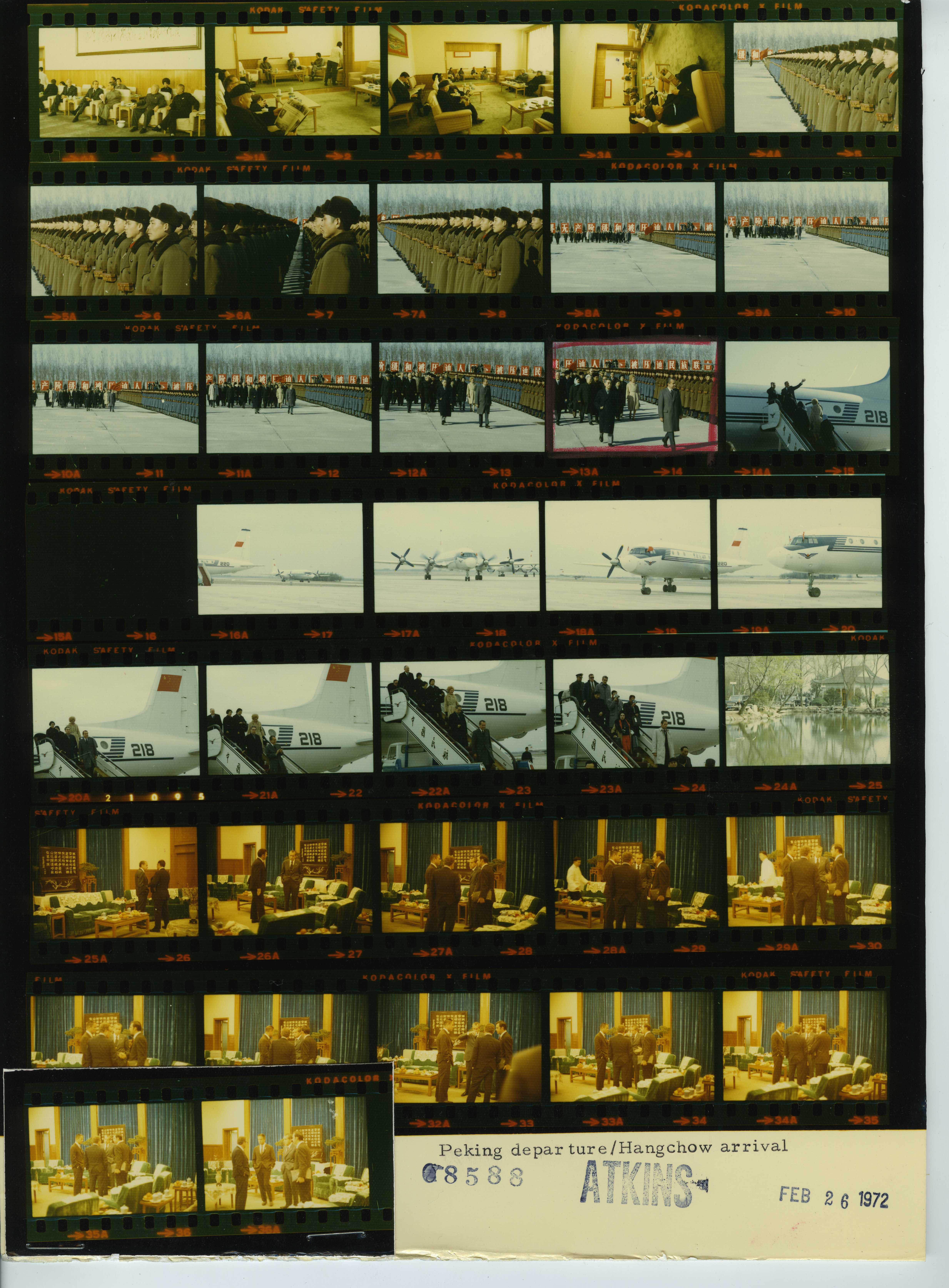 - Frame(s): WHPO-8588-00A-03A, President Nixon and others in a Peking airport terminal room. 2/26/1972, Peking, China Capital Airport. President Nixon, Pat Nixon, Chou En-Lai, military personnel, officials, William Rogers, Haldeman, Buchanan, Kissinger.