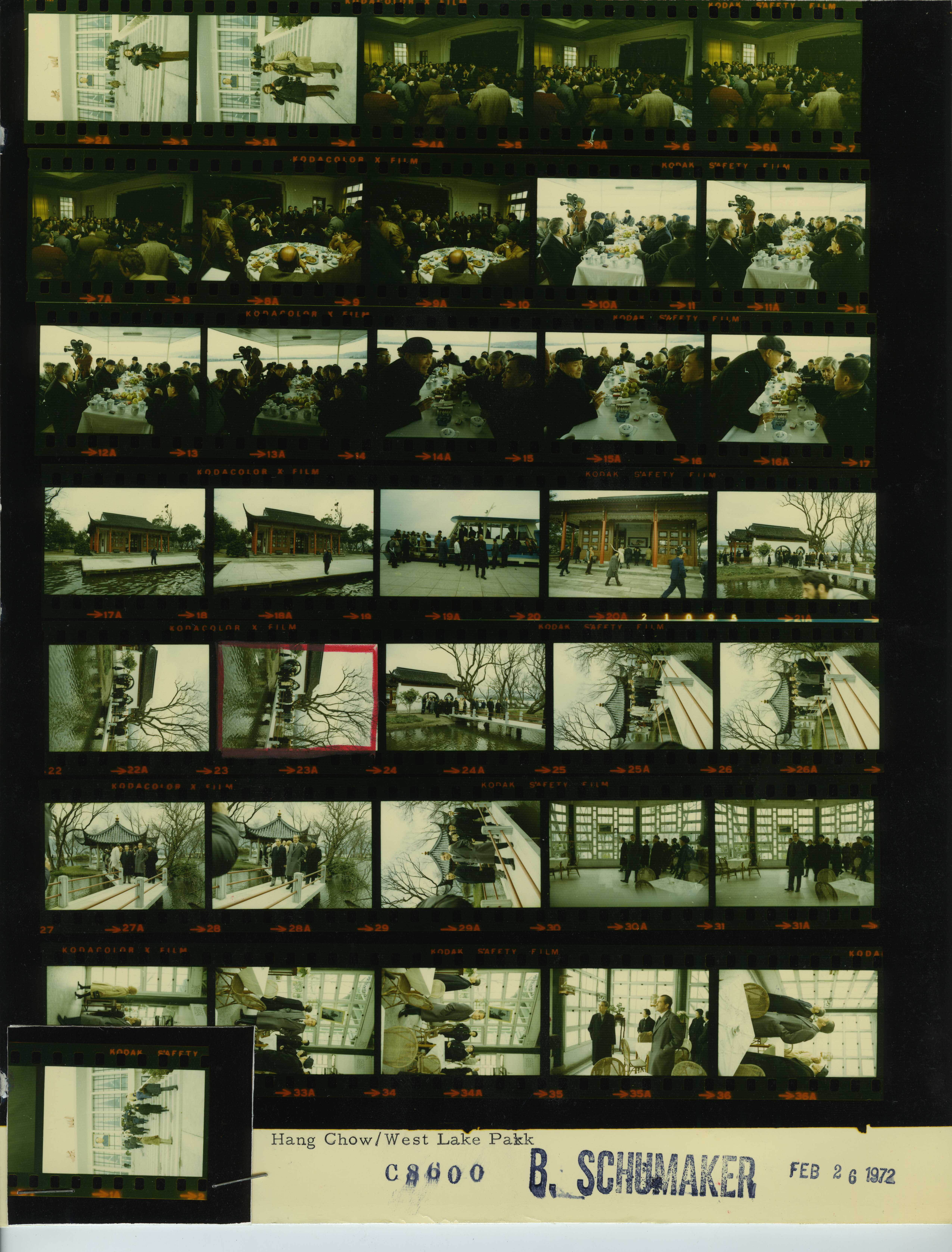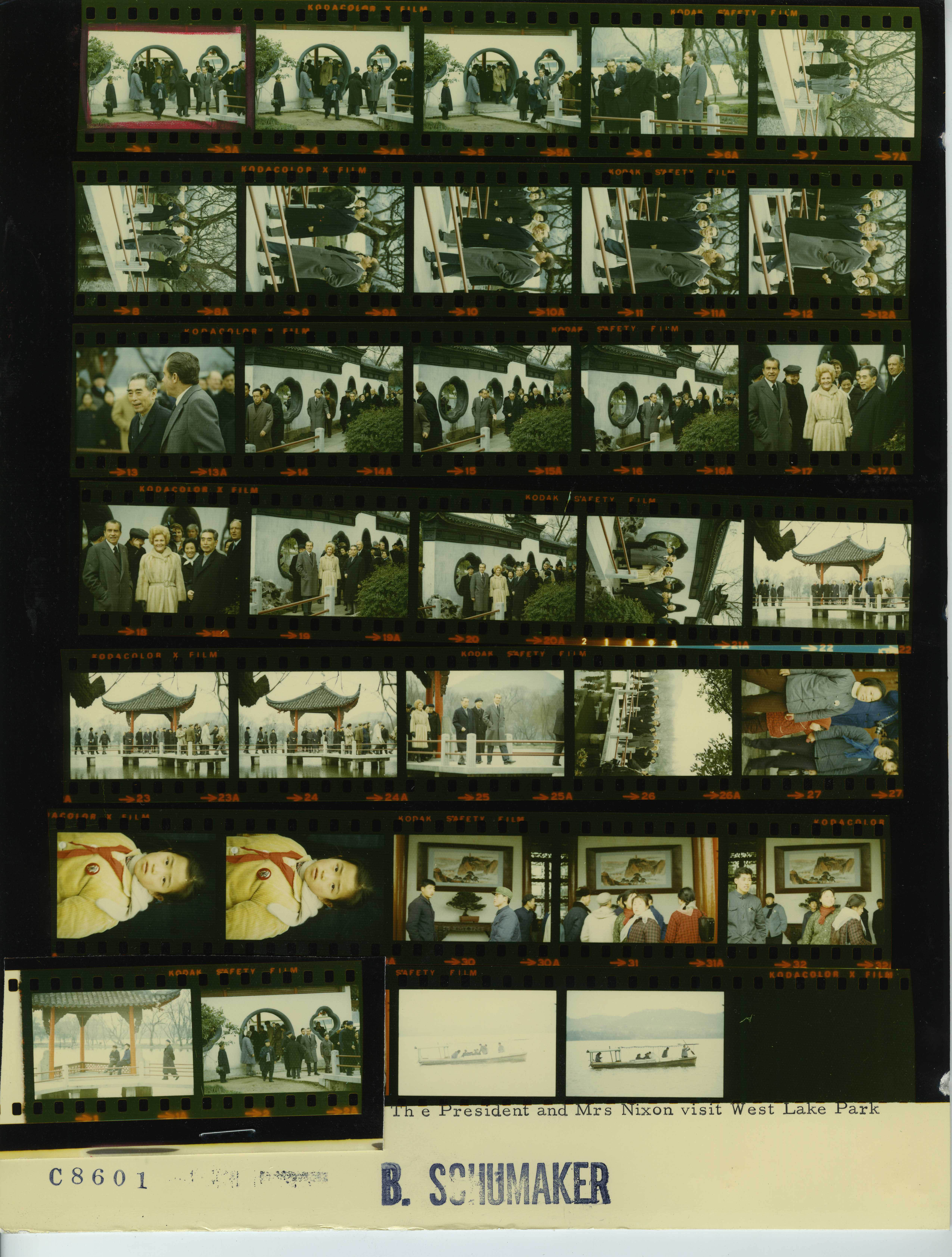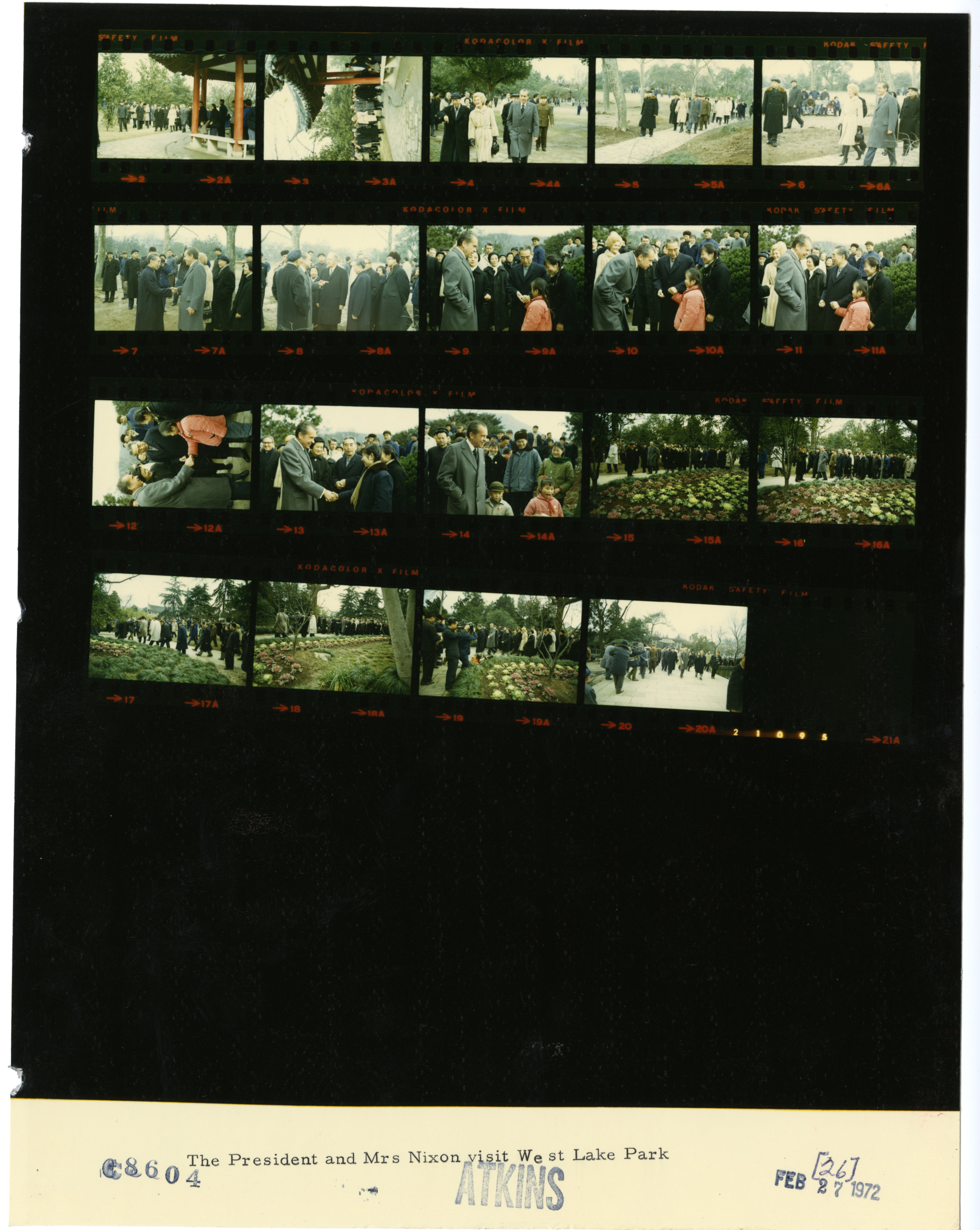 - Frame(s): WHPO-8600-21A-29A, President Nixon and his party touring Hua Kong (Hang Chou West Lake) Park. 2/26/1972, Hang-chou, China Hua Kong Park. President Nixon, Pat Nixon, Chou En-Lai, officials, press corps members, staff, unidentified persons.