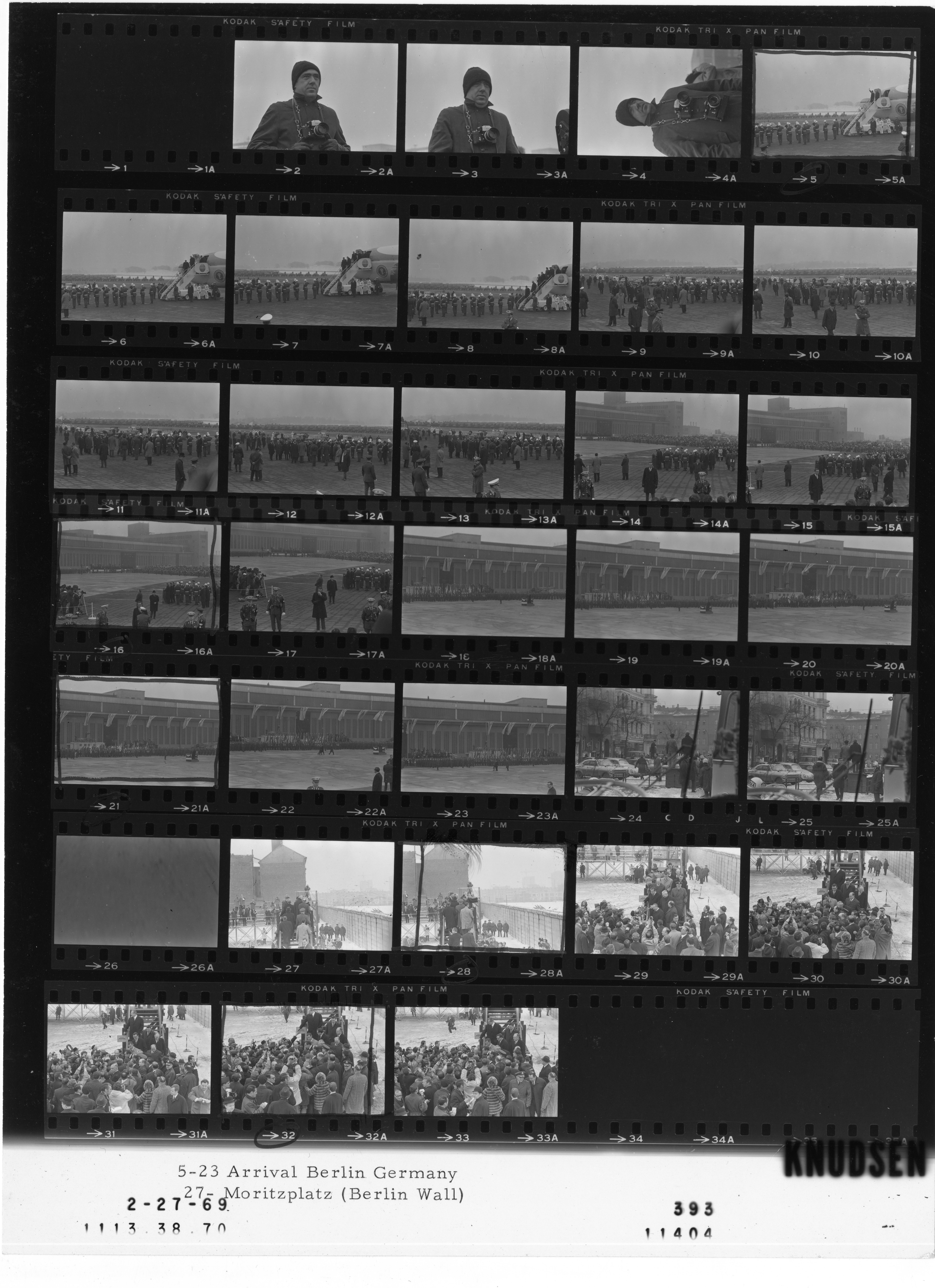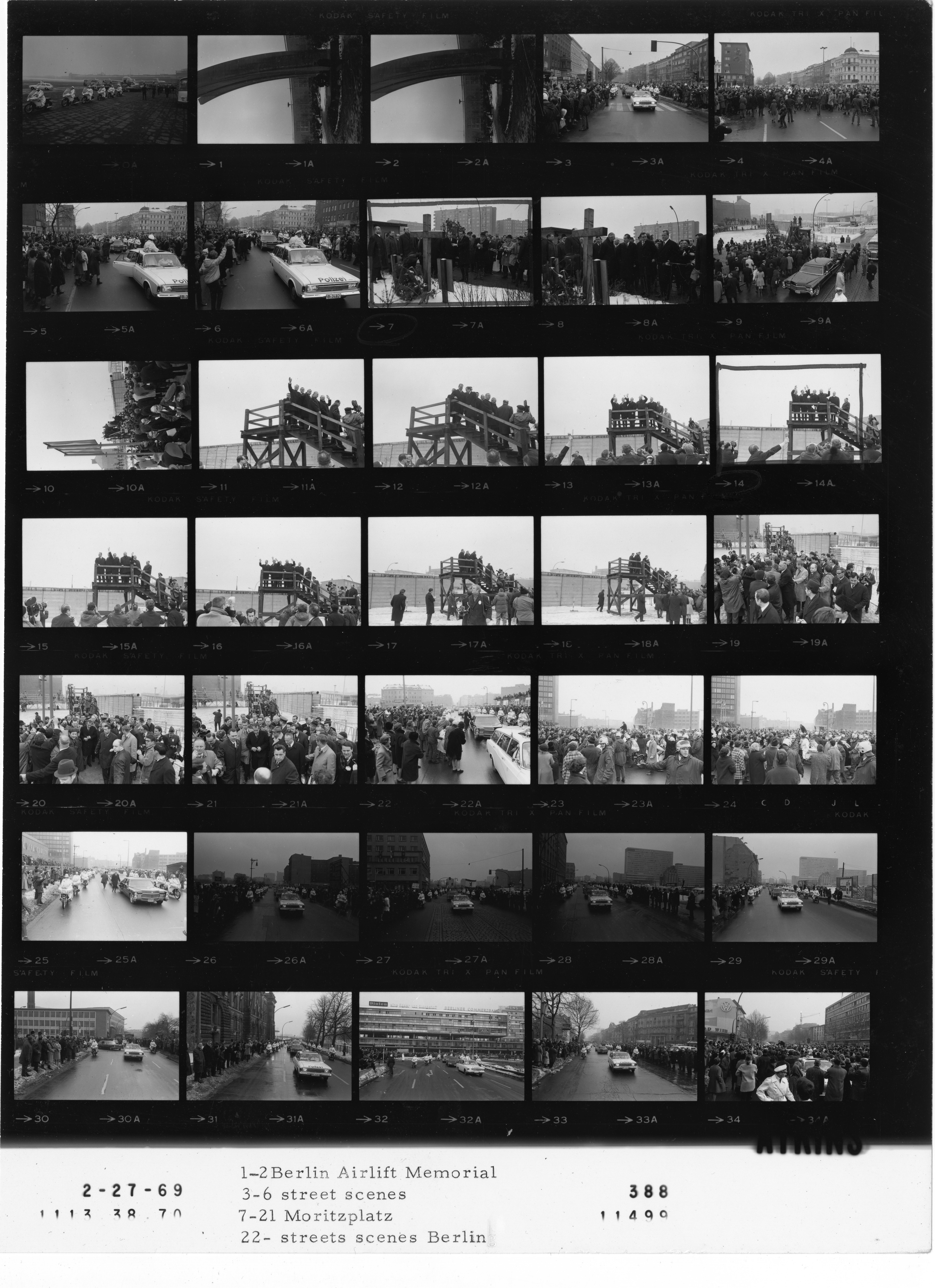 • Frame(s): WHPO-0388-19-24, President Nixon leaving Berlin Wall area viewing stand. 2/27/1969, Berlin, West Germany Moritzplatz and city streets. President Nixon, Kurt Kiesinger, Willy Brandt, unidentified officials, crowd.