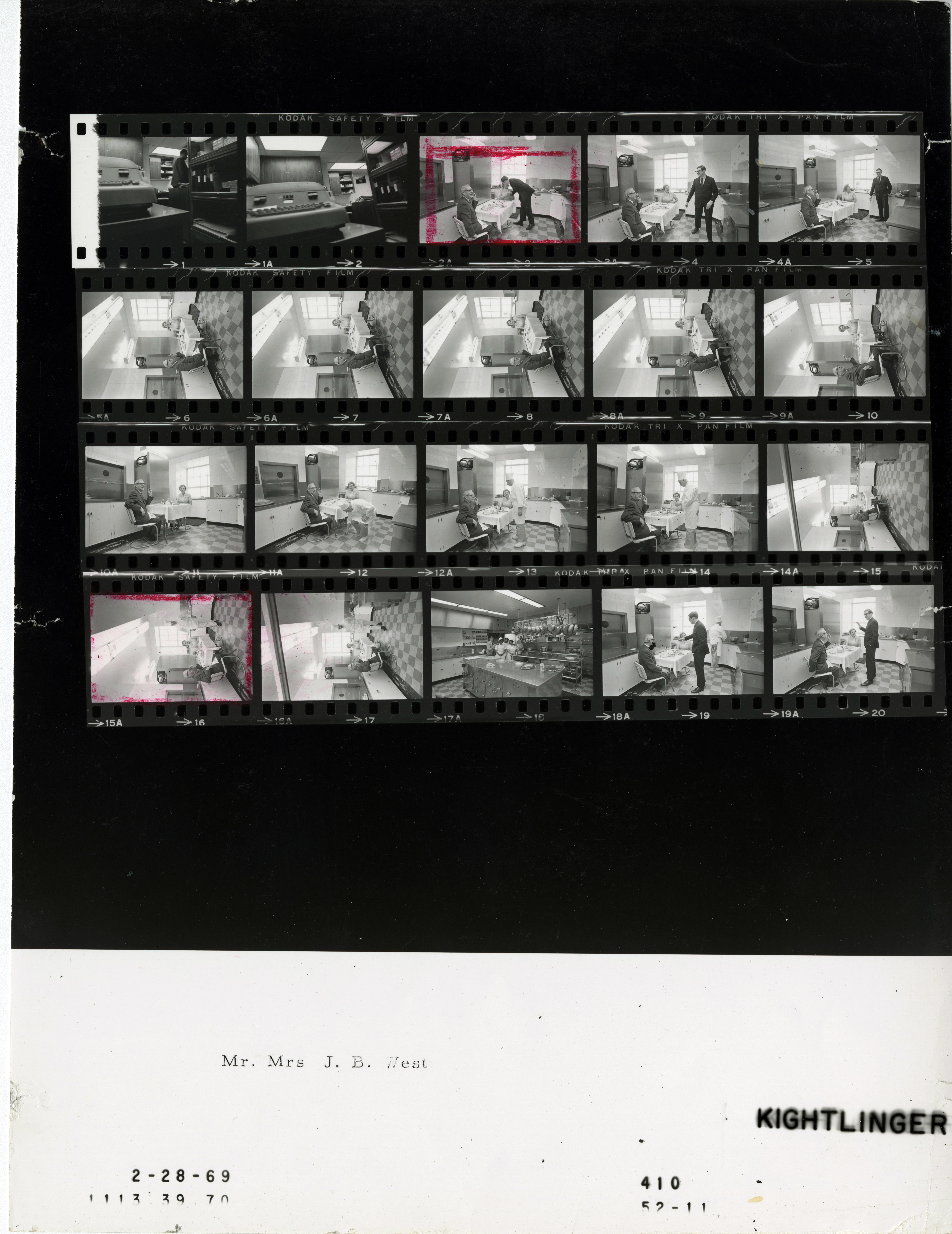 - Frame(s): WHPO-0409-, Mr. & Mrs. J. B. West and White House chefs at a small table in a small kitchen. 2/28/1969, Washington, D.C. White House. Mr. J. B. West, Mrs. J. B. West, chefs.