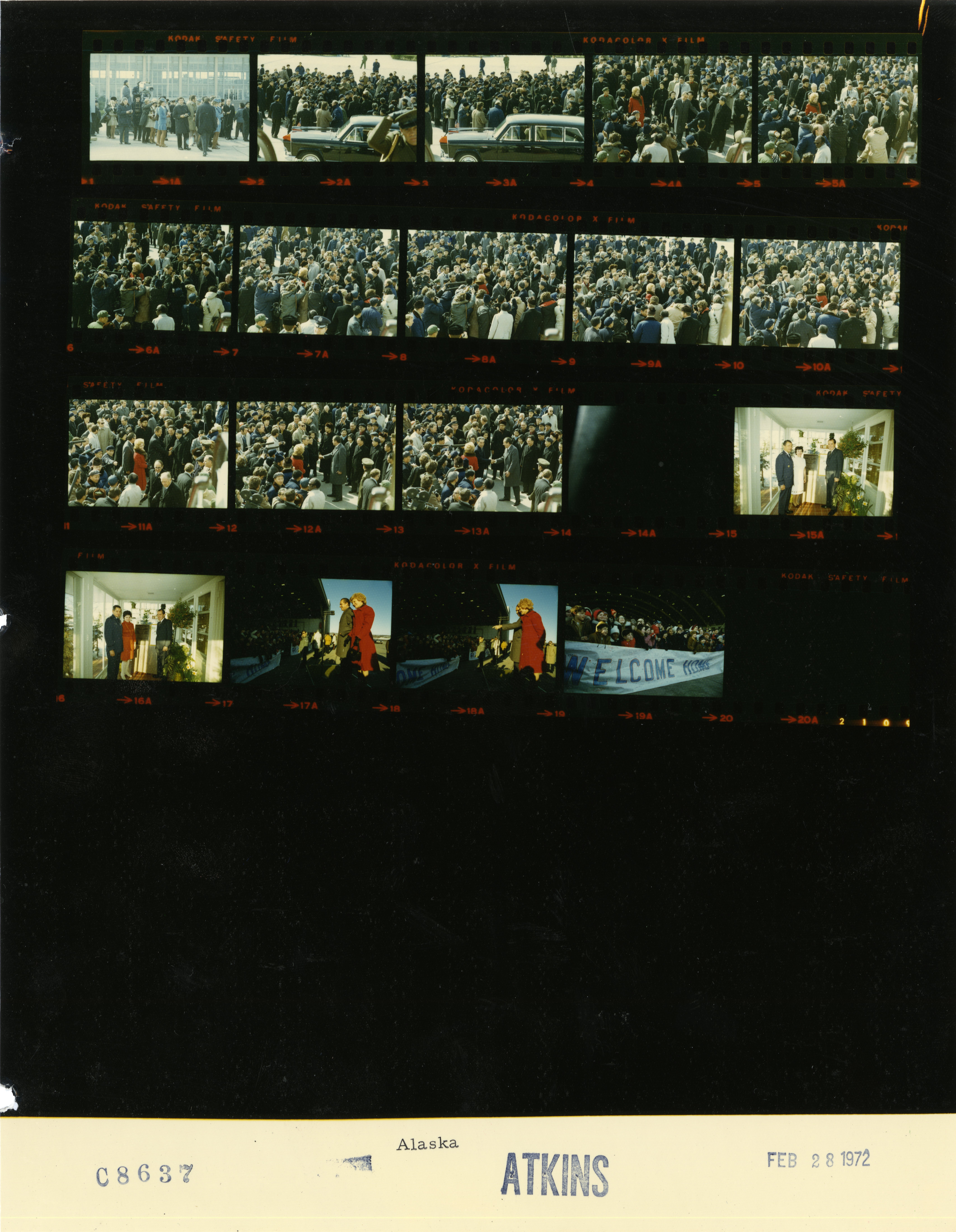 - Frame(s): WHPO-8637-19A, Crowd welcoming President Nixon back to the United States. 2/28/1972, Elmendorf AFB, Alaska airport. President Nixon, Pat Nixon, unidentified couples, crowd.