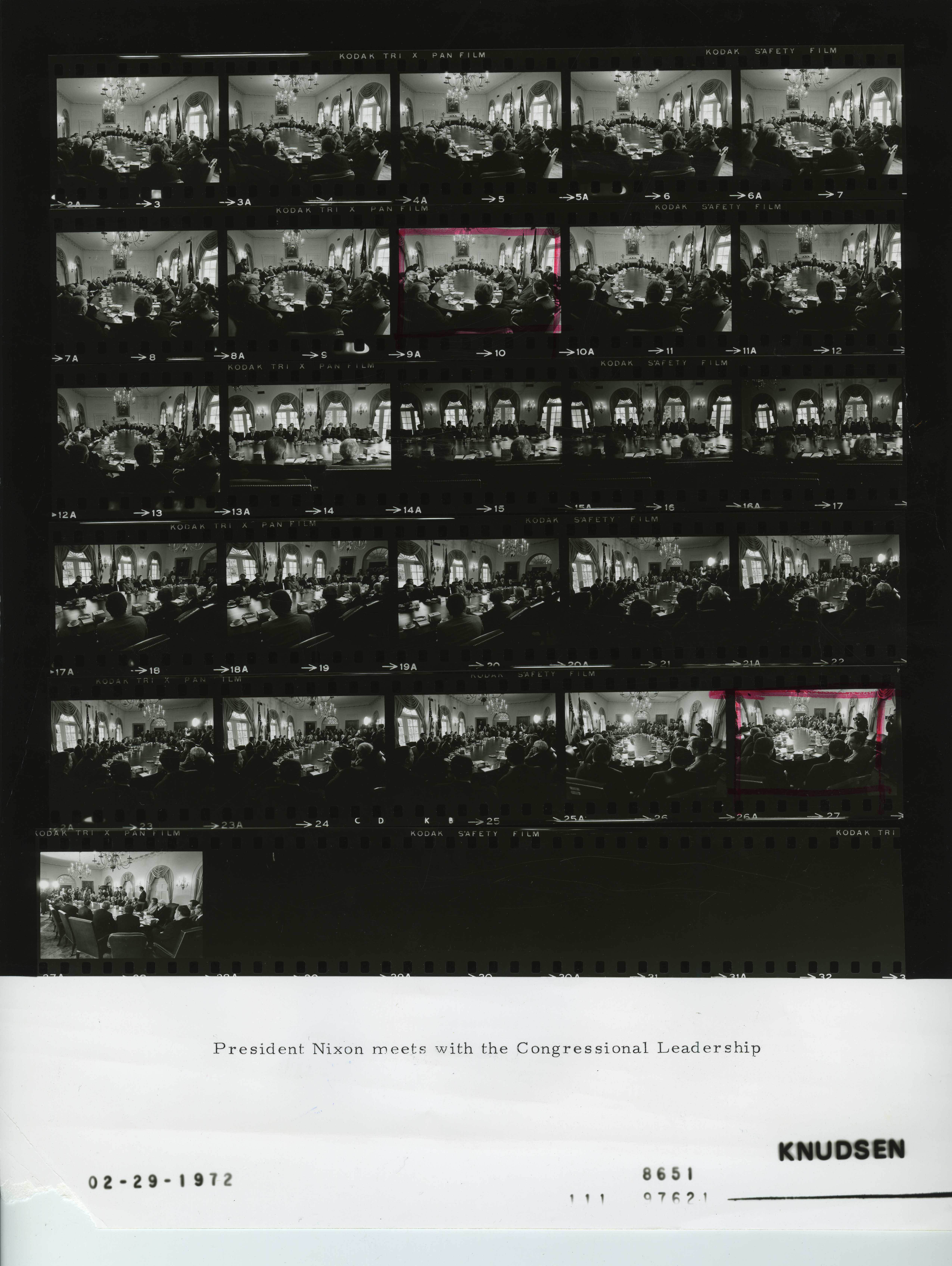 - Frame(s): WHPO-8651-02A-27A, President Nixon describing his China trip to bipartisan Congressional leaders. 2/29/1972, Washington, D.C. White House, Cabinet Room. President Nixon, Congressional leaders, Henry Kissinger.
