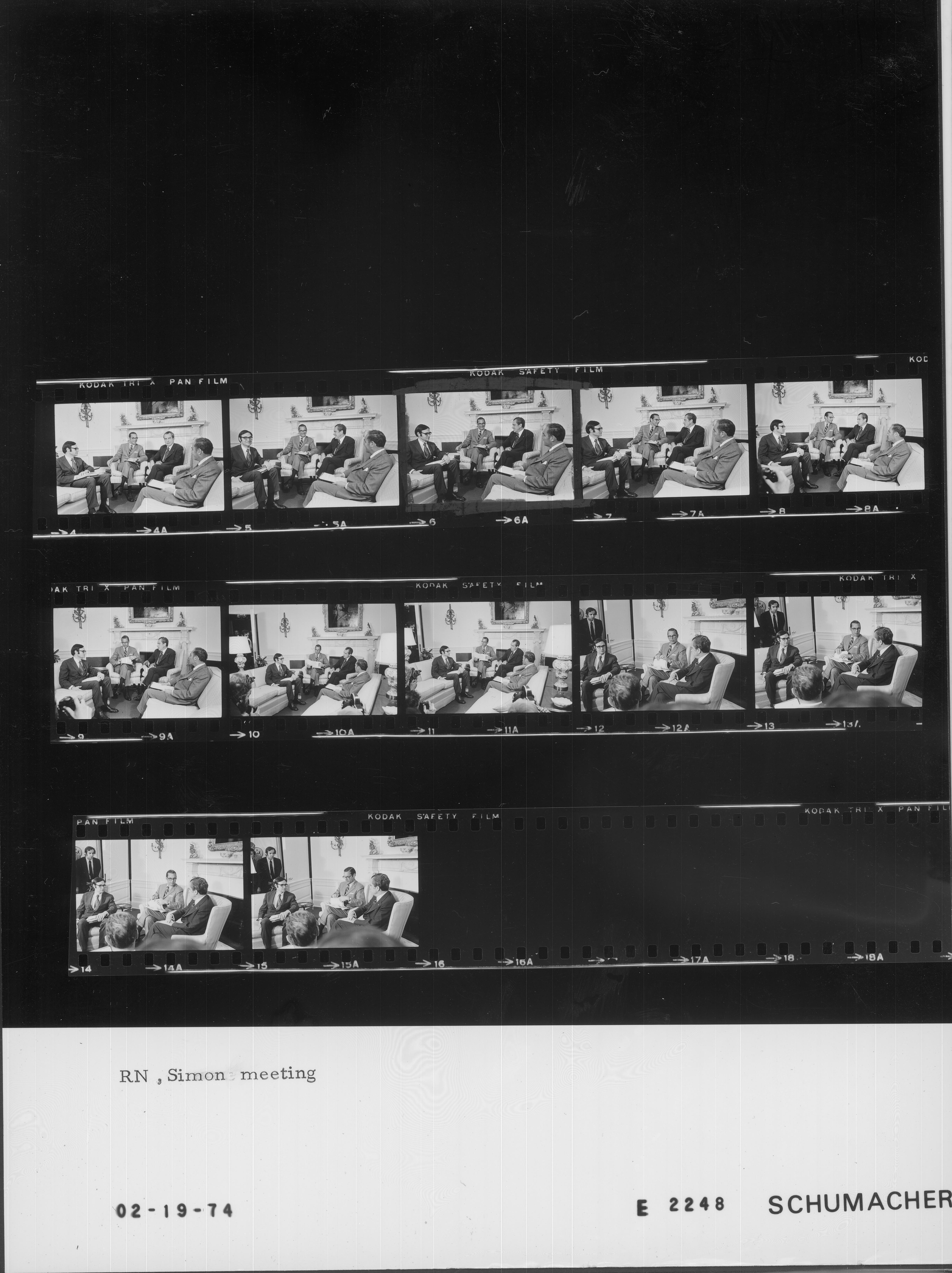 - Frame(s): WHPO-E2196-, President Nixon seated informally in the Oval Office during a meeting to discuss preparations and prospects for the Washington Energy Conference with Henry Kissinger, George Shultz, William Simon, and Major General Brent Scowcroft. 2/9/1974, Washington, D.C. White House, Oval Office. President Nixon, Henry A. Kissinger, George P. Shultz, William E. Simon, and Major General Brent G. Scowcroft.