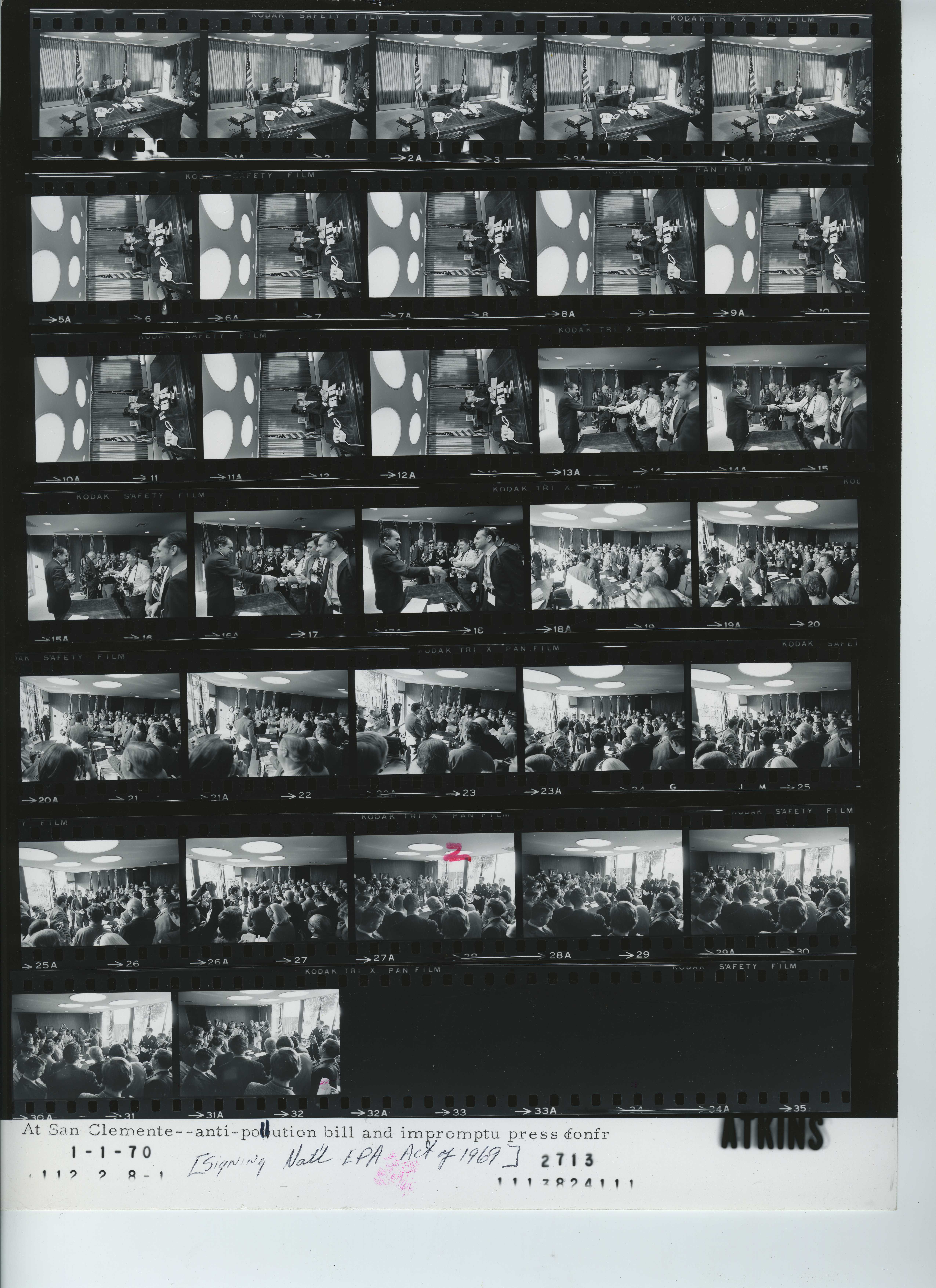 - Frame(s): WHPO-2713-12-31, President Nixon speaking with the press after signing the EPA - National Environmental Policy Act of 1969 at La Casa Pacifica, The Western White House in San Clemente, CA. (S. 1075) is Public Law 91-190 (83 Stat. 852). 1/1/1970, San Clemente, California The Western White House. President Nixon, members of the press corps, reporters, Helen Thomas, photographers.