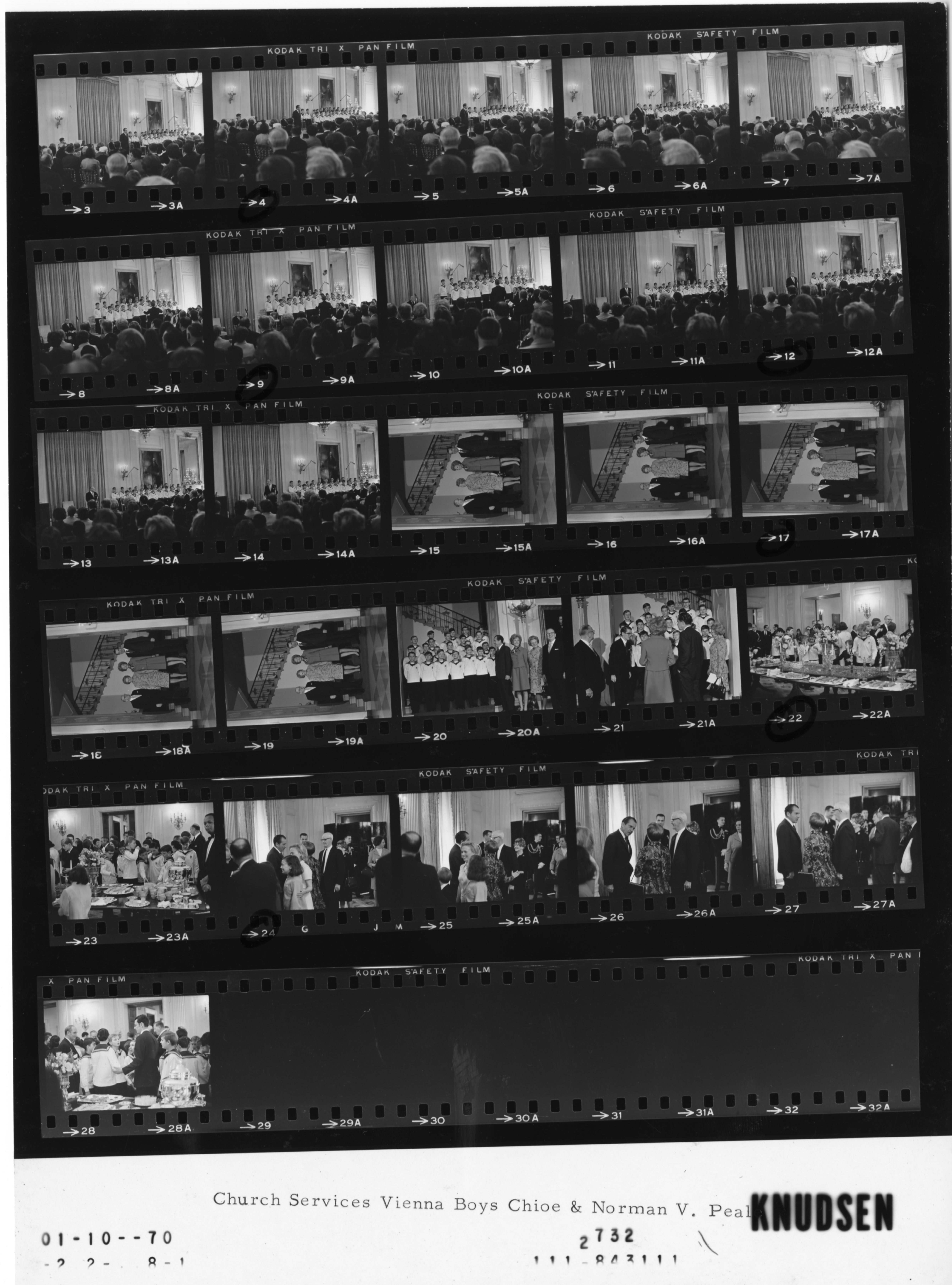 - Frame(s): WHPO-2732-03-14, President Nixon attending a religious worship service in the East Room, featuring the Vienna Boys Choir and Dr. Norman Vincent Peale. 1/11/1970, Washington, D.C. White House. President Nixon, Pat Nixon, Dr. Norman Vincent Peale, Ruth Stafford Peale, the Vienna Boys Choir.