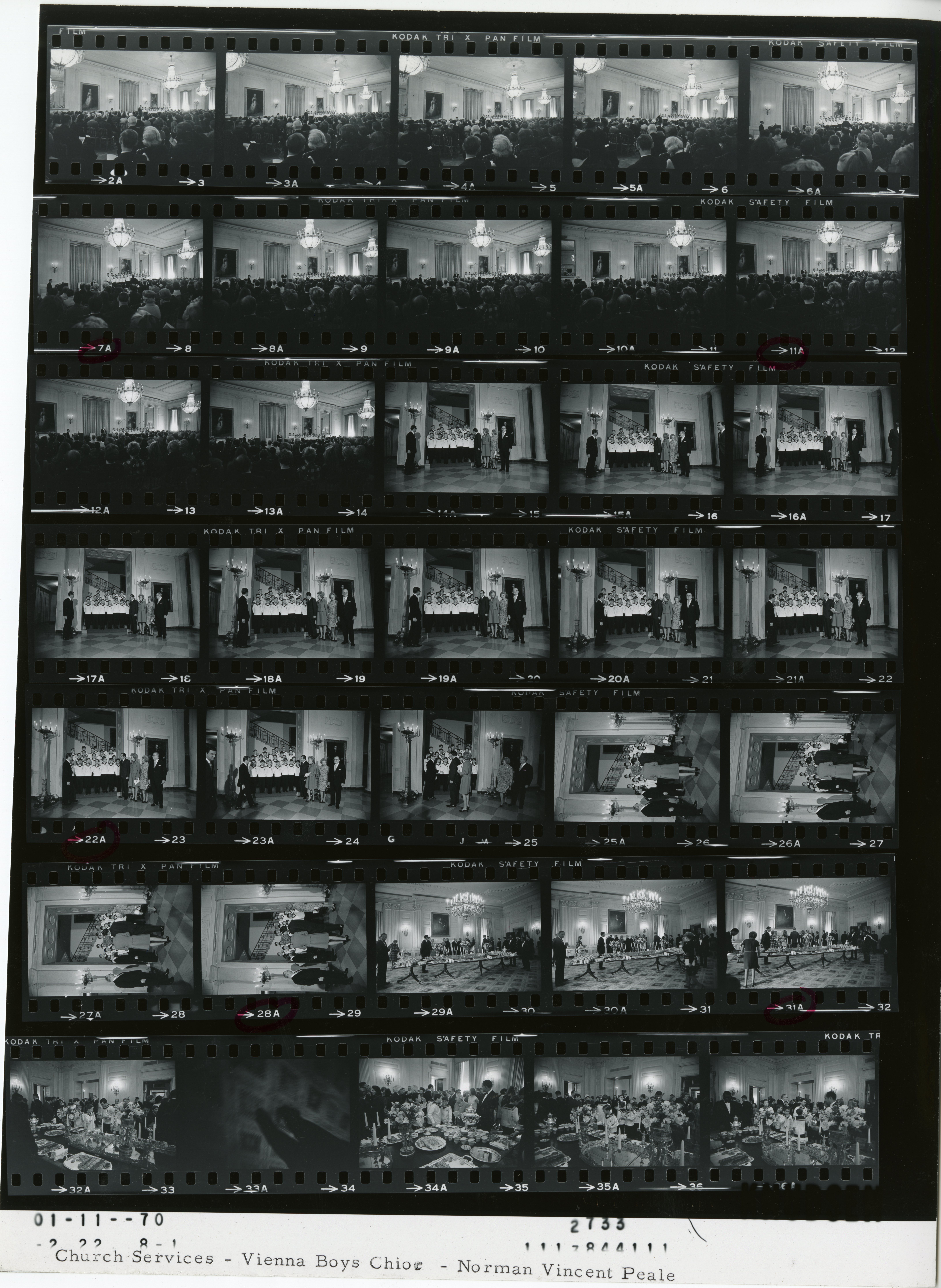 - Frame(s): WHPO-2733-02A-11A, White House worship service with President Nixon in attendance. 1/11/1970, Washington, D.C. White House. President Nixon, Pat Nixon, Dr. Norman Vincent Peale, Ruth Stafford Peale, Vienna Boys Choir, unidentified others.