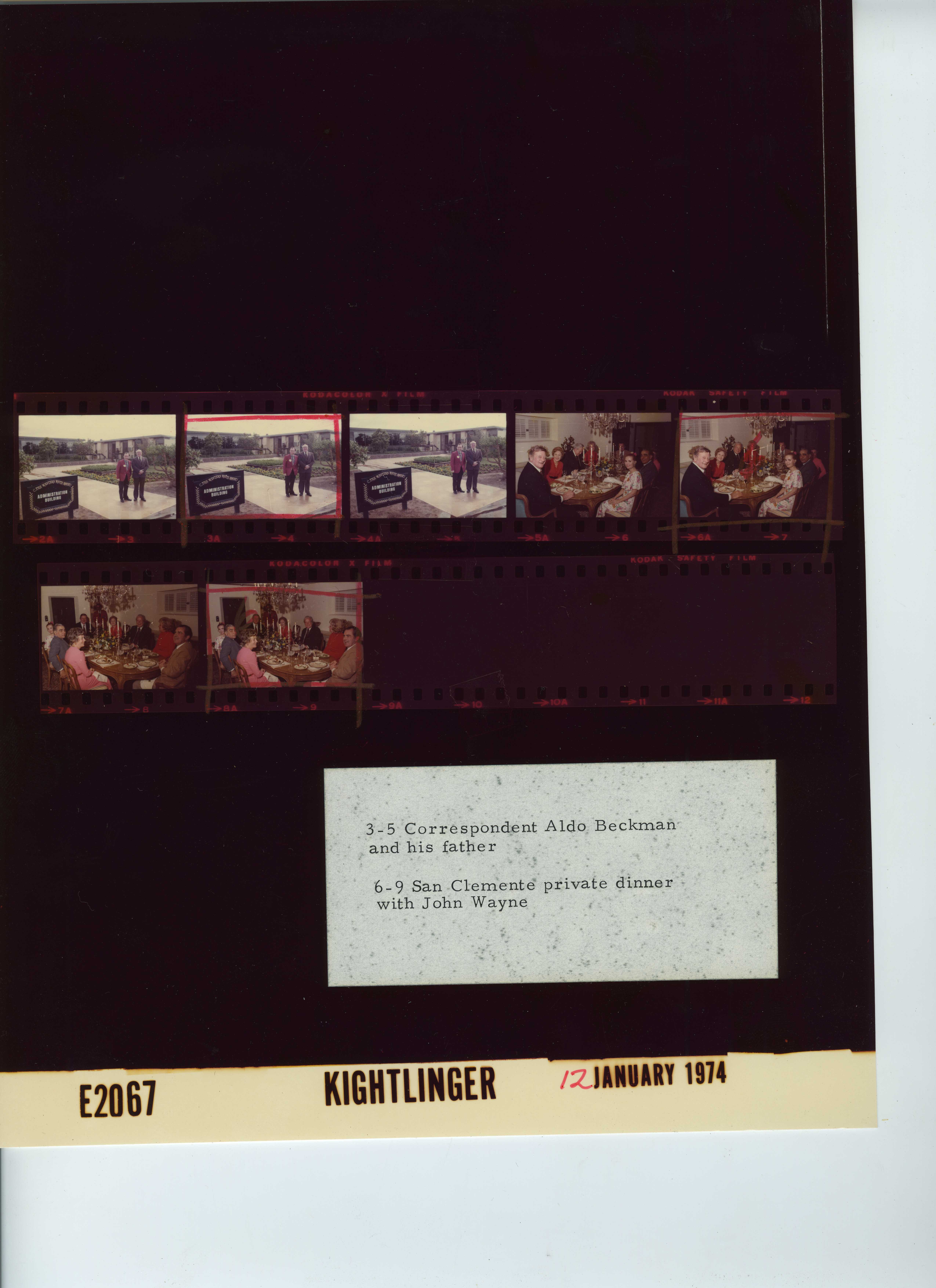 - Frame(s): WHPO-E2067-03-05, White House News Correspondent Aldo Beckman at the Western White House with his father. 1/12/1974, San Clemente, California Western White House Administration Building. Aldo Beckman and his father.