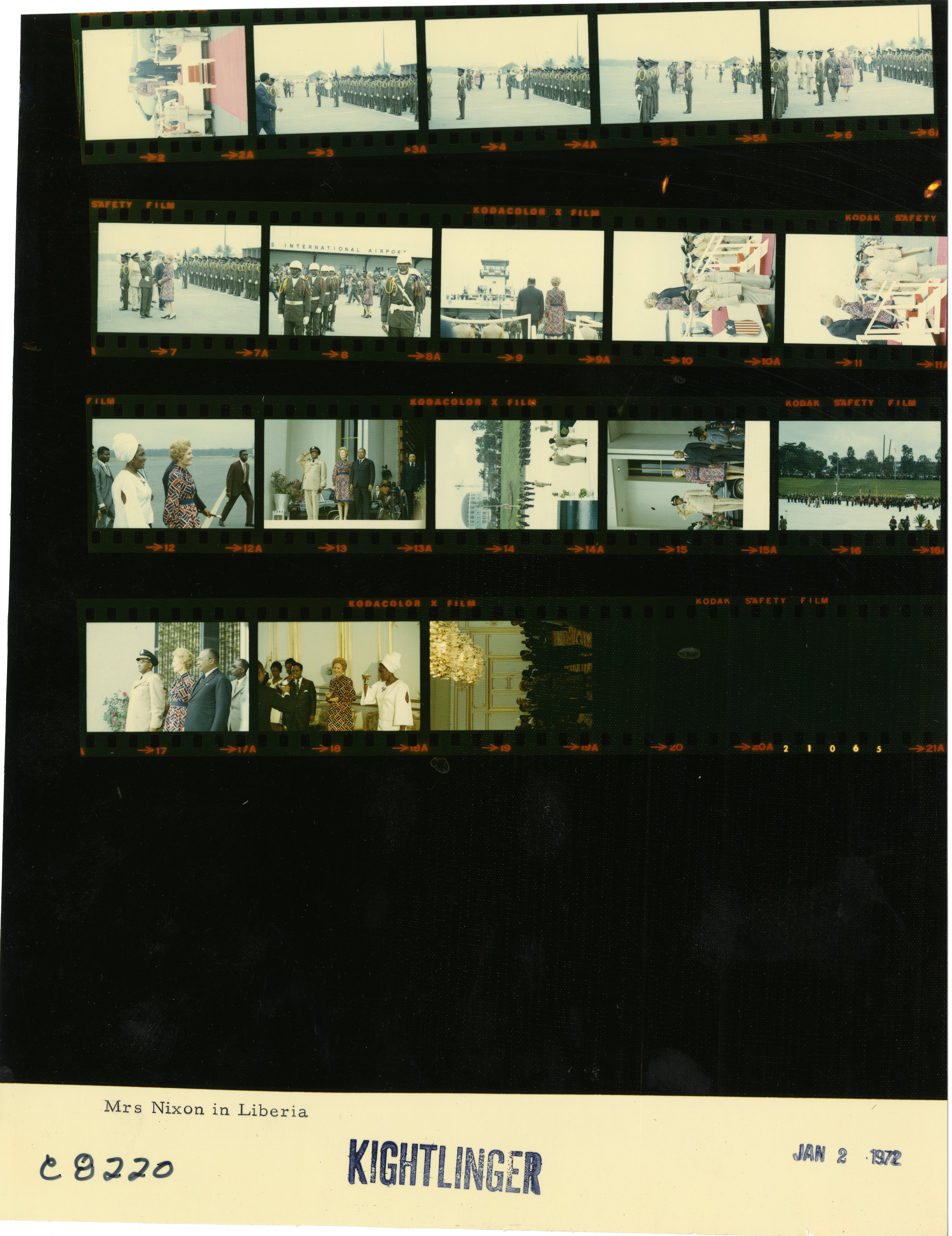 - Frame(s): WHPO-8259-, Pat Nixon in Liberia, Africa. 1/2/1972, Liberia, Africa Liberia, Africa. Pat Nixon, President Tolbert.