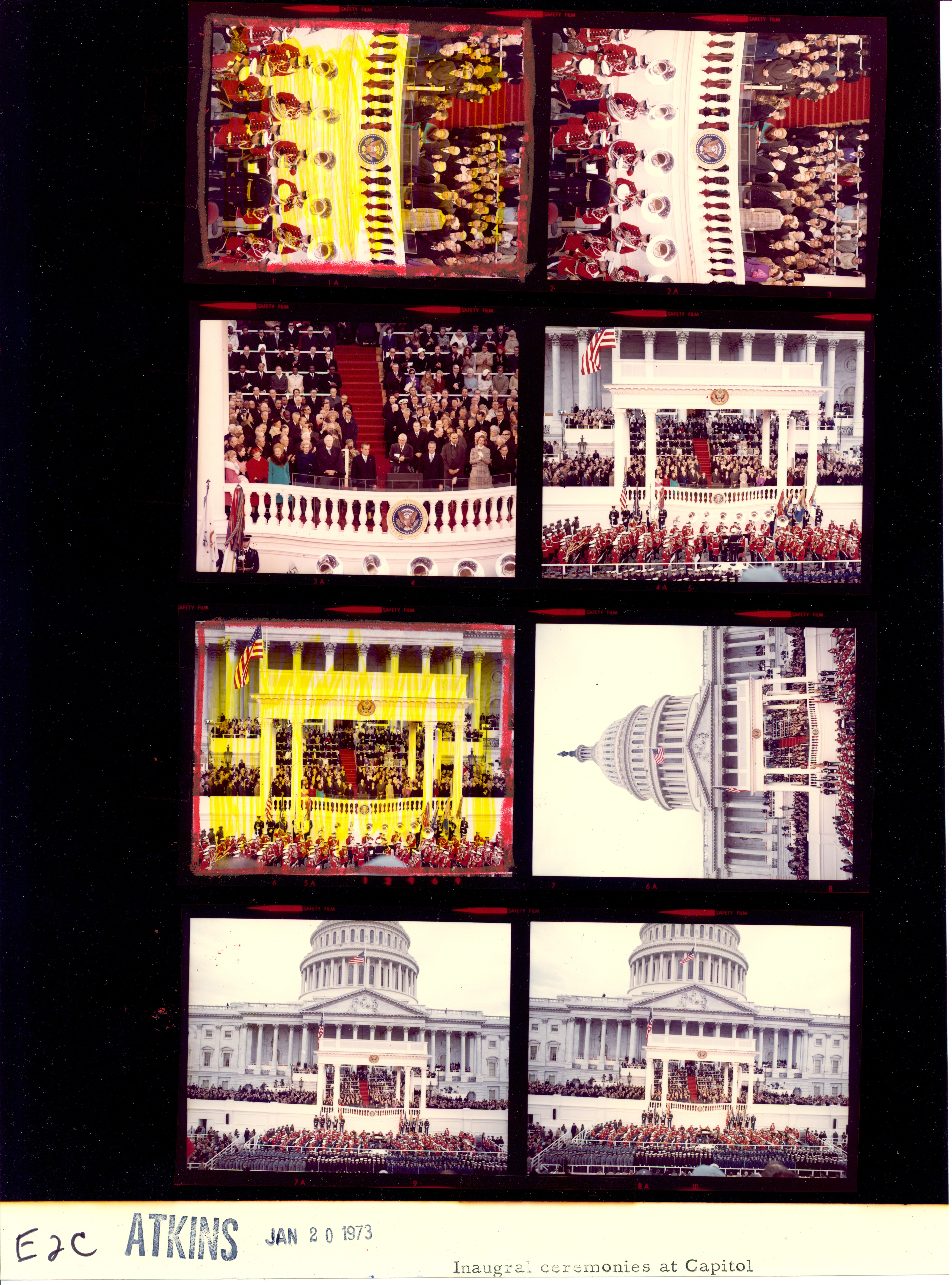 - Frame(s): WHPO-E0003-02A-04A, White House Photographer Ollie Atkins with other photographers in the "press box" at the inaugural ceremonies. 1/20/1973, Washington, D.C. Capitol grounds, Capitol. Ollie Atkins.