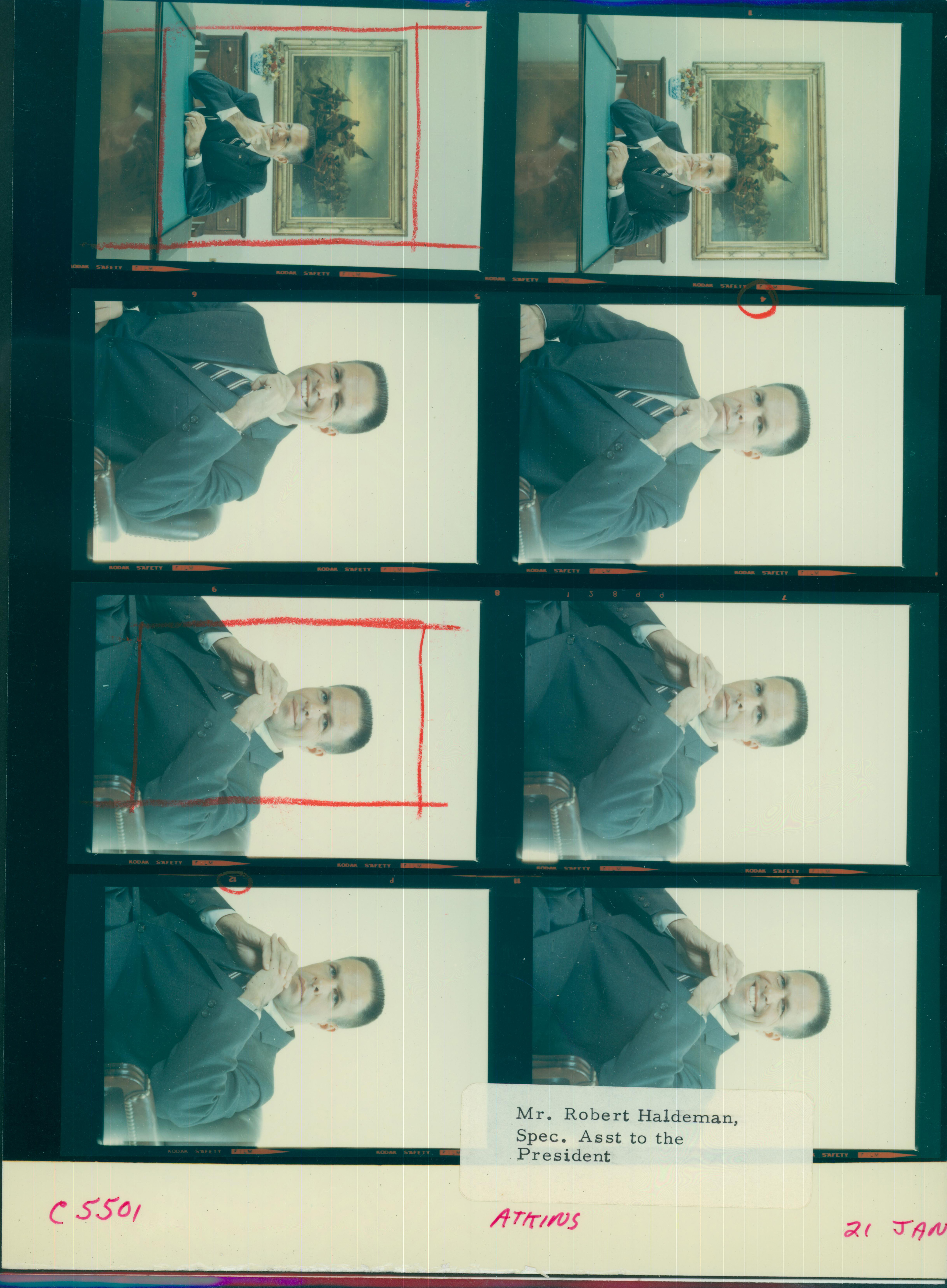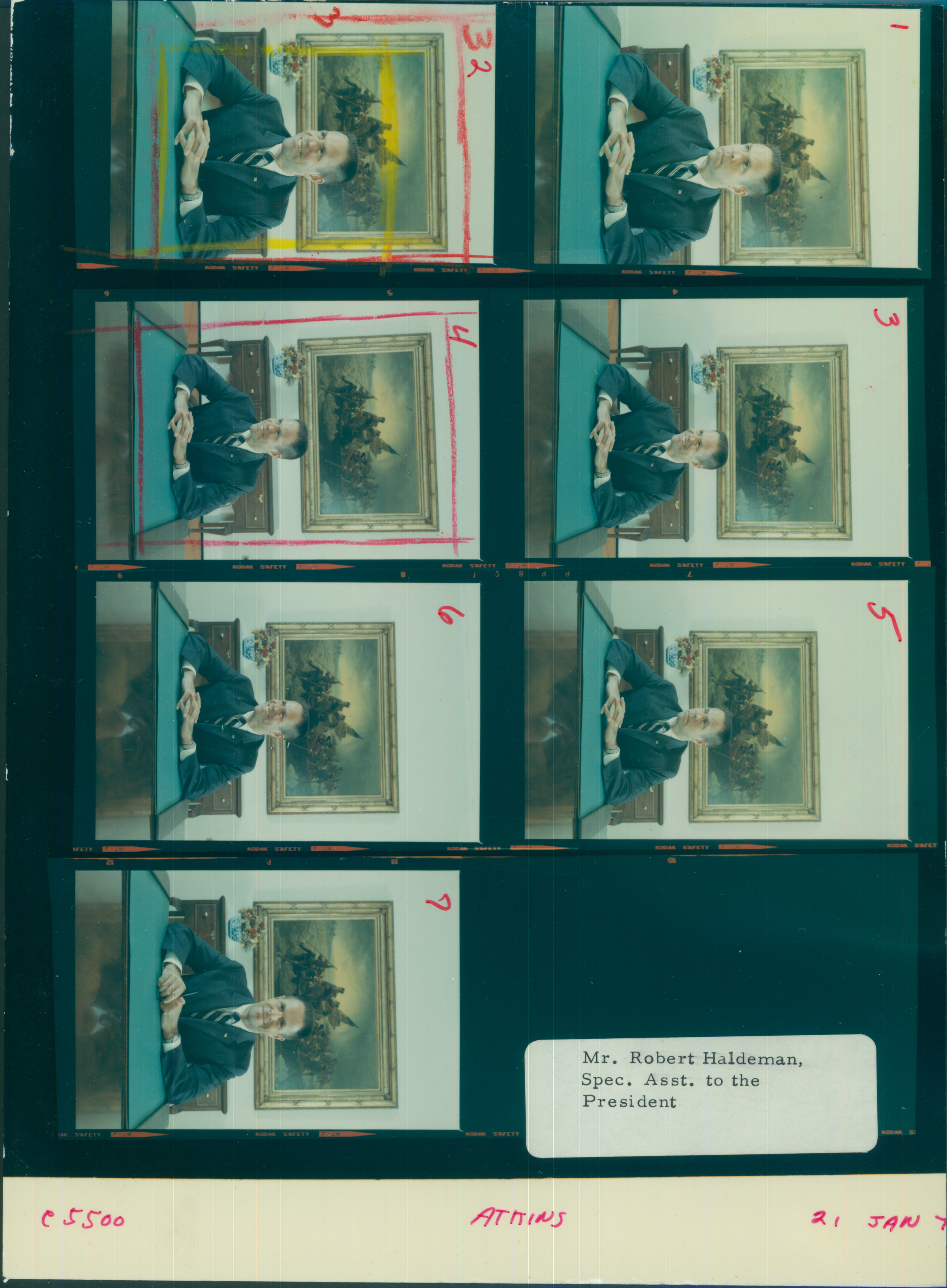 - Frame(s): WHPO-5499-, Seated portraits of H.R. Haldeman. 1/21/1971, Washington, D.C. White House, Roosevelt Room. H.R. Haldeman.