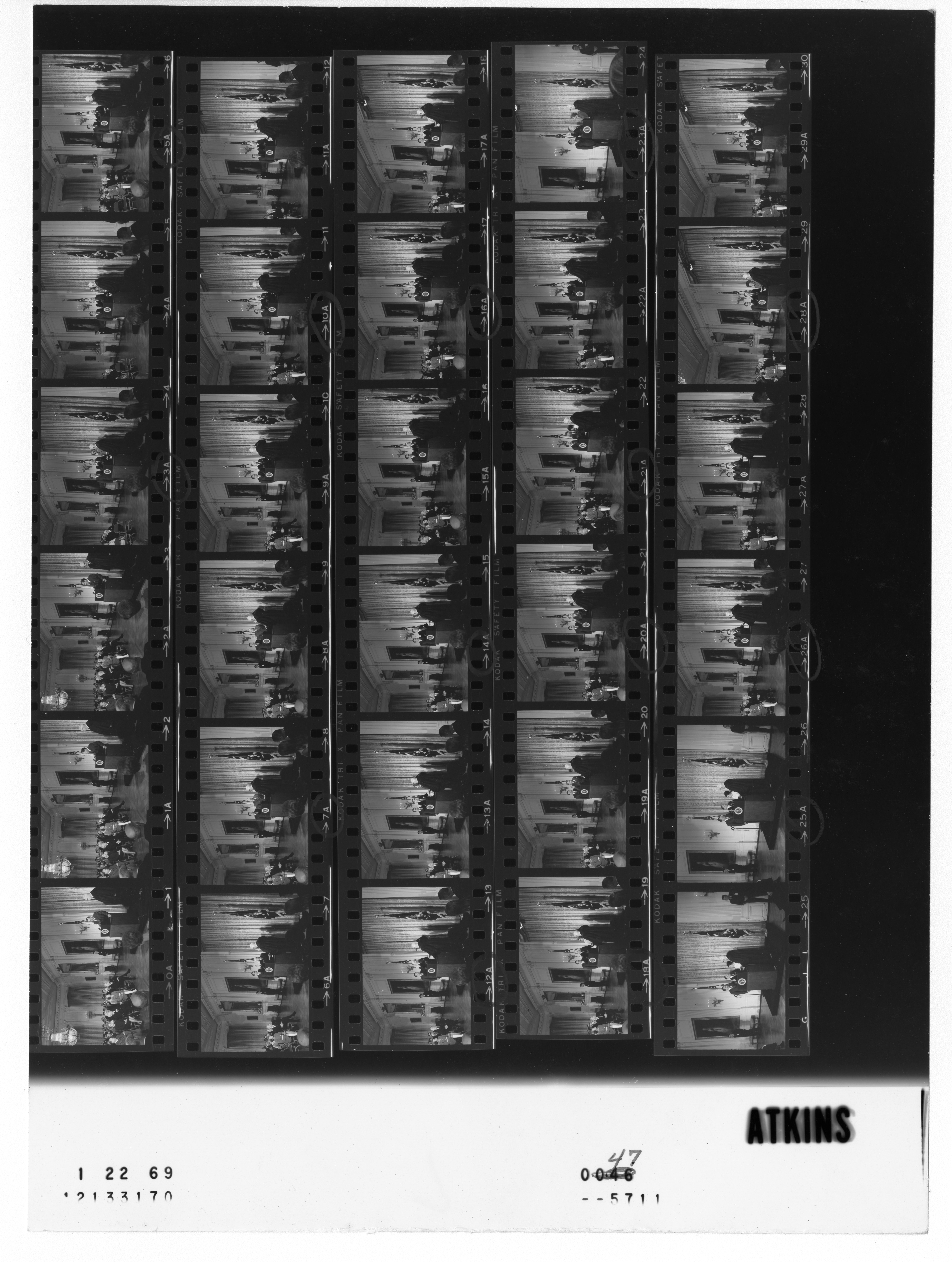 - Frame(s): WHPO-0088-01, Frame C-88: Chief Justice Earl Warren administers the swearing-in ceremony for Postmaster General Winton M. Blount, Mrs. Blount and President Nixon stand nearby. 1/22/1969, Washington, D.C. White House, East Room. L-R: President Nixon, Winton M. Blount, Mrs. Blount, Earl Warren.