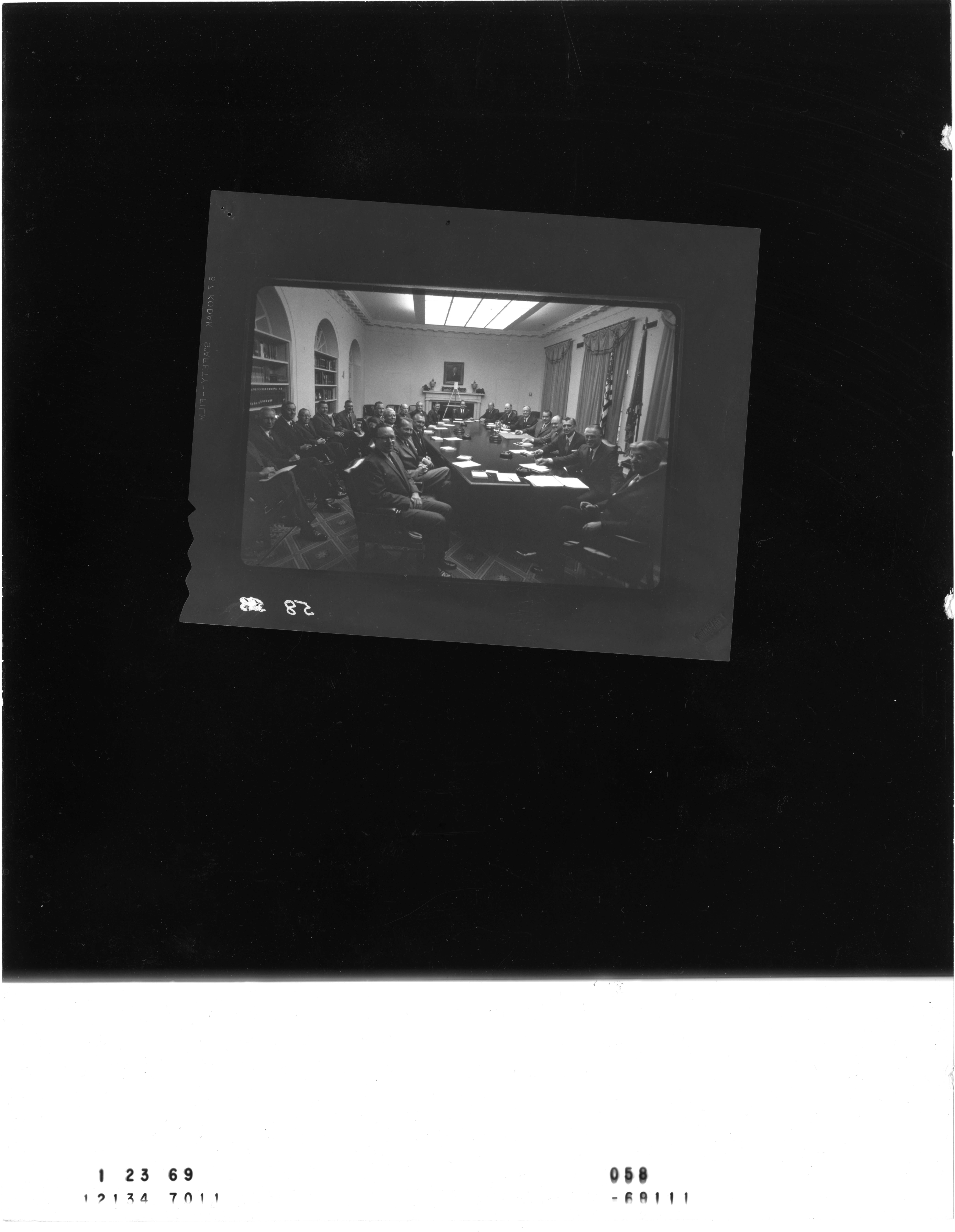 - Frame(s): WHPO-0058-01, Portrait of the Cabinet members during a meeting; members sitting at conference table and in chairs set along the wall. Interneg number 58. 1/22/1969, Washington, D.C. White House, Cabinet Room. Clockwise around table: President Nixon, Melvin Laird, Clifford Hardin, George Romney, Arthur Burns, Robert Mayo, Robert Finch, Walter Hickel, David Kennedy, Spiro Agnew, John Mitchell, Maurice Stans, John Volpe, Charles Yost, George Shultz, Winton Blount, William Rogers; Background L-R: Andrew Goodpaster, Patrick Moynihan, Paul McCracken, Herbert Klein, John Whitaker.
