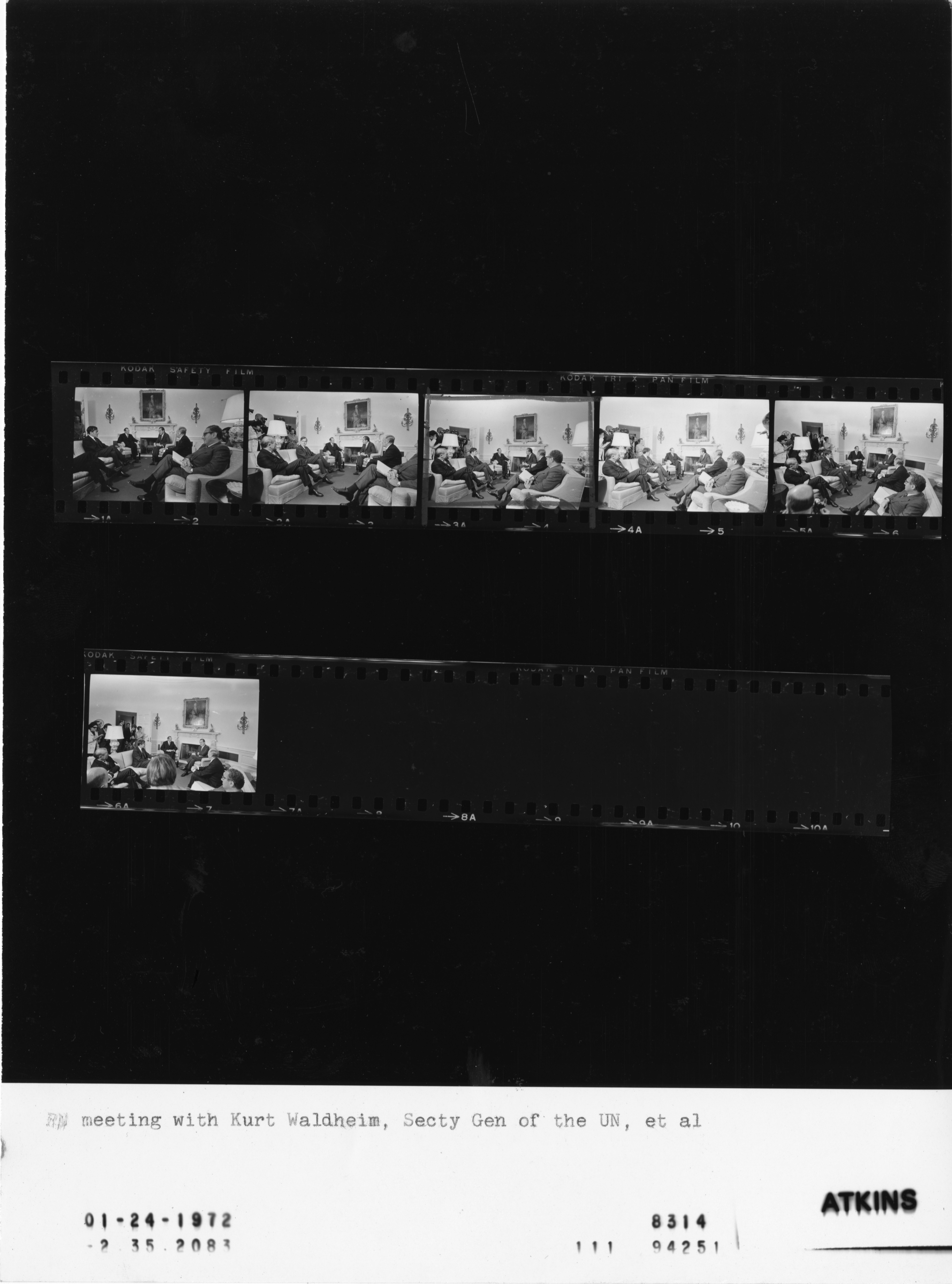 - Frame(s): WHPO-8313-05A, President Nixon seated informally in the Oval Office during a meeting with United Nations Secretary General Kurt Waldheim to discuss U.N. issues. 1/24/1972, Washington, D.C. White House, Oval Office. President Nixon, Kurt Waldheim.