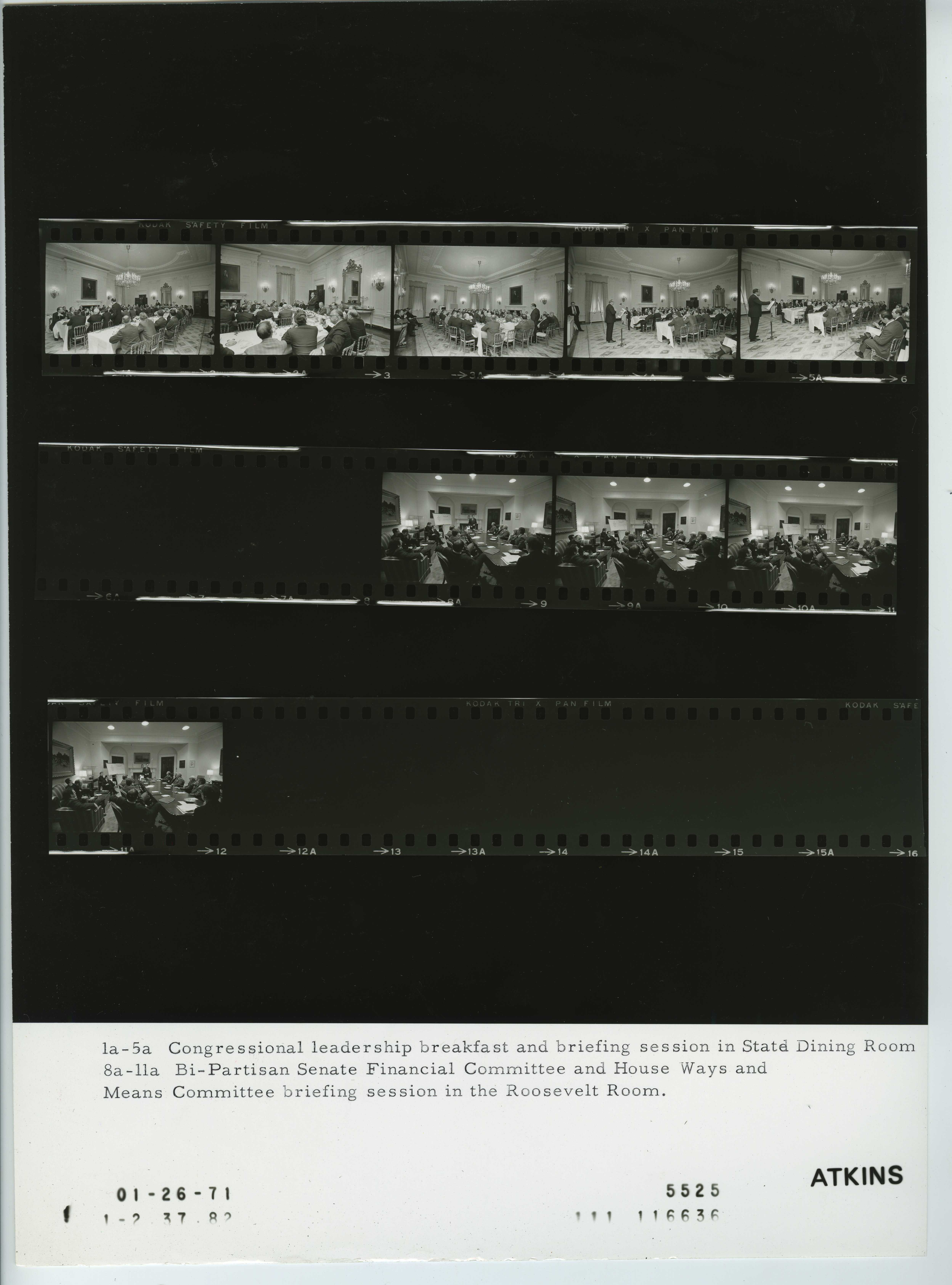 - Frame(s): WHPO-5525-08A-11A, President Nixon addressing members of the Bi-Partisan Senate Finance Committee and the House Ways & Means Committee. 1/26/1971, Washington, D.C. White House, Roosevelt Room. President Nixon, Congressional leaders.