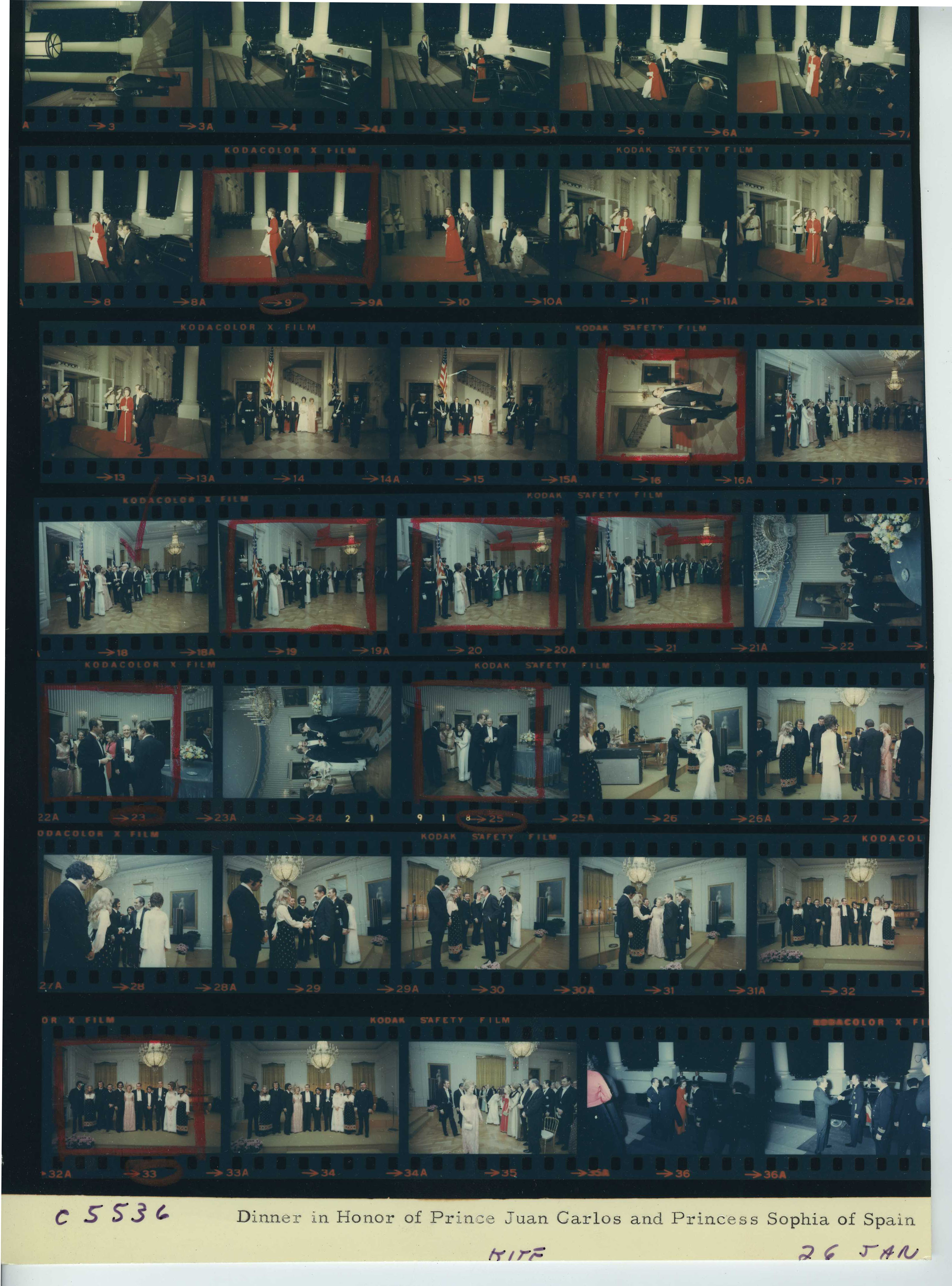 - Frame(s): WHPO-5536-36-37, President Nixon saying farewell to Prince Juan Carlos and Princess Sophia of Spain at the White House North Portico, departing after their state dinner. Security guards at the doors wear the newly designed white and gold dress uniform jackets and hats. 1/26/1971, Washington, D.C. White House, North Portico. President Nixon, Prince Juan Carlos, Princess Sophia, unidentified official and wife, White House security guards, military honor guards.
