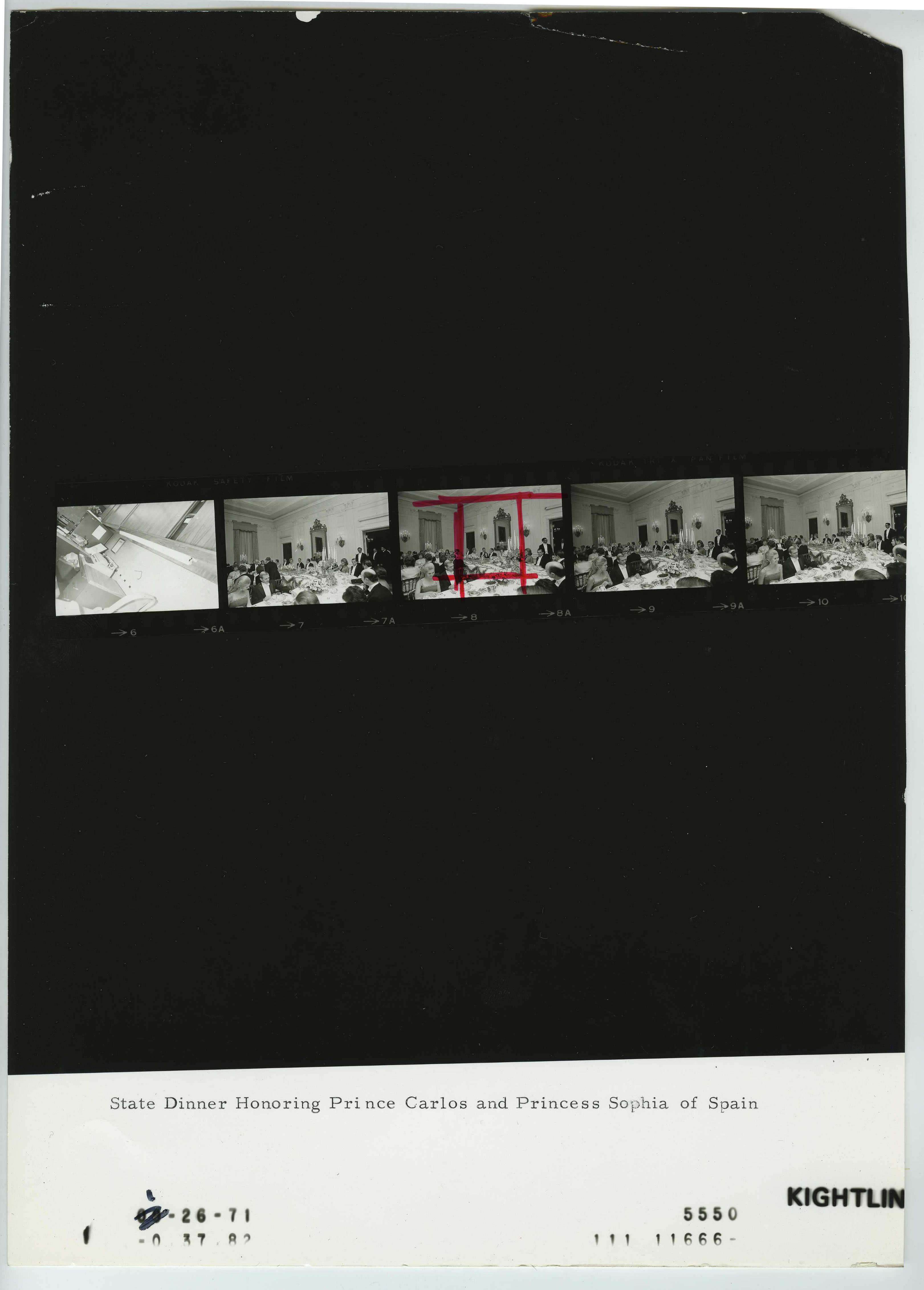 - Frame(s): WHPO-5550-07-10, President Nixon, Pat Nixon, Prince Juan Carlos and Princess Sophia of Spain, Tricia Nixon, and unidentified ambassadors, officials and guests seated during a state dinner. 1/26/1971, Washington, D.C. White House, State Dining Room. President Nixon, Pat Nixon, Prince Juan Carlos, Princess Sophia, Tricia Nixon, unidentified officials and Ambassadors, guests.