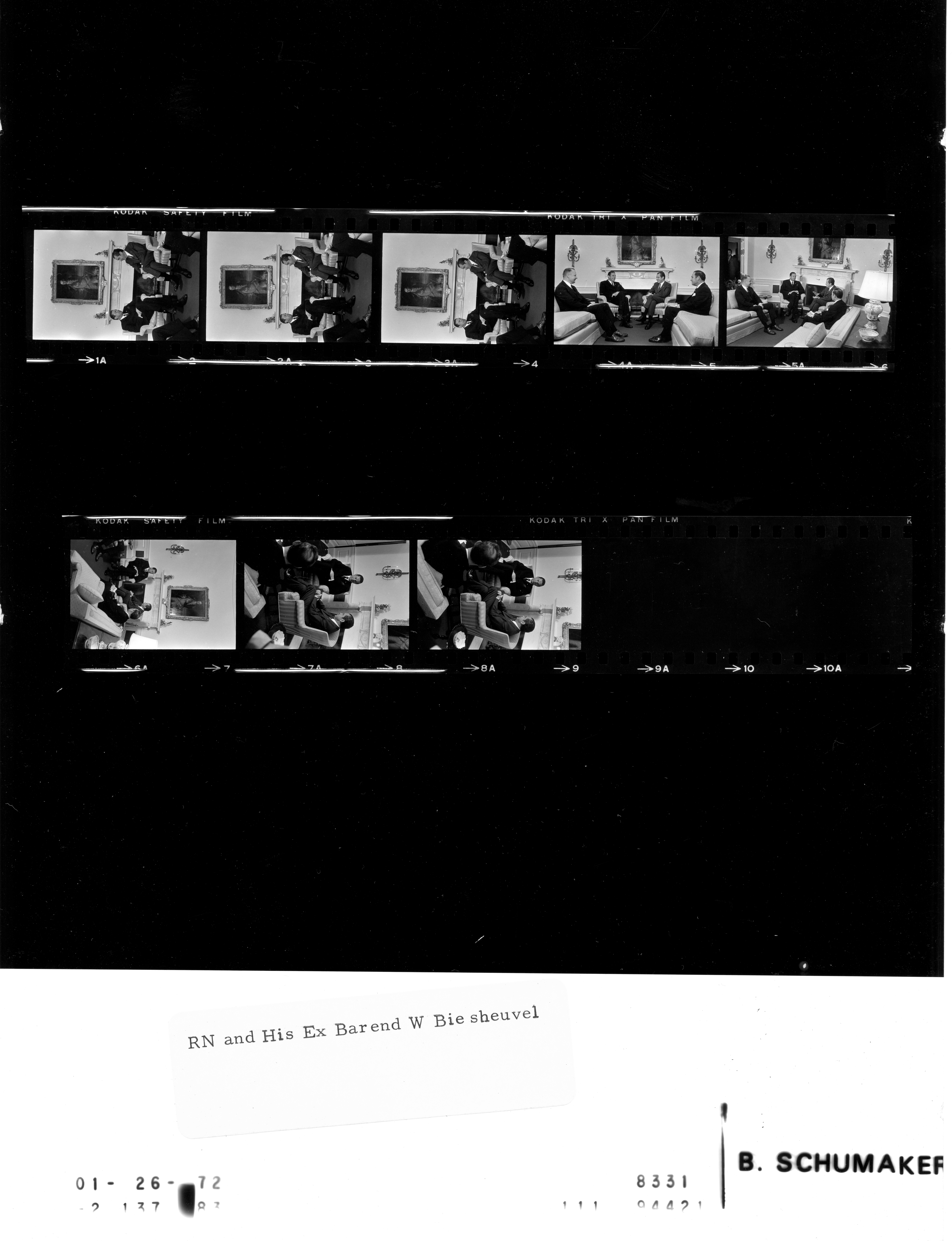 - Frame(s): WHPO-8331-, President Nixon seated informally with Netherlands Prime Minister Barend Biesheuvel and others. 1/26/1972, Washington, D.C. White House, Oval Office. President Nixon, Barend Biesheuvel, William Middendorf, Haig.