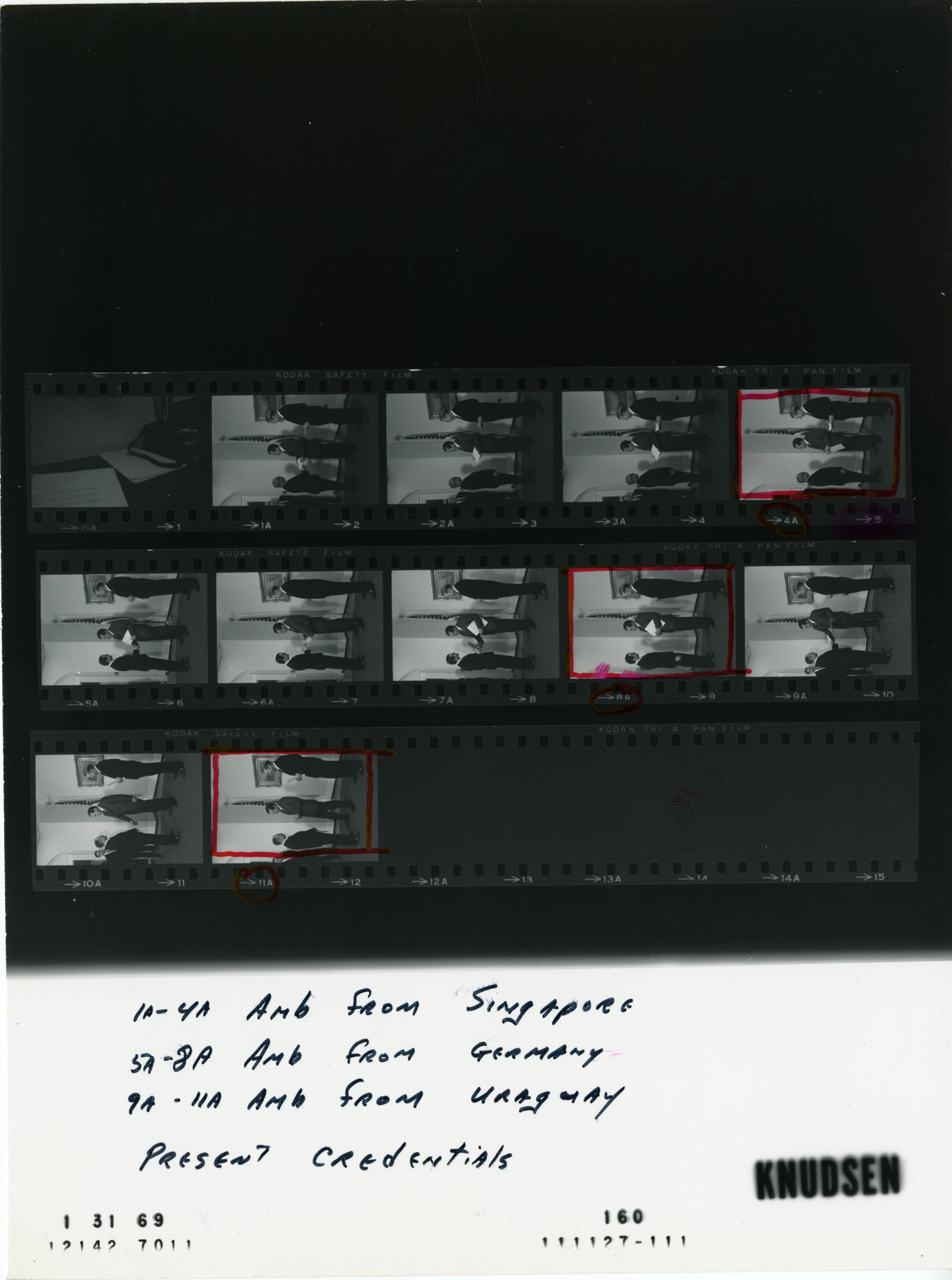 - Frame(s): WHPO-0160-09A-11A, President Nixon accepts diplomatic credentials of Hector Luisi, Ambassador from the Oriental Republic Uruguay, while standing near Emil Mosbacher, Jr., Chief of Protocol. 1/31/1969, Washington, D.C. White House, Fish Room. L-R: Hector Luisi, President Nixon, Emil Mosbacher, Jr.