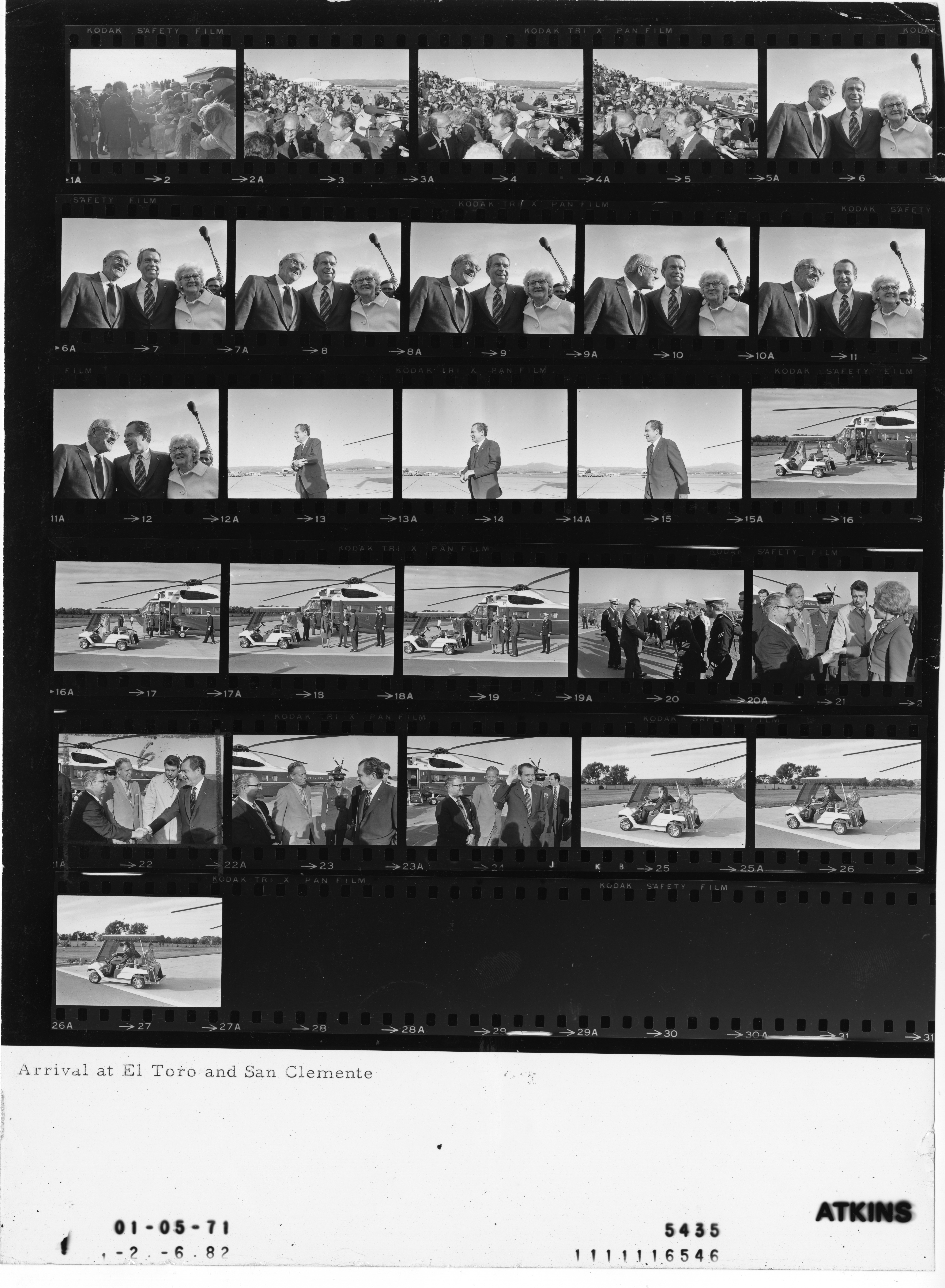 - Frame(s): WHPO-5435-15A-26A, President Nixon arriving at San Clemente. 1/5/1971, Santa Ana, California San Clemente helipad. President Nixon, Pat Nixon, Tricia Nixon, unidentified aides, military personnel, crowd.