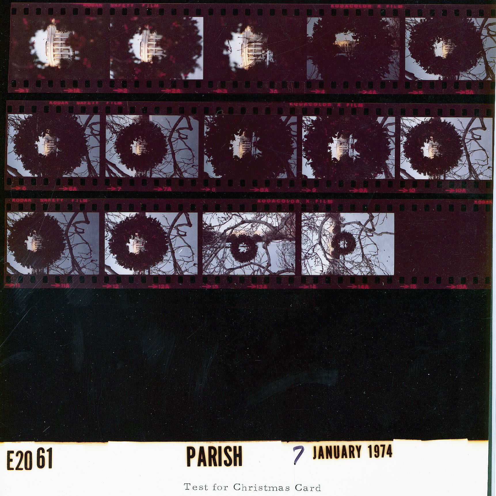 - Frame(s): WHPO-E2061-, Test photos of Christmas wreath with White House background for Christmas card. 1/7/1974, Washington, D.C. North Portico, White House.