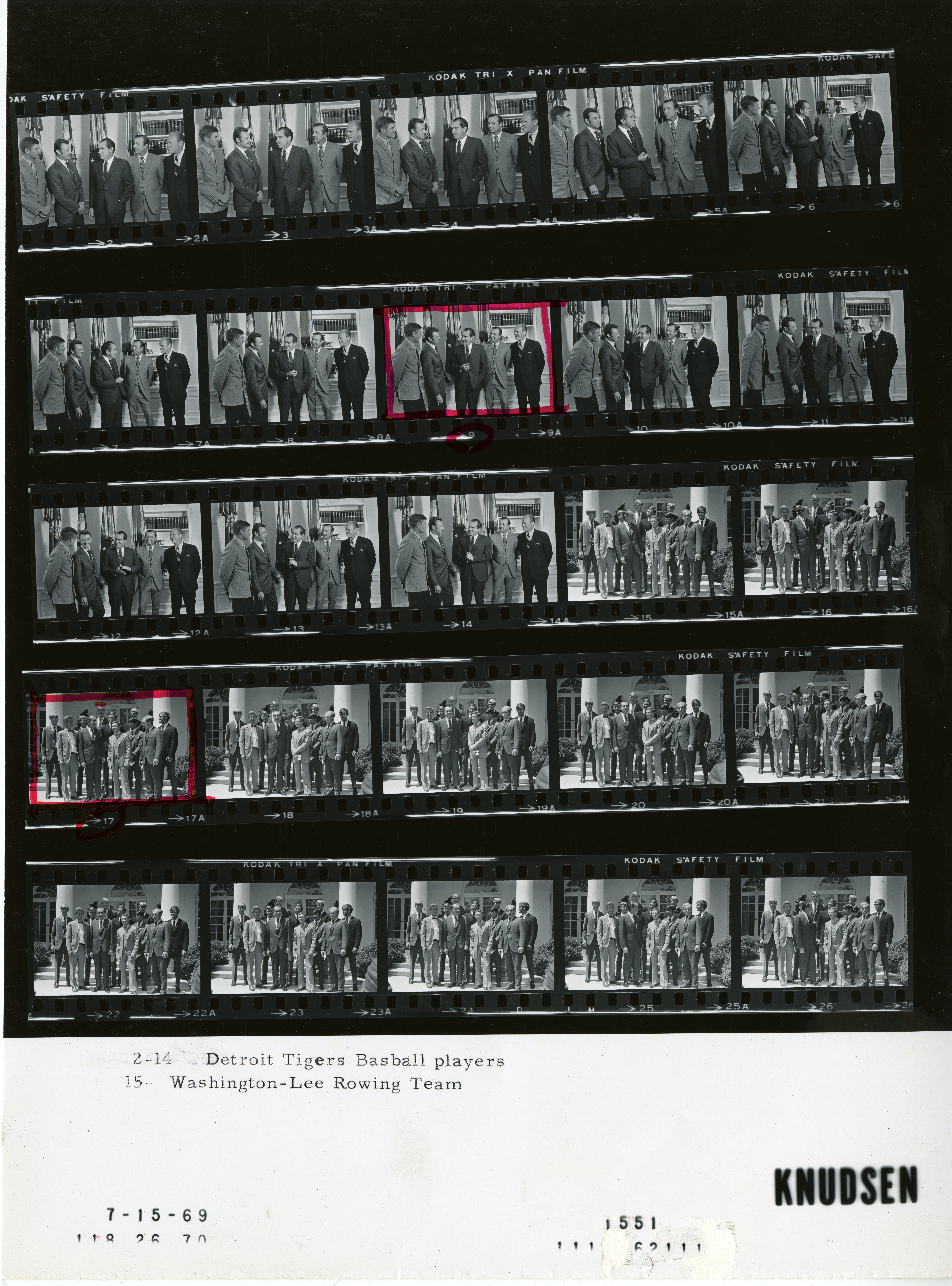 - Frame(s): WHPO-1551-09, President Nixon standing with Rep. Gerald Ford and Detroit Tigers players Al Kaline, Tom Tresh, and Mickey Stanley. 7/15/1969, Washington, D.C. White House, Oval Office. President Nixon, Gerald Ford, Al Kaline, Tom Tresh, Mickey Stanley.