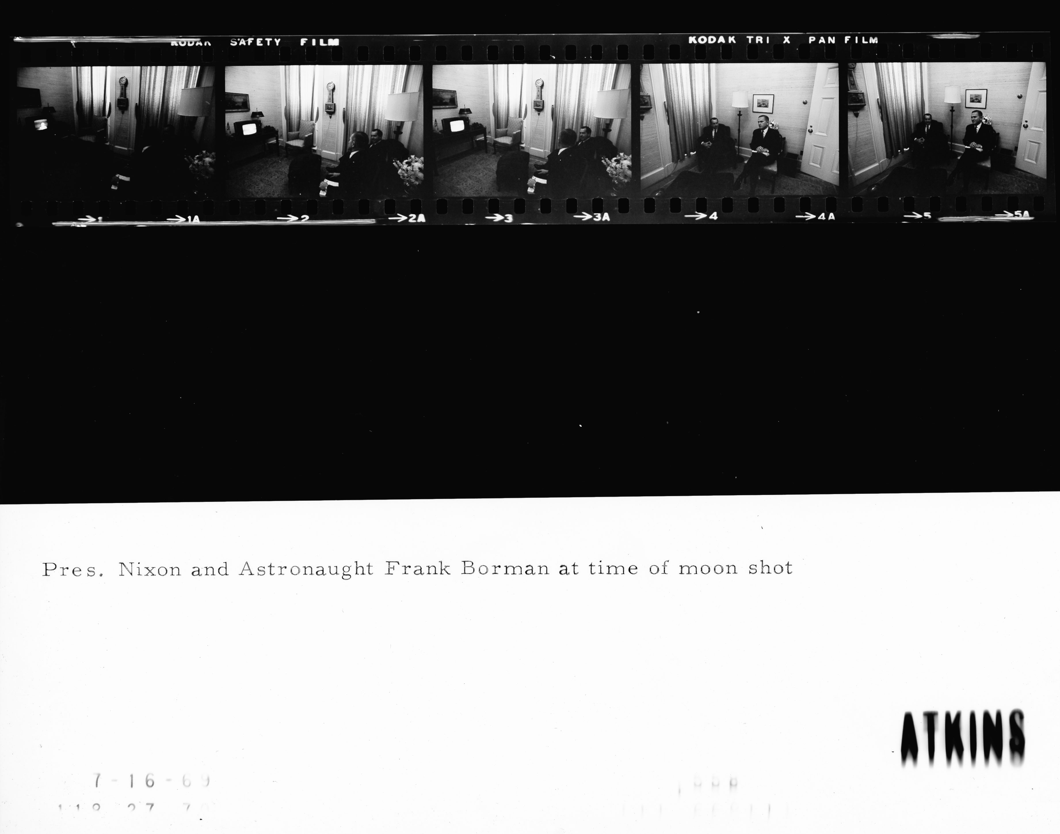 - Frame(s): WHPO-1558-01-05, President Nixon and NASA astronaut Col. Frank Borman at the White House, watching a television broadcast of the Apollo 11 moon shot liftoff. 7/16/1969, Washington, D.C. White House. President Nixon, Col. Frank Borman.