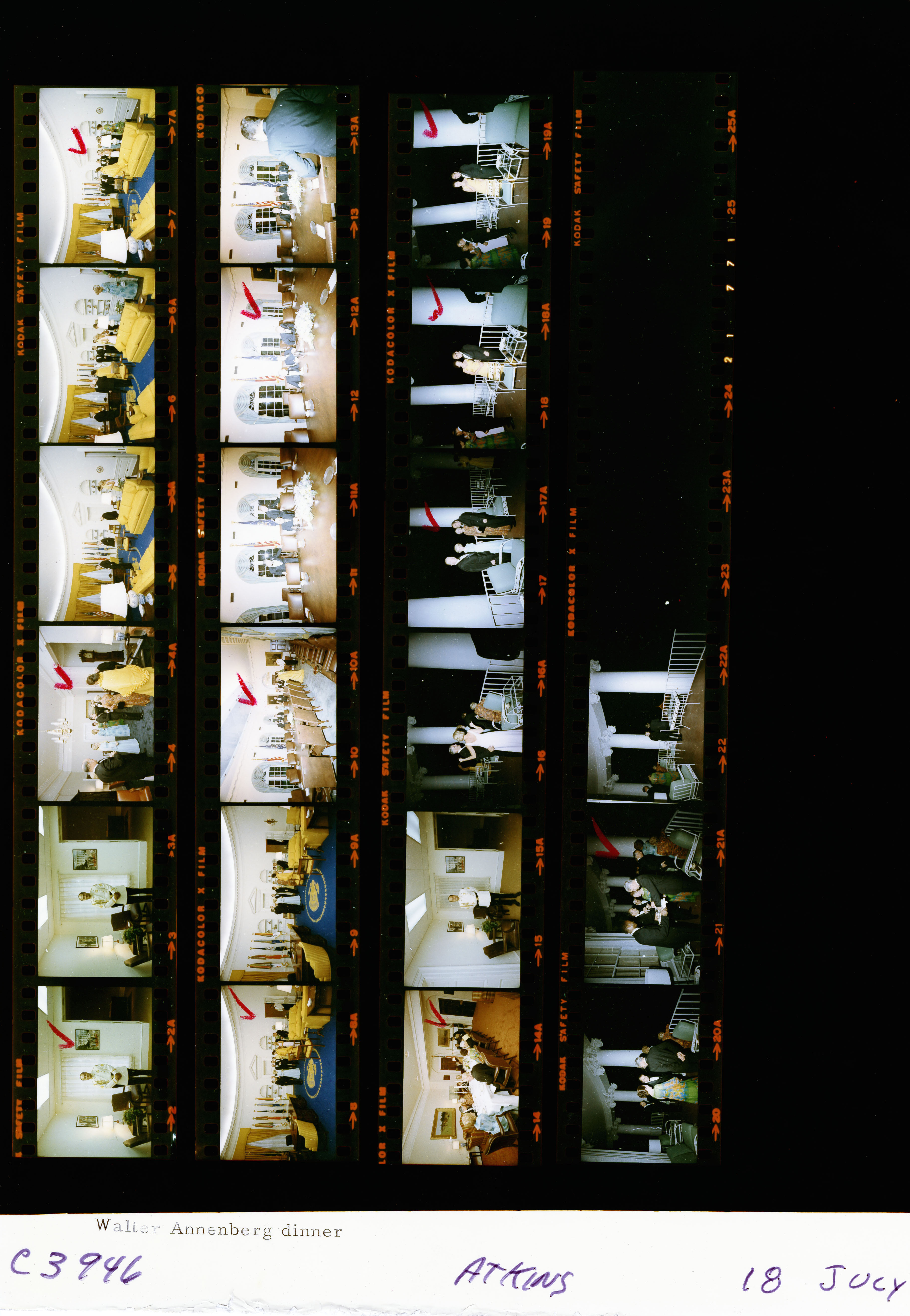 - Frame(s): WHPO-3946-14, President Nixon and Pat Nixon seated at the dinner table with Ambassador Walter Annenberg and Mrs. Annenberg, Ambassador Freeman and Mrs. Freeman with guests including Henry Kissinger, Mrs. Nicholas (Alice Roosevelt) Longworth, Donald McGannon , Mrs. McGannon, Lord Thompson of Fleet, Nancy Hanks, Hobart D. Lewis, Mrs. Lewis. 7/17/1970, Washington, D.C. White House, dining room. President Nixon, Pat Nixon, Ambassador Walter Annenberg, Mrs. Annenberg, Ambassador Freeman, Mrs. Freeman, Henry Kissinger, Mrs. Nicholas (Alice Roosevelt) Longworth, Donald McGannon , Mrs. McGannon, Lord Thompson of Fleet, Nancy Hanks, Hobart D. Lewis, Mrs. Lewis.